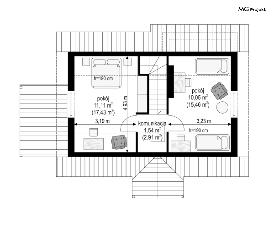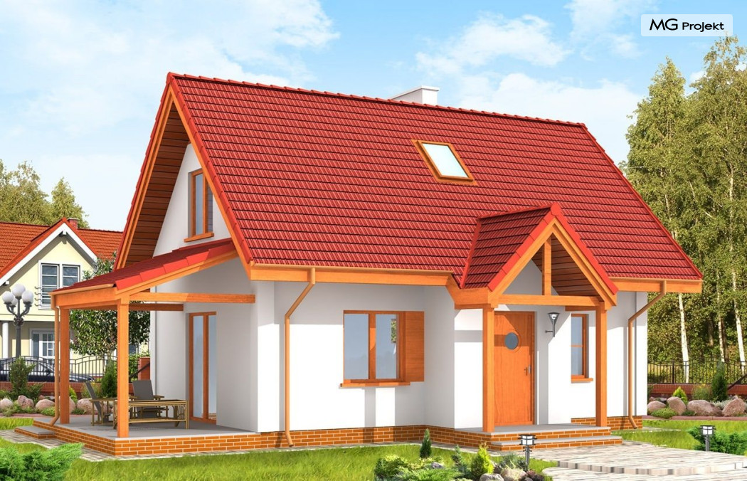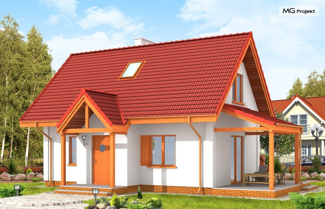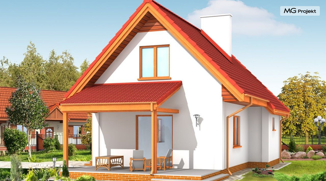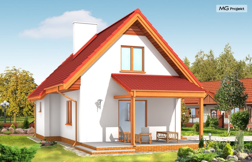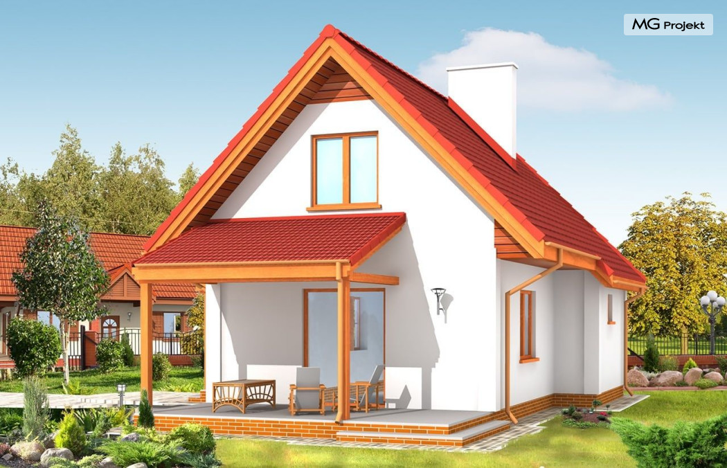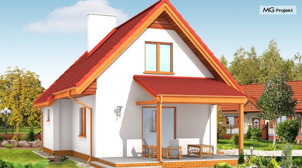 Projekt domu Okruszek jest rozbudowaną wersją projektu domu Sosenka. Budynek powiększony został o pomieszczenie gospodarcze na parterze, przedsionek z daszkiem przed wejściem i zadaszony częściowo taras. Projekt domku Okruszek jest świetnym rozwiązaniem dla małej rodziny, może służyć zarówno jako dom letniskowy jak i całoroczny. Budynek jest tani w budowie, jak i późniejszej eksploatacji. Jego bryła ukształtowana zaprojektowana została z myślą o ewentualnej rozbudowie. Częściowe podpiwniczenie może być pomocne przy konieczności umieszczenia w domu np. hydroforu. Duży salon na parterze z kominkiem, z wyjściem na częściowo zadaszony taras. Na poddaszu zaprojektowano dwie obszerne sypialnie. Pracownia posiada odbicie lustrzane projektu domu Okruszek oraz wersję niepodpiwniczoną lub z całkowitym podpiwniczeniem. Zapraszamy do obejrzenia wszystkich domków z tej serii: https://www.mgprojekt.com.pl/okruszek, https://www.mgprojekt.com.pl/okruszek-wariant-b, https://www.mgprojekt.com.pl/okruszek-wariant-e