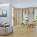 Wnętrze domu Optymalny podzielono na część dzienną na parterze, oraz sypialnie na poddaszu. Połączone pomieszczenia salonu, aneksu jadalnego, kuchni i holu projektu optymalny tworzą na parterze dużą otwartą przestrzeń dzienną. Z salonu projektu optymalny szerokimi przeszkleniami przechodzimy na częściowo zadaszony taras i do ogrodu. Ustawione nieco z boku schody ozdabiają wnętrze Optymalnego, a jednocześnie pozwalają zachować prywatność i swobodę osobom z salonie czy jadalni. W projekcie domku Optymalny na parterze przewidziano dodatkowy pokój (gabinet / sypialnię gościnną) z łazienką, oraz kotłownię dostępną z przedsionka. Na poddaszu projektu optymalny umieszczono trzy wygodne sypialnie, łazienkę i pomieszczenie gospodarcze (pralnię /suszarnię). Ścianki działowe na poddaszu można dowolnie modelować, zmieniać układ pomieszczeń. Projekt domu Optymalny ma prostą konstrukcję, jest łatwy w budowie, a dzięki bardzo dobrym ociepleniom i nowoczesnym energooszczędnym instalacjom będzie tani w utrzymaniu. Pracownia posiada projekt domu Optymalny w odbiciu lustrzanym, oraz wersję wariantową Optymalny B, czyli domek z parterem o wysokości 2.7 m oraz podniesioną ścianką kolankową do 1,2 m, ze zlikwidowanymi oknami połaciowymi oraz ze zlikwidowanym oknem i naświetlem bocznym drzwi wejściowych. Dostępna jest również wersja projektu domku z garażem Optymalny 2.