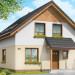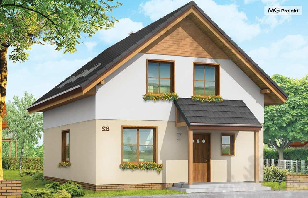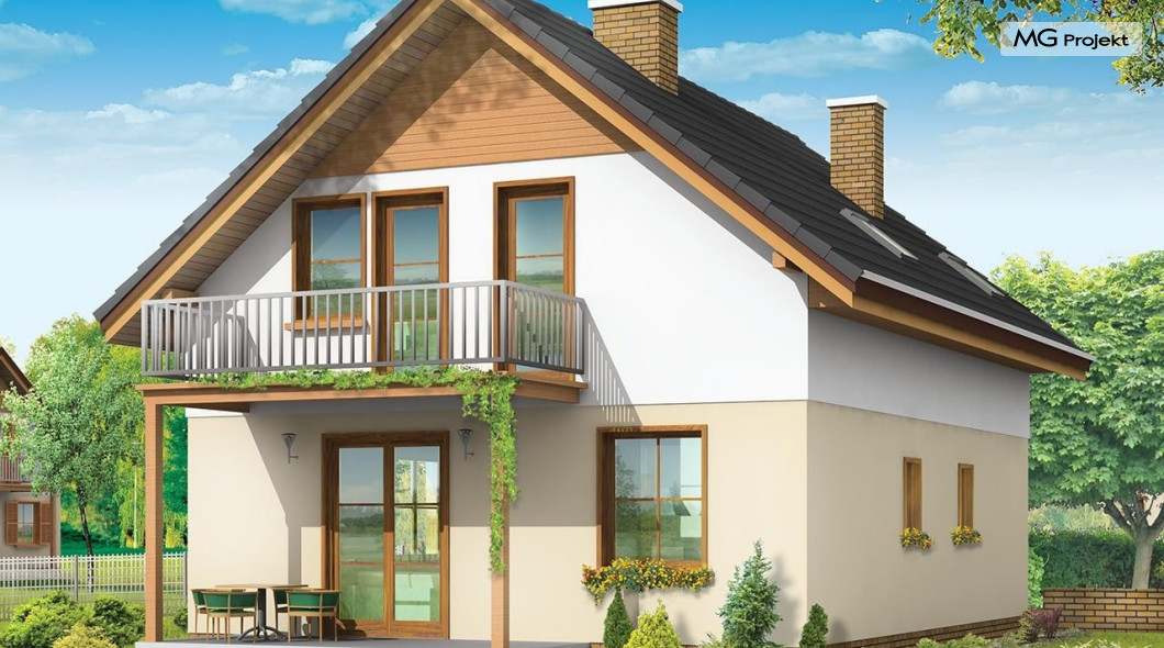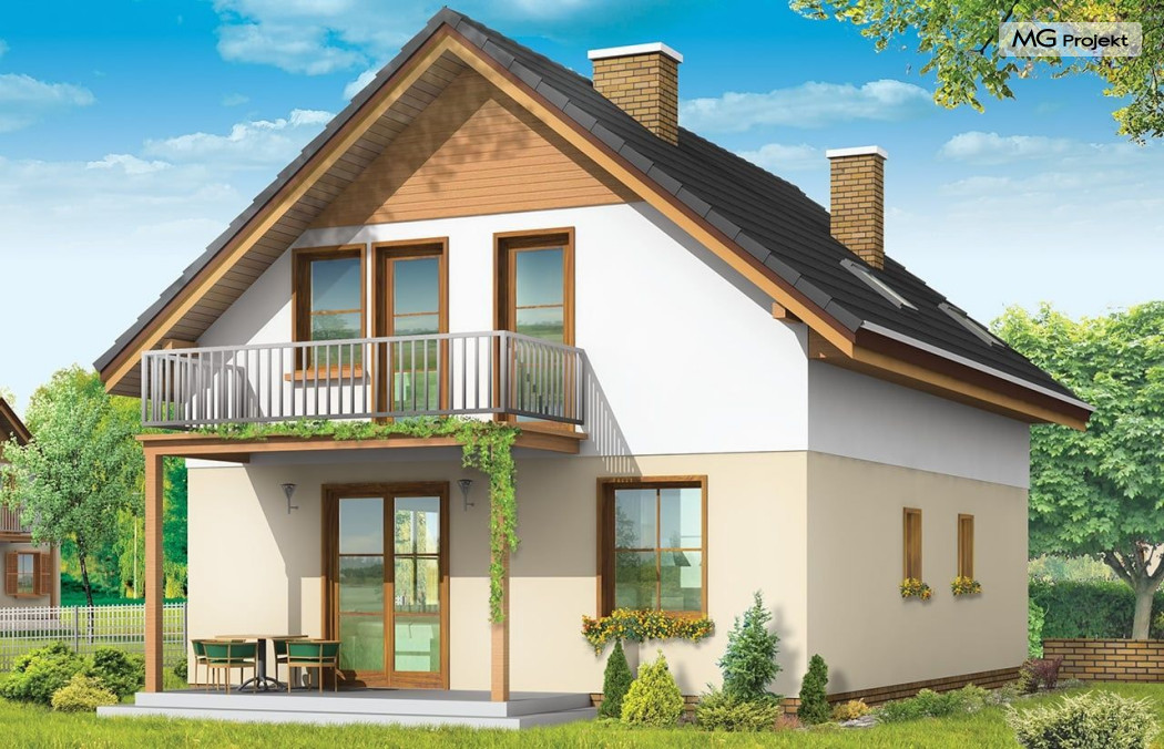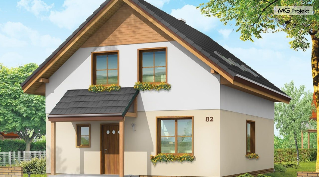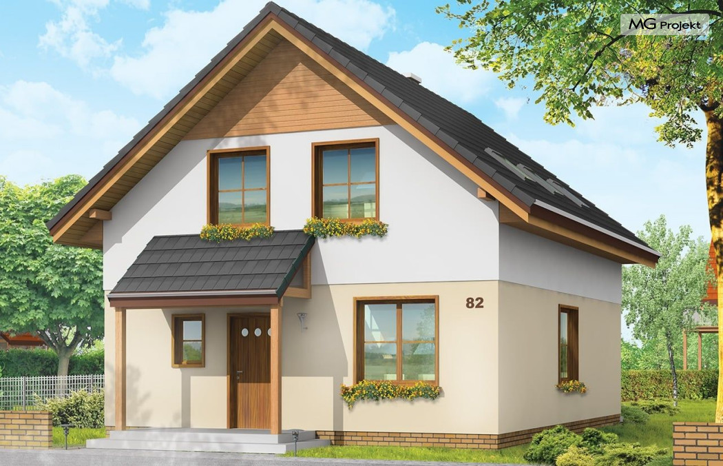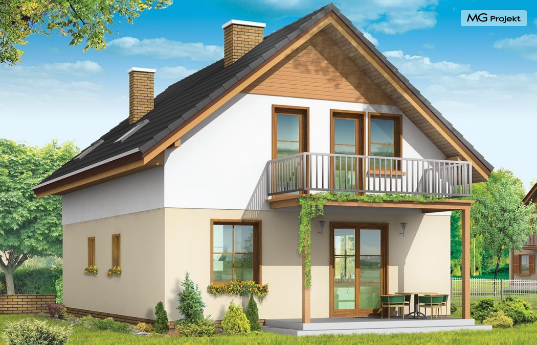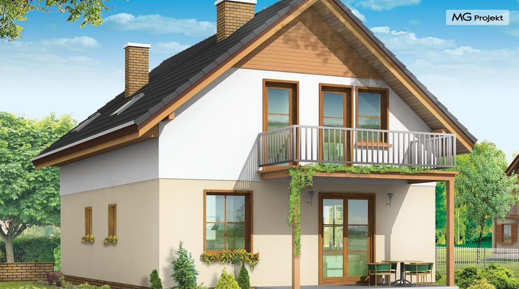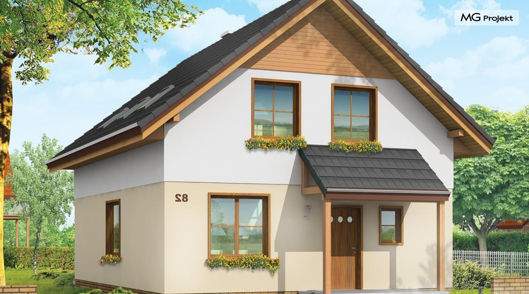 Projekt domu Praktyczny A to niewielki domek jednorodzinny dla czteroosobowej rodziny. Budynek parterowy z poddaszem użytkowym.