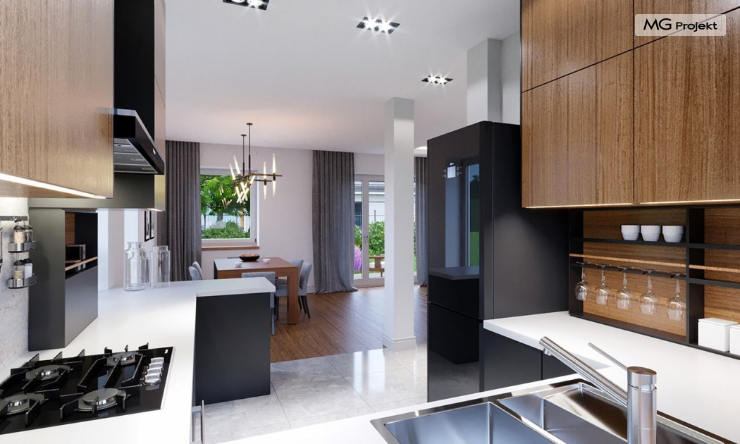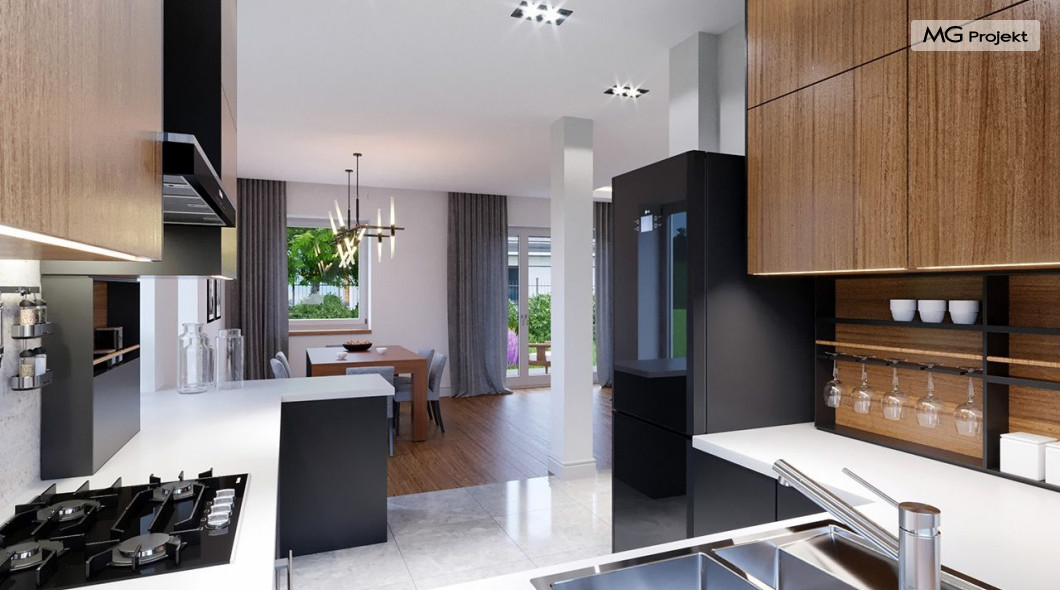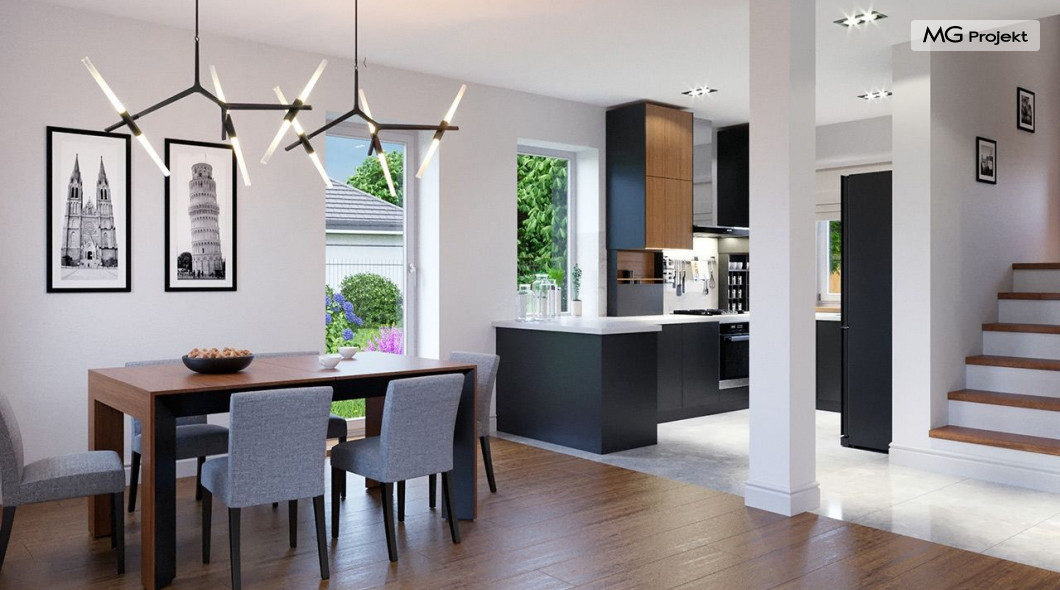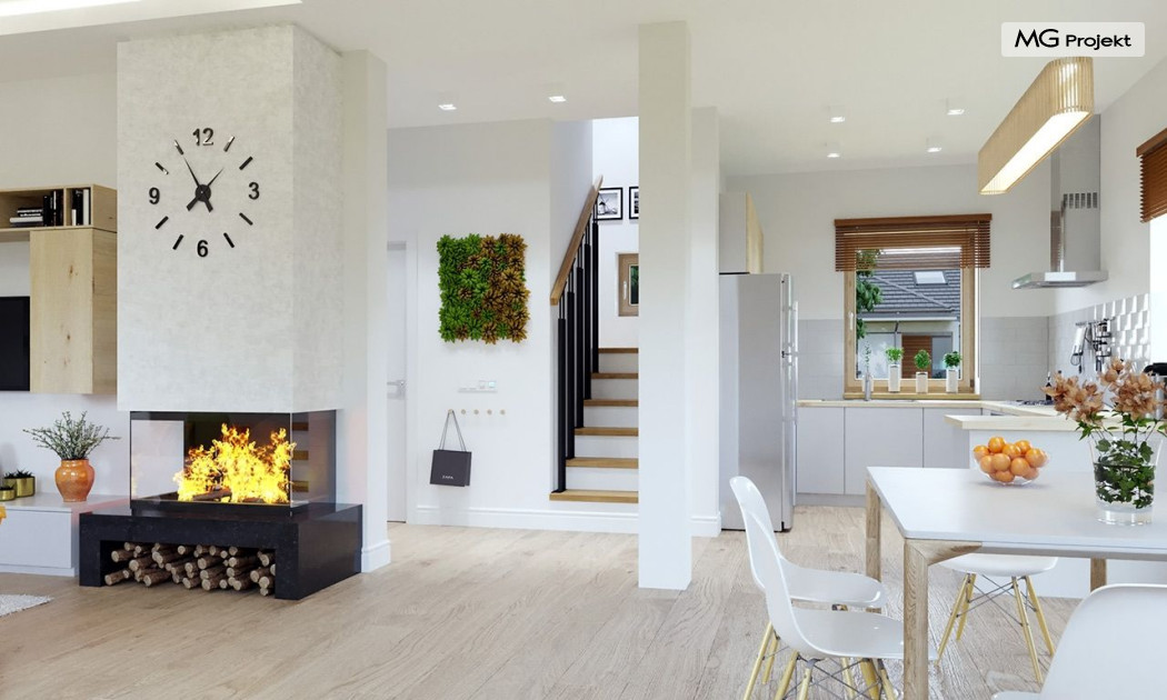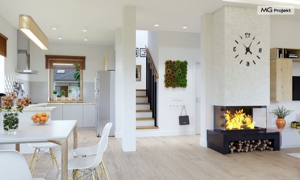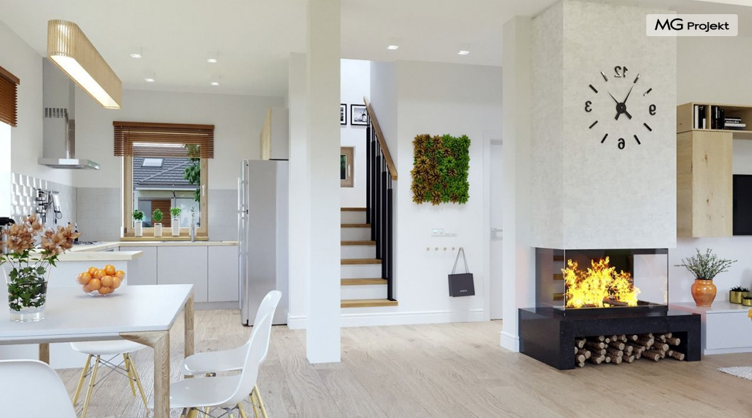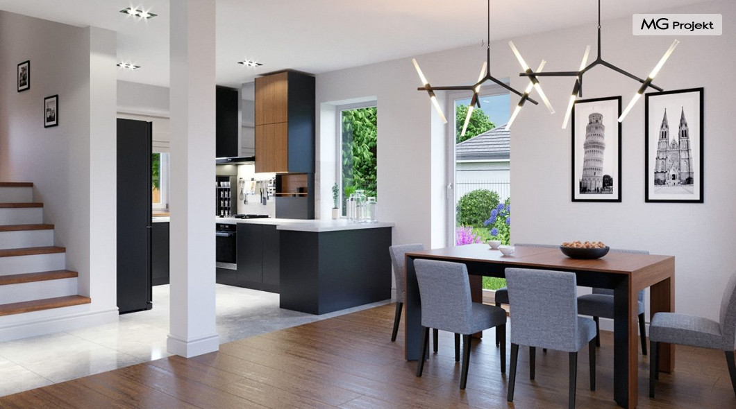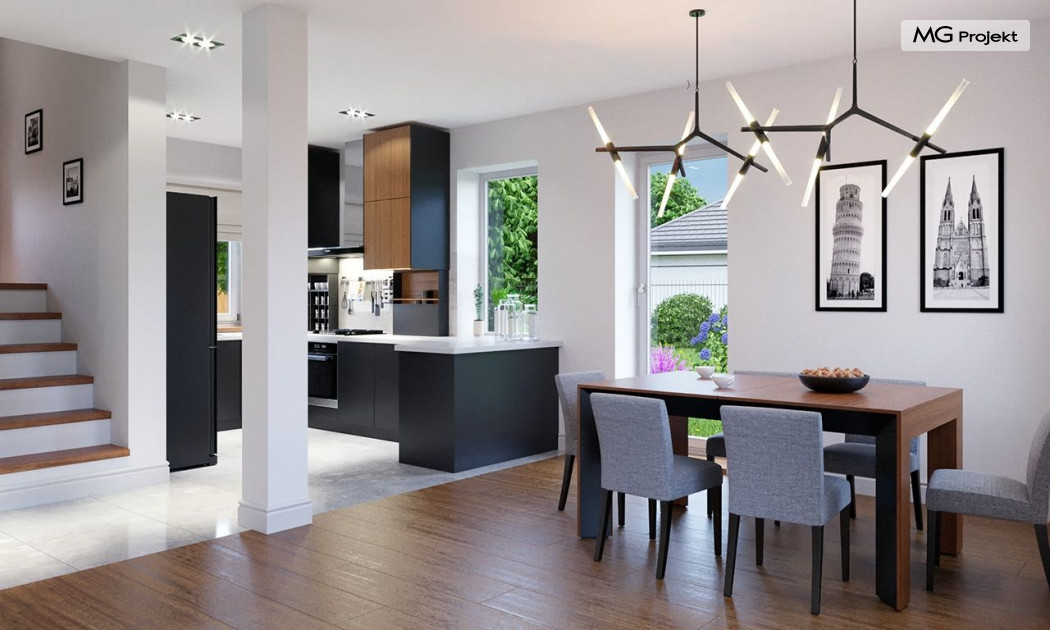 Projekt domu Przygoda 2 to sympatyczny dom dla cztero-pięcioosobowej rodziny - parterowy, z poddaszem użytkowym, o zwartej prostokątnej bryle przykrytej dwuspadowym dachem. Prosta elegancja domu i jego funkcjonalność idą w parze z energooszczędnością i nowoczesnością. Kształt domu, jego proporcje od razu przywołują obraz „małego białego domku”, takiego domku z kominem - z dziecięcych wyobrażeń. Budowa domu to wielka przygoda. Dlaczego nie zdecydować się na nią z naszą „Przygodą” ;). Proporcjonalna symetryczna bryła wpasuje się w każde otoczenie. Nowoczesne materiały i kolorystyka budynku dodają domowi sznytu. Wnętrze domu mieści w sobie cztery pokoje, dwie łazienki i oddzielną kotłownię - wiele, jak na niespełna stumetrową powierzchnię. Na parterze, w tej wersji projektu mamy mamy dużą przestrzeń dzienną połączonego salonu, holu i kuchni. Na poddaszu natomiast – trzy sypianie z łazienką. Projekt domu Przygoda 2 ma wnętrze ustawne i funkcjonalne. Konstrukcja domu jest bardzo prosta i przejrzysta - będzie łatwa w budowie i – co najważniejsze - rozsądna kosztowo. Bardzo dobre ocieplenia ścian, podłóg i dachu powodują, że dom jest energooszczędny. W łatwy sposób można go dostosować do standardu NF40. Niewielka powierzchnia użytkowa domu pozwala na zaliczenie projektu do programu MDM. Zapraszamy również do obejrzenia pierwszego projektu tej serii: projekt domu Przygoda.