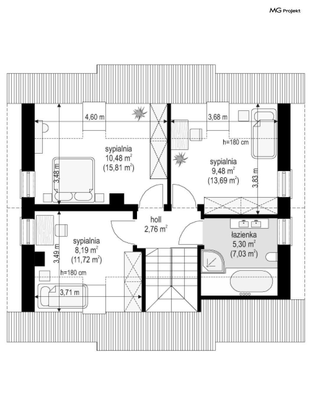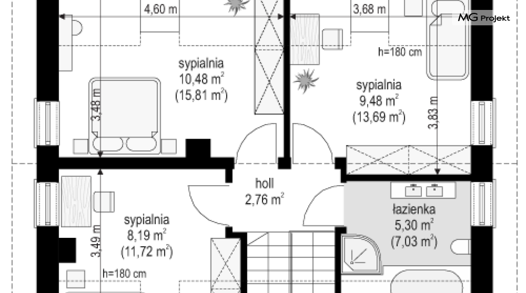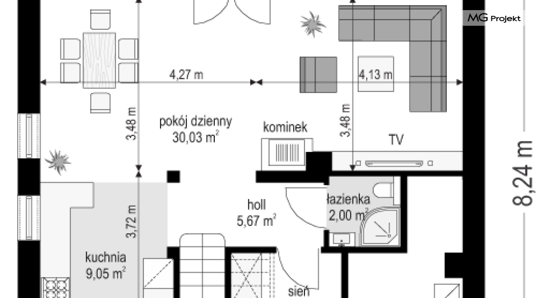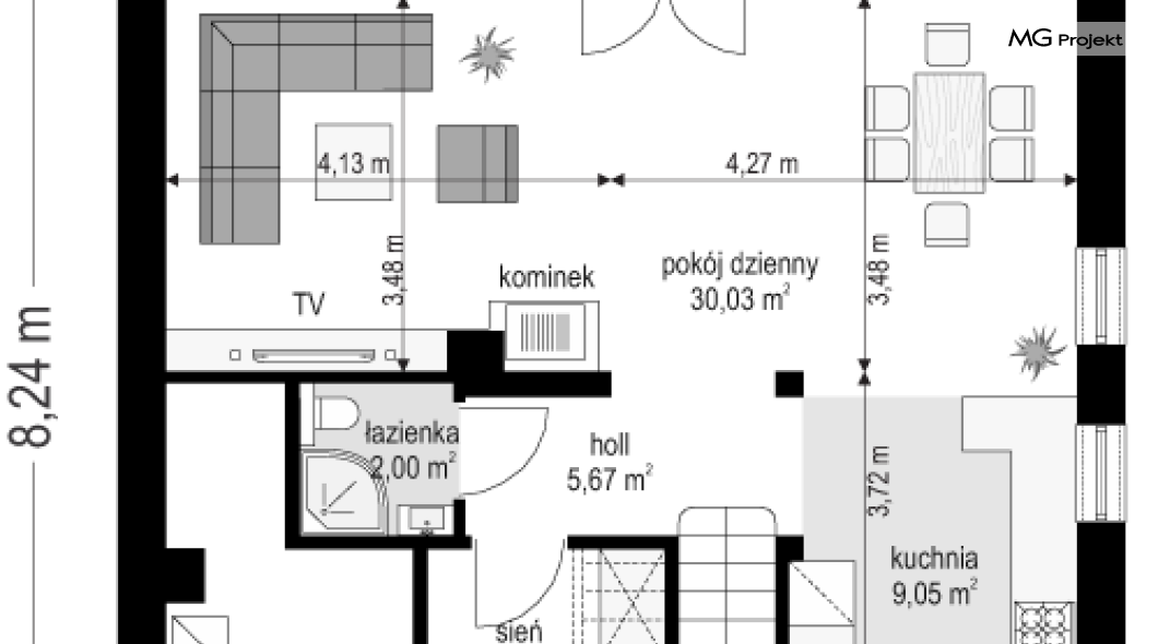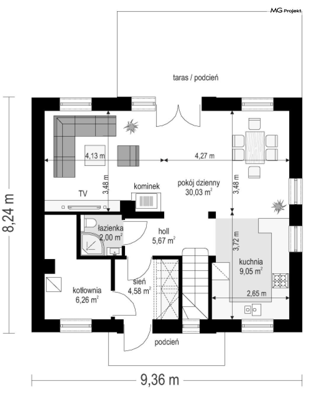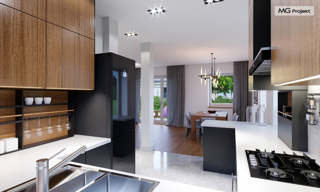 Projekt domu Przygoda 2 to sympatyczny dom dla cztero-pięcioosobowej rodziny - parterowy, z poddaszem użytkowym, o zwartej prostokątnej bryle przykrytej dwuspadowym dachem. Prosta elegancja domu i jego funkcjonalność idą w parze z energooszczędnością i nowoczesnością. Kształt domu, jego proporcje od razu przywołują obraz „małego białego domku”, takiego domku z kominem - z dziecięcych wyobrażeń. Budowa domu to wielka przygoda. Dlaczego nie zdecydować się na nią z naszą „Przygodą” ;). Proporcjonalna symetryczna bryła wpasuje się w każde otoczenie. Nowoczesne materiały i kolorystyka budynku dodają domowi sznytu. Wnętrze domu mieści w sobie cztery pokoje, dwie łazienki i oddzielną kotłownię - wiele, jak na niespełna stumetrową powierzchnię. Na parterze, w tej wersji projektu mamy mamy dużą przestrzeń dzienną połączonego salonu, holu i kuchni. Na poddaszu natomiast – trzy sypianie z łazienką. Projekt domu Przygoda 2 ma wnętrze ustawne i funkcjonalne. Konstrukcja domu jest bardzo prosta i przejrzysta - będzie łatwa w budowie i – co najważniejsze - rozsądna kosztowo. Bardzo dobre ocieplenia ścian, podłóg i dachu powodują, że dom jest energooszczędny. W łatwy sposób można go dostosować do standardu NF40. Niewielka powierzchnia użytkowa domu pozwala na zaliczenie projektu do programu MDM. Zapraszamy również do obejrzenia pierwszego projektu tej serii: projekt domu Przygoda.