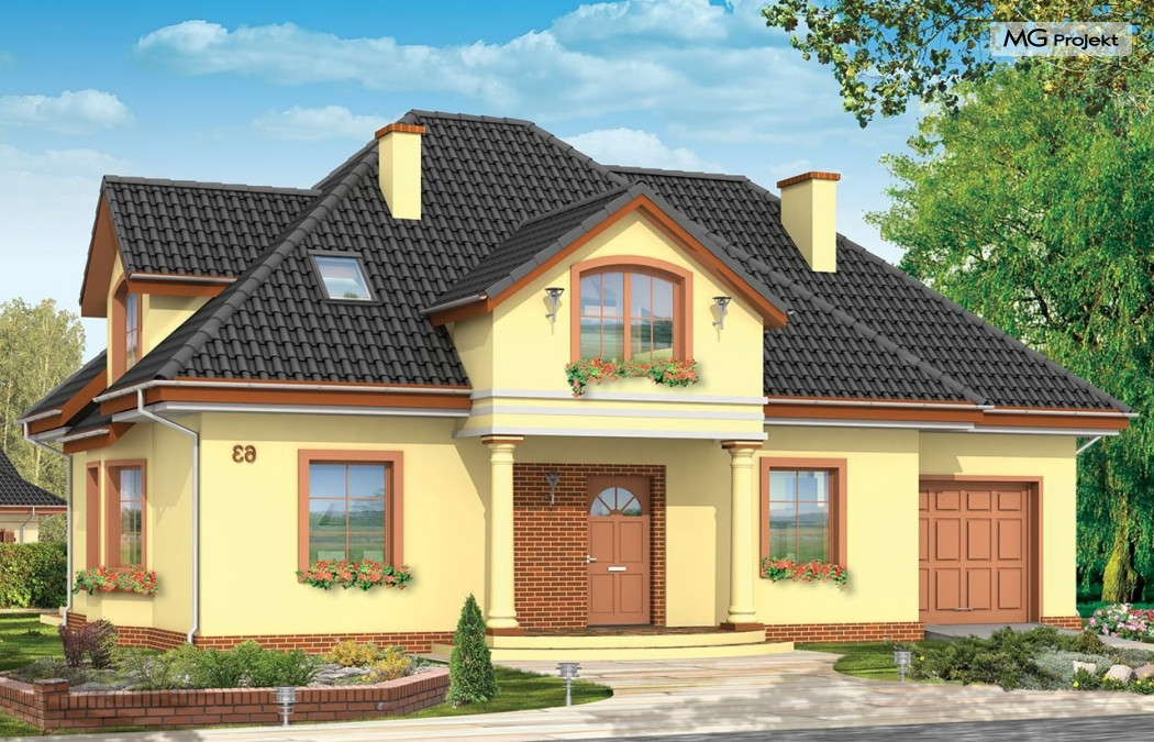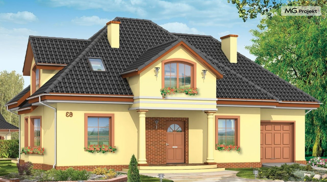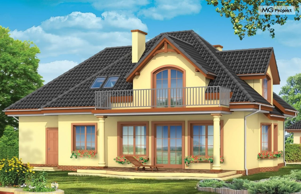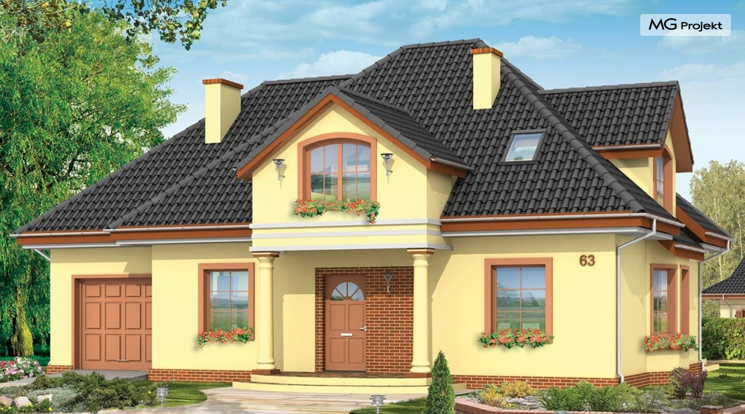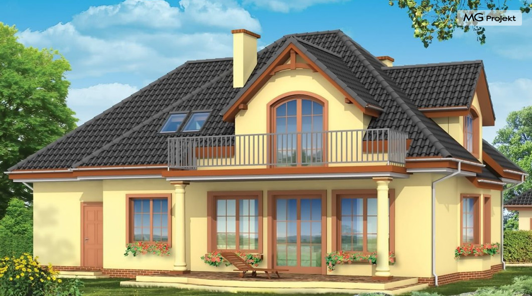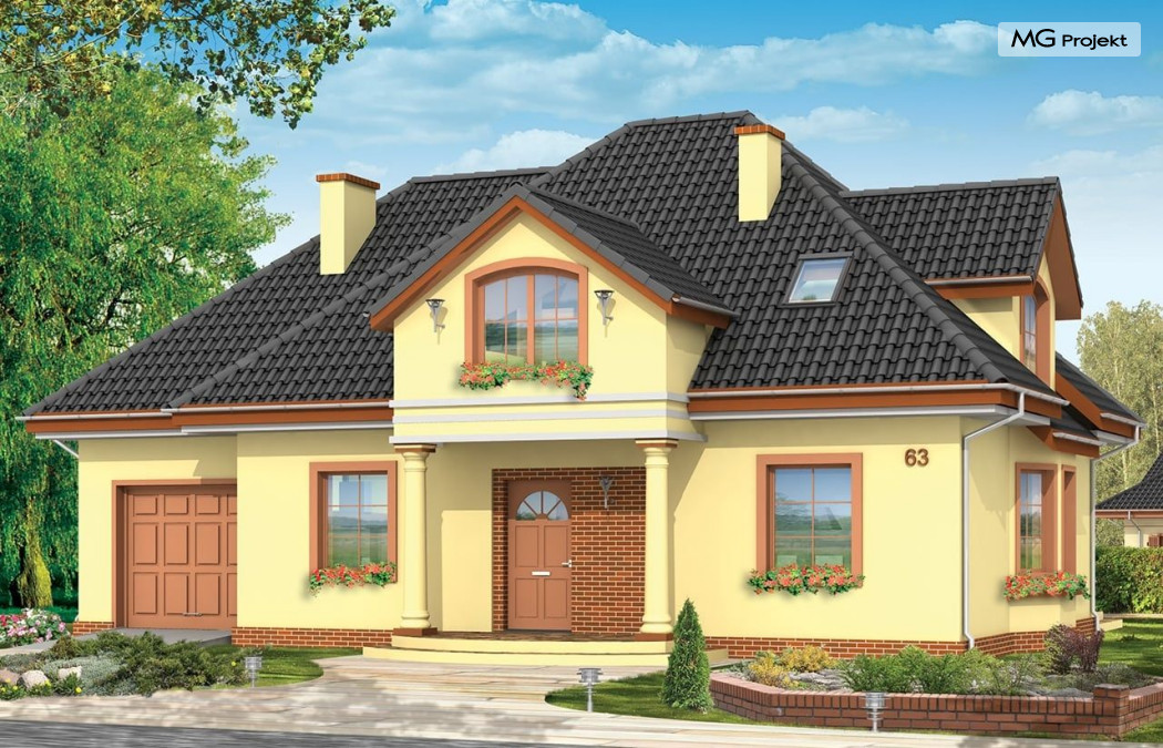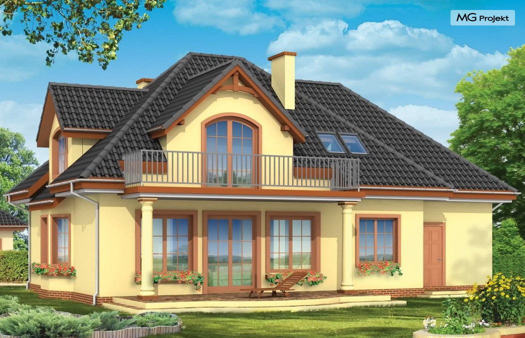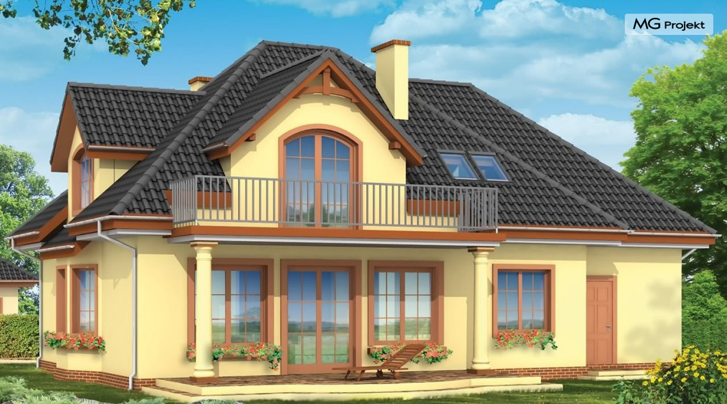 Projekt domu Saga 2, jest wariantową wersją domu Saga. Dom jednorodzinny dla rodziny 4-5 osobowej, o klasycznej architekturze, która nawiązuje do dworku polskiego. Wewnątrz budynku, podobnie jak w projekcie Saga obszerny salon z kącikiem jadalnym zaakcentowanym wykuszem posiadającym duże przeszklenia otwierające wnętrze na taras i ogród. Przestronna, częściowo otwarta kuchnia i holl powiększają powierzchnię dzienną. Na parterze zaprojektowano dodatkowy pokój, garaż i kotłownię. Na poddaszu mieszczą się trzy sypialnie z garderobami i łazienką. W projekcie domu Saga 2 można zagospodarować strych nad garażem na pokój. Pracownia dysponuje odbiciem lustrzanym projektu domu Saga oraz inne wersje: projekt domu Saga projekt domu Saga 2, projekt domu Saga 3.