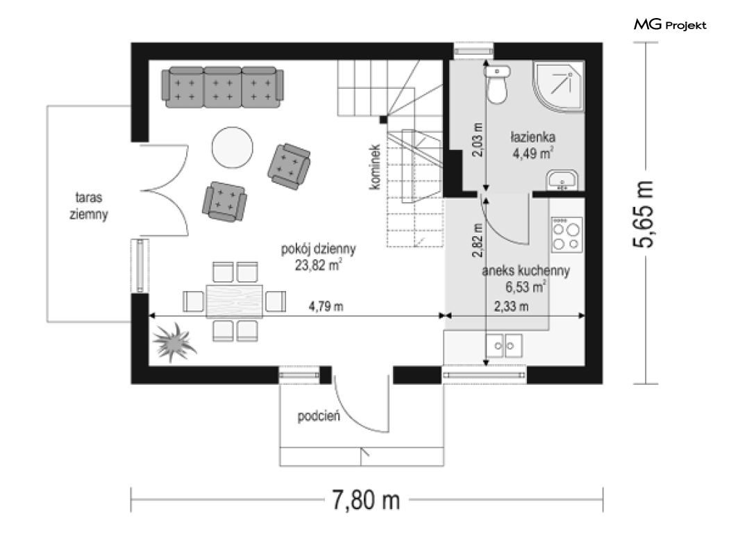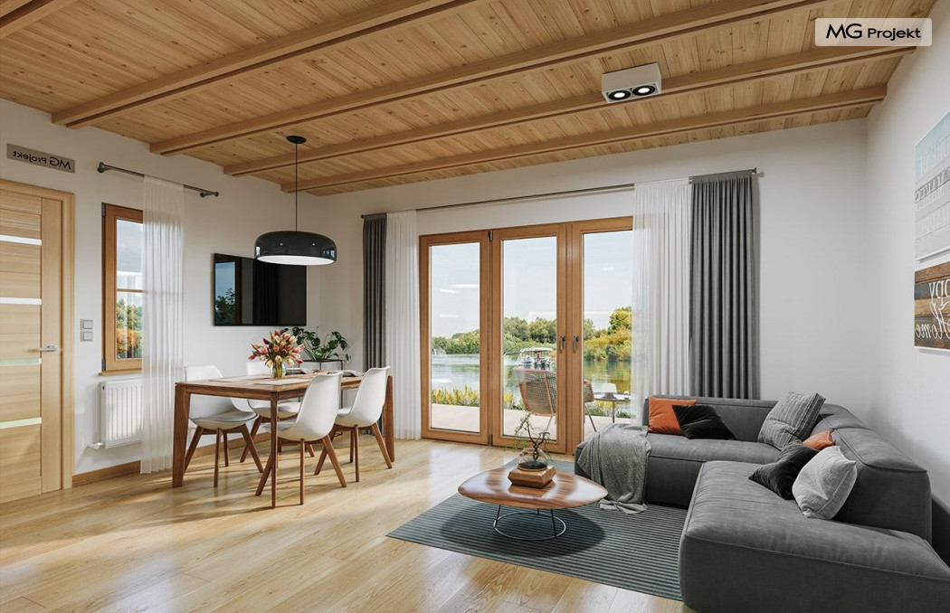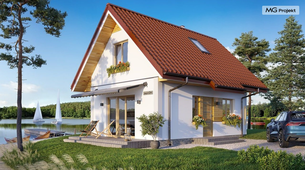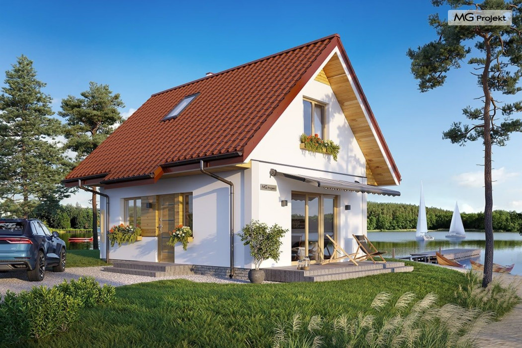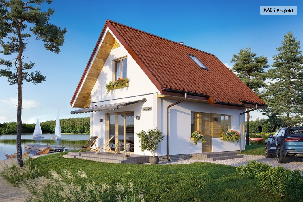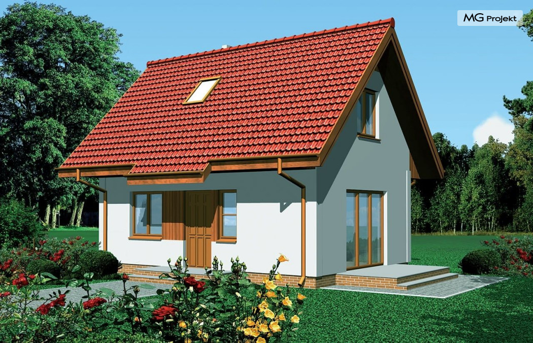 Pracownia MGProjekt zaprojektowała kilka wersji domku Sosenka: powiększoną o 1 metr, z dobudowanym garażem lub wiatą, z gankiem wejściowym, z balkonem i z podcieniem nad tarasem, czy z pomieszczeniem gospodarczym. Dom można wykonać w technologii murowanej i szkieletowej. Projekt domu Sosenka dostępny jest w odbiciu lustrzanym oraz w kilku wersjach wariantowych. Zapraszamy do zapoznania się także z innymi projektami domów z tej serii: domkiem z zadaszonym tarasem (projekt domu Sosenka 2), z gankiem wejściowym i pomieszczeniem gospodarczym (projekt domu Sosenka 3), w technologii drewnianej i większej powierzchni (projekt domu Sosenka 4, komfortowej (projekt domu Sosenka 5), w technologii drewnianej o mniejszych gabarytach (projekt domu Sosenka drewniana).