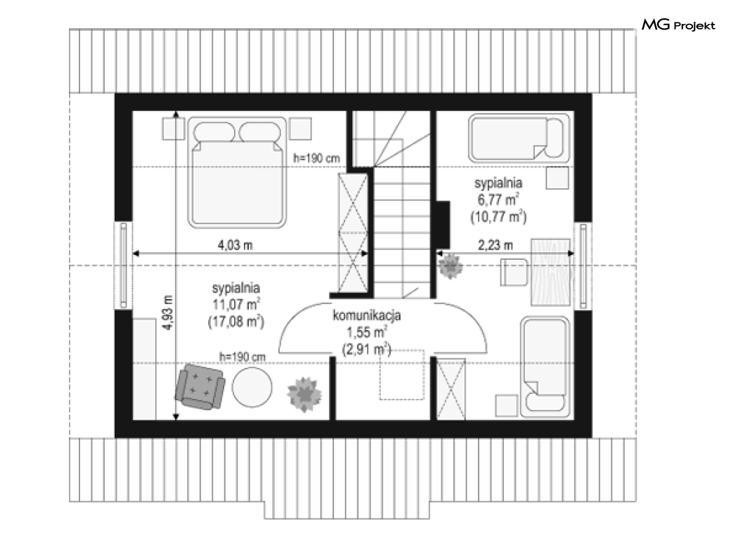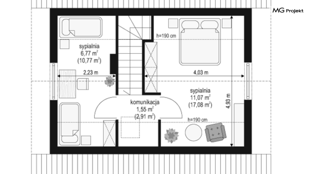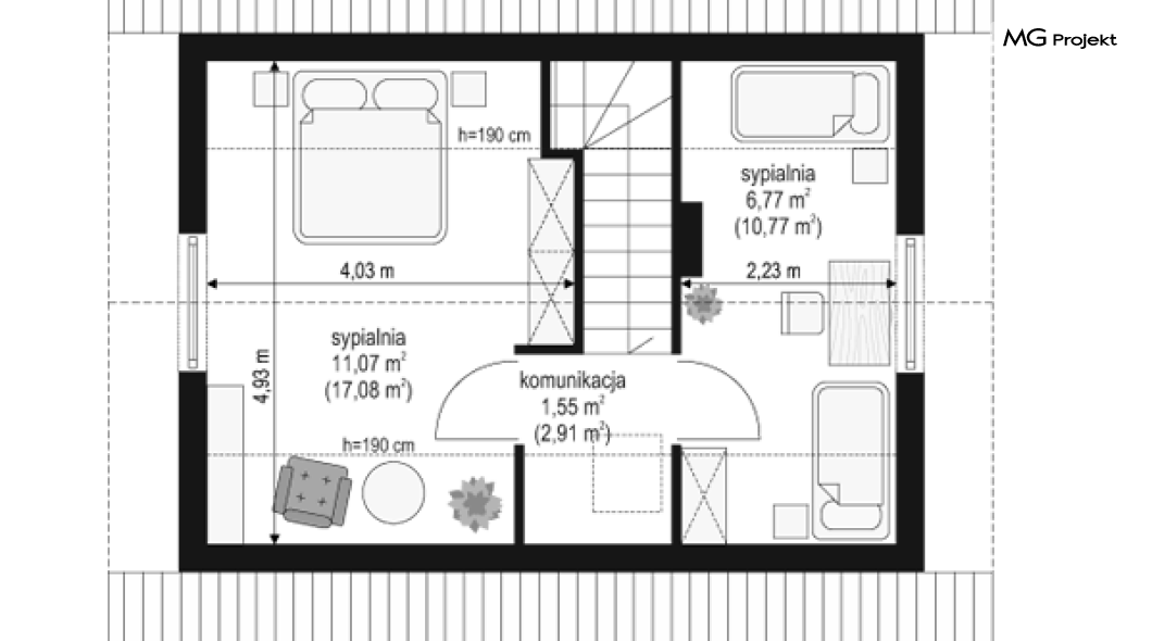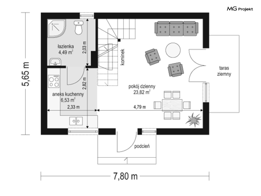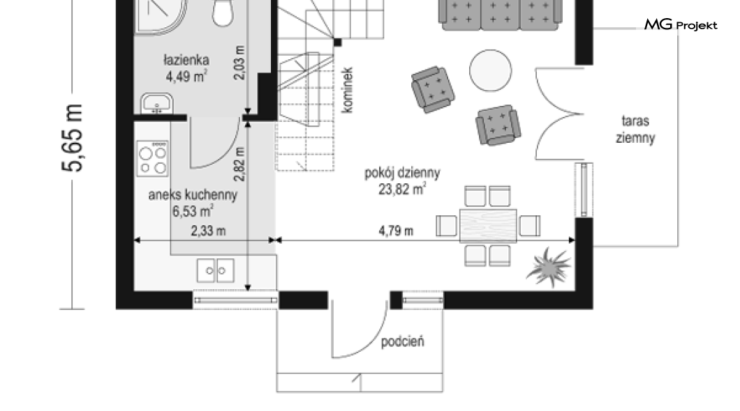 Pracownia MGProjekt zaprojektowała kilka wersji domku Sosenka: powiększoną o 1 metr, z dobudowanym garażem lub wiatą, z gankiem wejściowym, z balkonem i z podcieniem nad tarasem, czy z pomieszczeniem gospodarczym. Dom można wykonać w technologii murowanej i szkieletowej. Projekt domu Sosenka dostępny jest w odbiciu lustrzanym oraz w kilku wersjach wariantowych. Zapraszamy do zapoznania się także z innymi projektami domów z tej serii: domkiem z zadaszonym tarasem (projekt domu Sosenka 2), z gankiem wejściowym i pomieszczeniem gospodarczym (projekt domu Sosenka 3), w technologii drewnianej i większej powierzchni (projekt domu Sosenka 4, komfortowej (projekt domu Sosenka 5), w technologii drewnianej o mniejszych gabarytach (projekt domu Sosenka drewniana).