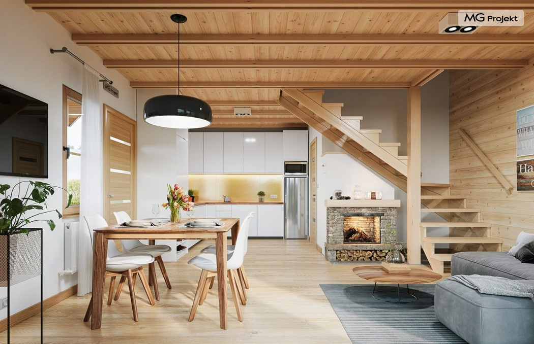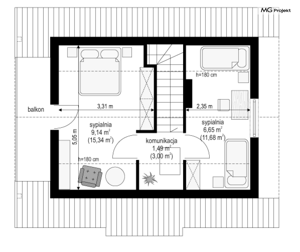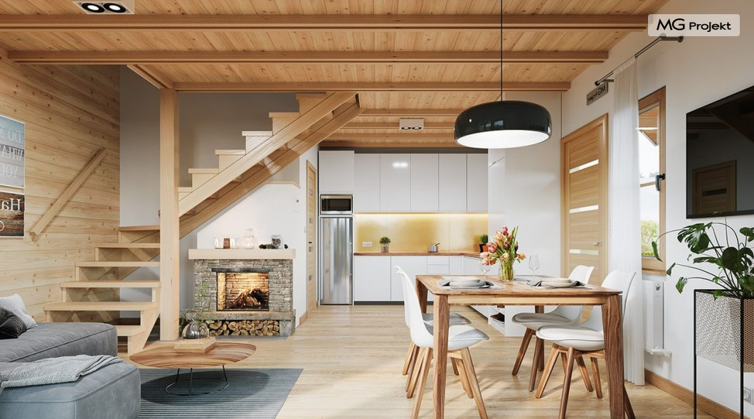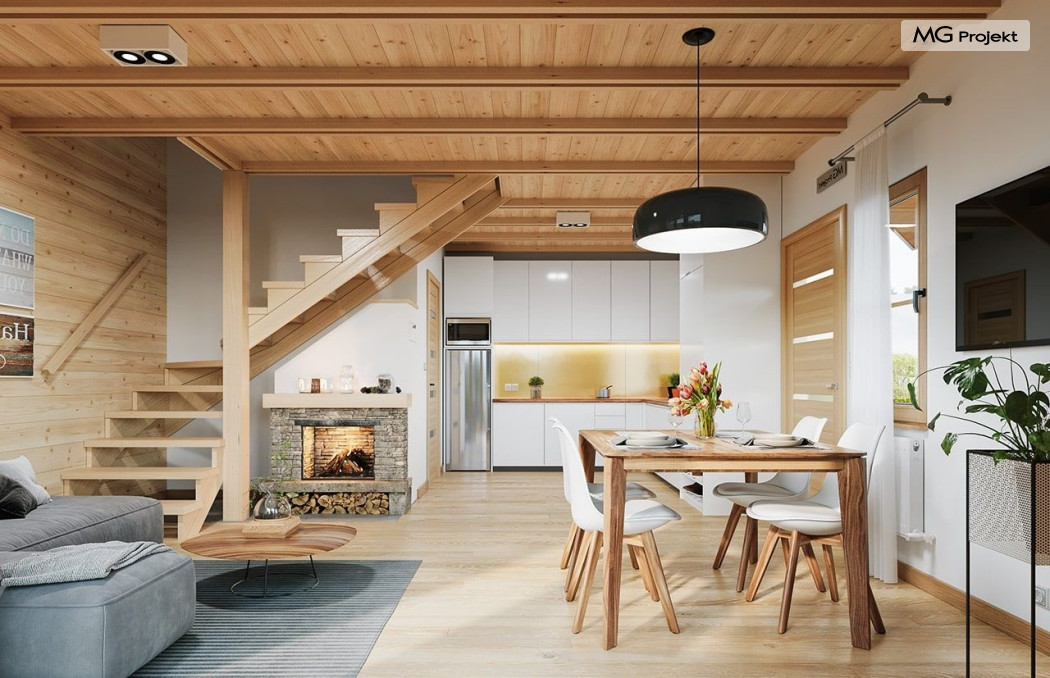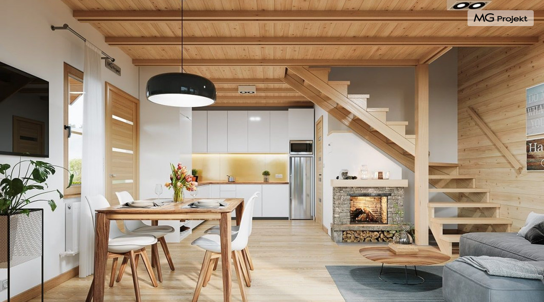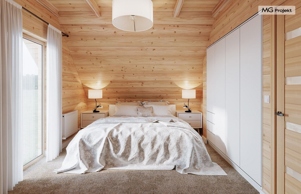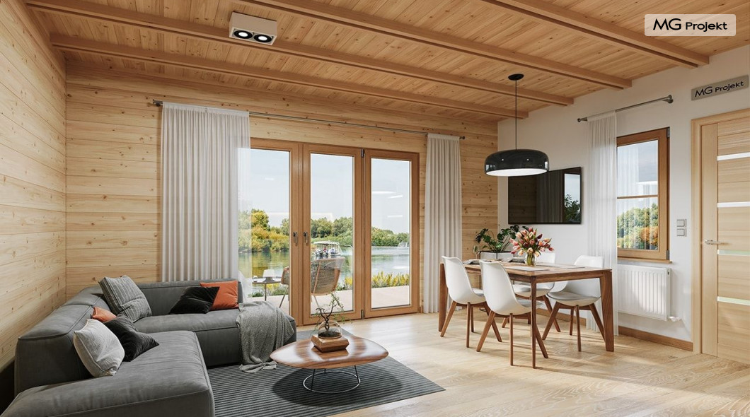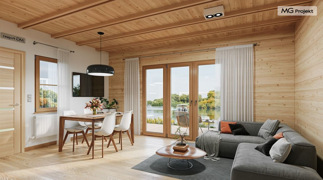 Projekt domu Sosenka Drewniana to mały zgrabny domek. Może pełnić funkcję letniskowego, ale również całorocznego domu. Jego zaletami są właściwe proporcje nadające estetyczny wygląd budynku, funkcjonalne wnętrze oraz prosta, tania w budowie konstrukcja. Pracownia posiada wiele wersji Sosenek ze zmienionymi gabarytami - z balkonem i tarasem z boku domu (Sosenka 4), przedłużony o 0,5 m - bez balkonu, przedłużony o 1,5 m z pomieszczeniem gospodarczym przy kuchni (Sosenka 3), z gankiem wejściowym (Sosenka 2), czy powiększony wariant domu (Sosenka 5). Projekt domu Sosenka Drewniana dostępny jest również w wersji odbicia lustrzanego, oraz dwóch wersjach wariantowych - z gankiem (Projekt domu Sesenka Drewniana Wariant B) i w wersji poszerzonej (Projekt domu Sesenka Drewniana Wariant D).