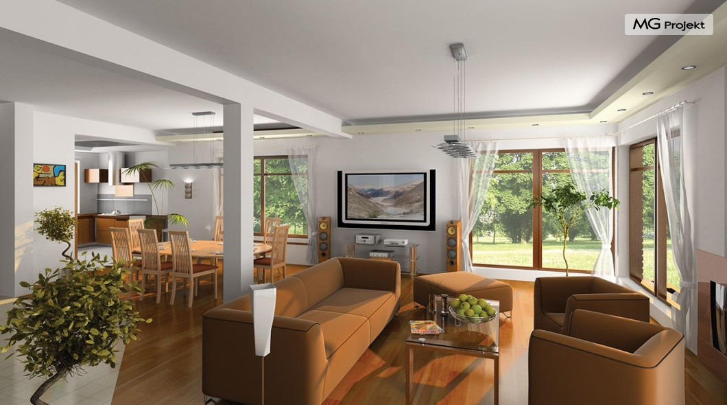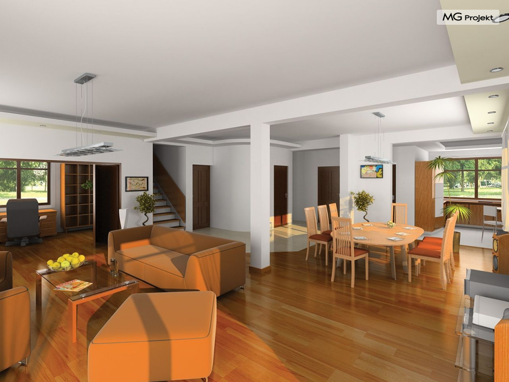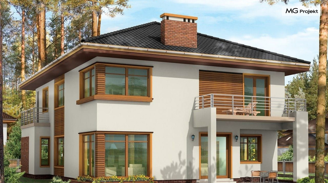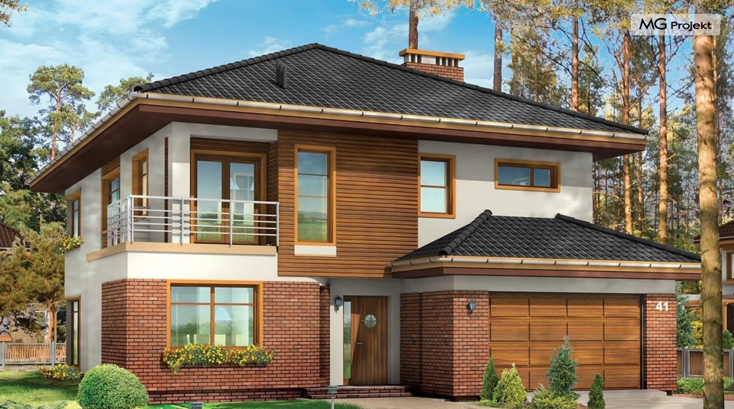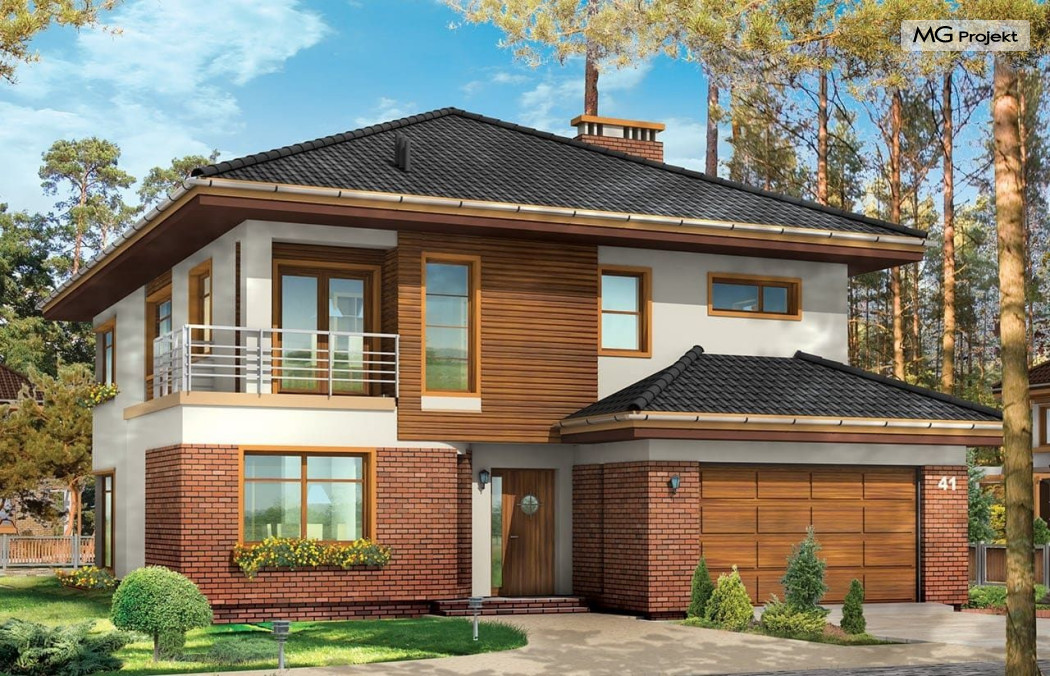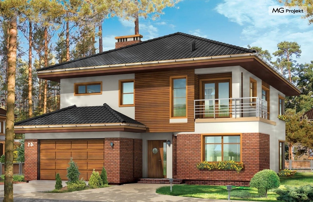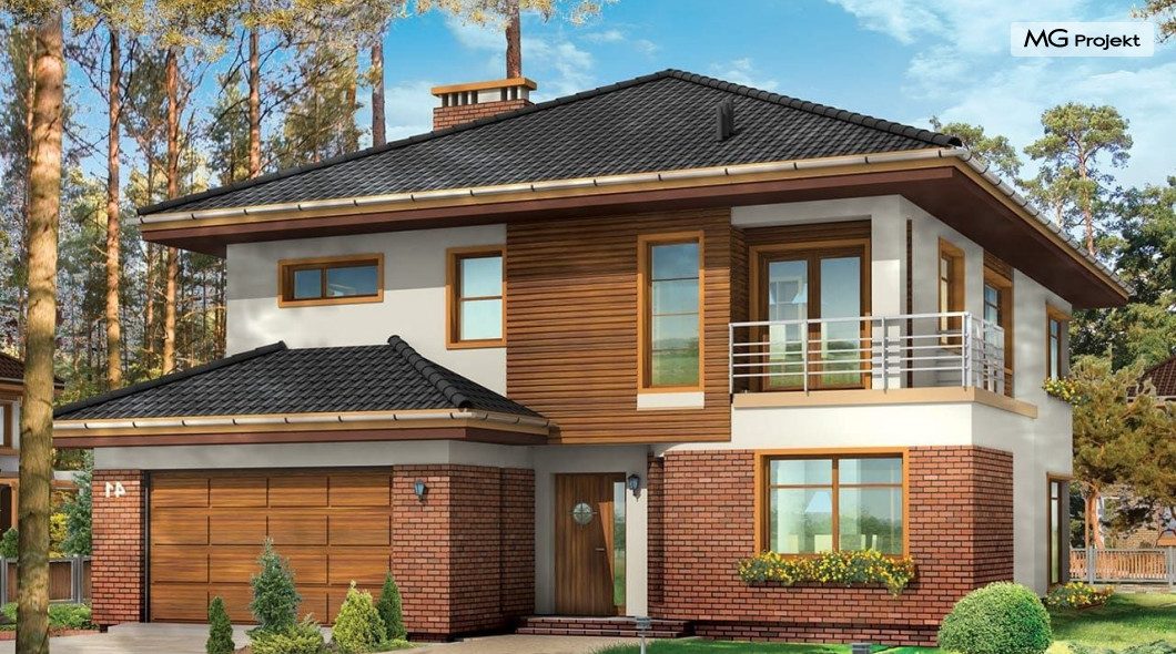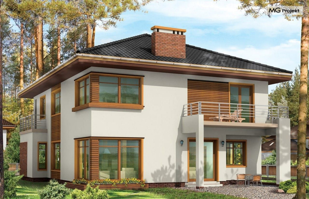 Projekt domu Topaz 2 to piętrowy, reprezentacyjny budynek jednorodzinny, o nowoczesnej acz nie przesadzonej architekturze. Zaprojektowano go z myślą o rodzinie 4-6 osobowej. Projekt domu Topaz 2 występuje w dwóch wersjach wariantowych, ze zróżnicowaną częścią frontową. Bryła budynku jest urozmaicona kilkoma użytymi materiałami, wykuszami i daszkami. Wejście do domu zostało zaakcentowane podcieniem z łukową boczną ścianą z klinkieru. Wnętrze jest uniwersalnym wygodnym mieszkaniem dla średniej wielkości rodziny. Składa się z czterech sypialni na piętrze, z których każda ma swoją garderobę. Sypialnia rodziców ma dodatkową łazienkę. Na parterze do dyspozycji mamy salon połączony z jadalnią i holem, kuchnię i dodatkowy pokój - gabinet. W domu przewidziano również garaże i przestrzeń gospodarczą. Część ogrodowa budynku to duże przeszklenia - otwarcia z salonu na otaczającą dom działkę. Pracownia dysponuje też projektem Topaz w odbiciu lustrzanym oraz innymi wersjami: projekt domu Topaz, projekt domu Topaz 2, projekt domu Topaz 3.