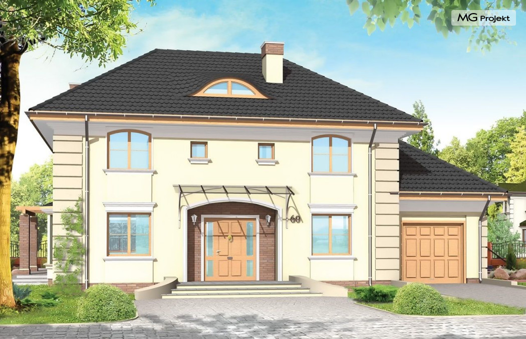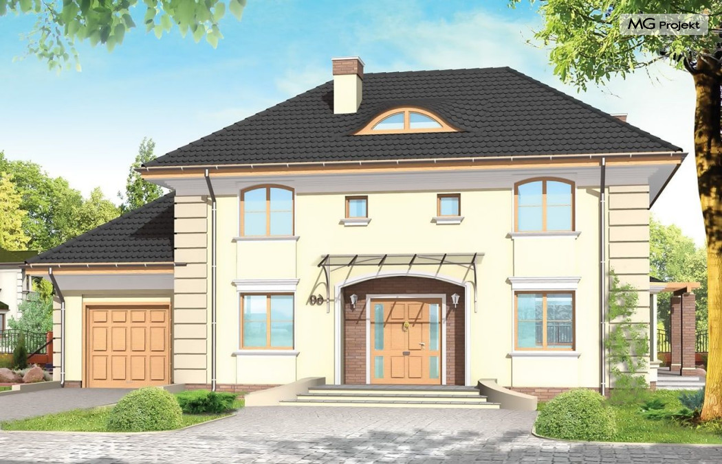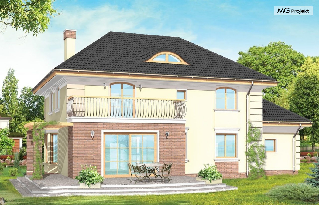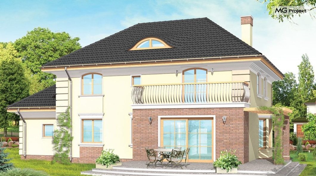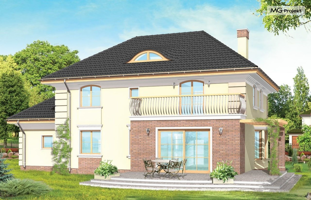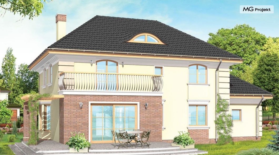 Projekt domu Willowy to piętrowy domek jednorodzinny, nawiązujący swoim wyglądem do śródziemnomorskich willi, doskonale wpasowujący się w podmiejską zabudowę jednorodzinną. Dom Willowy, dzięki dwu pełnym kondygnacjom zajmuje na działce niewielką powierzchnię. Ponadto pokoje na poddaszu nie mają „skosów” - tak częstych w domach z wielospadowymi dachami. Obszerny strych nad pierwszym piętrem daje dodatkową, zapasową przestrzeń, podobnie jak strych nad garażem. Domek pomieści dużą - nawet 6-7osobową rodzinę. W projekcie domu Willowy, na parterze zaprojektowano duży salon z aneksem jadalnym, otwarty przestrzennie na holl i eleganckie schody. Na parterze zmieszczono również dodatkowy pokój i zaplecze gospodarcze. Na piętrze mieszczą się cztery sypialnie i dwie łazienki - jedna z połówek piętra może być apartamentem rodziców, z odrębną łazienką i własnym wejściem. Pracownia posiada wersję odbicia lustrzanego projektu domu Willowy.