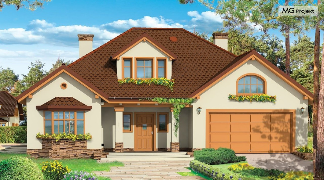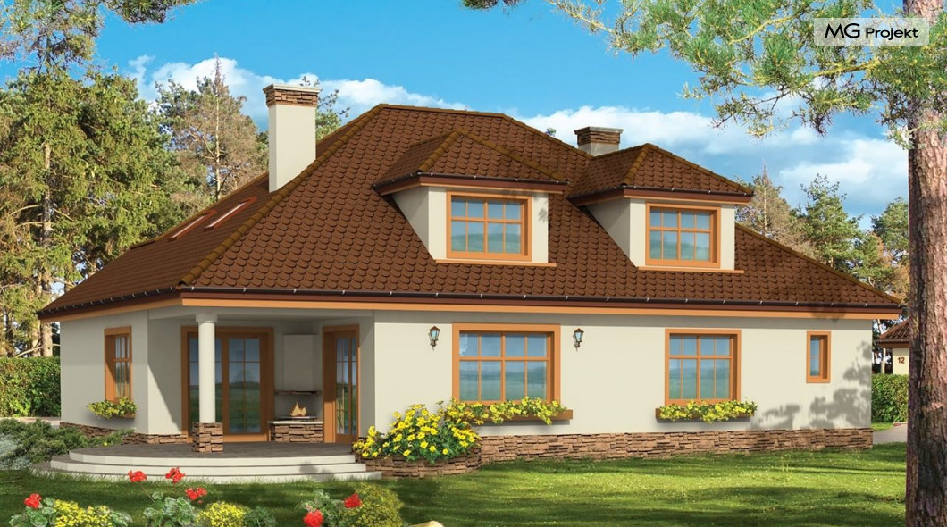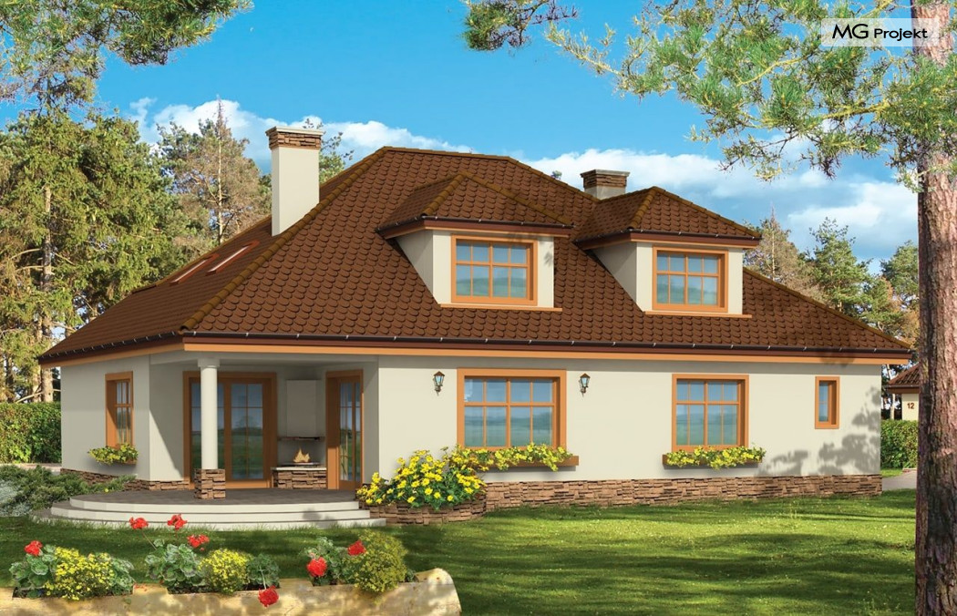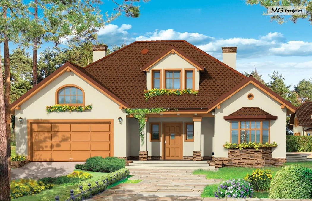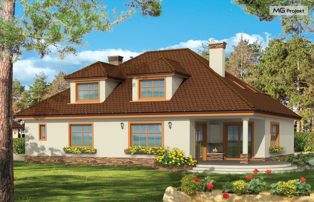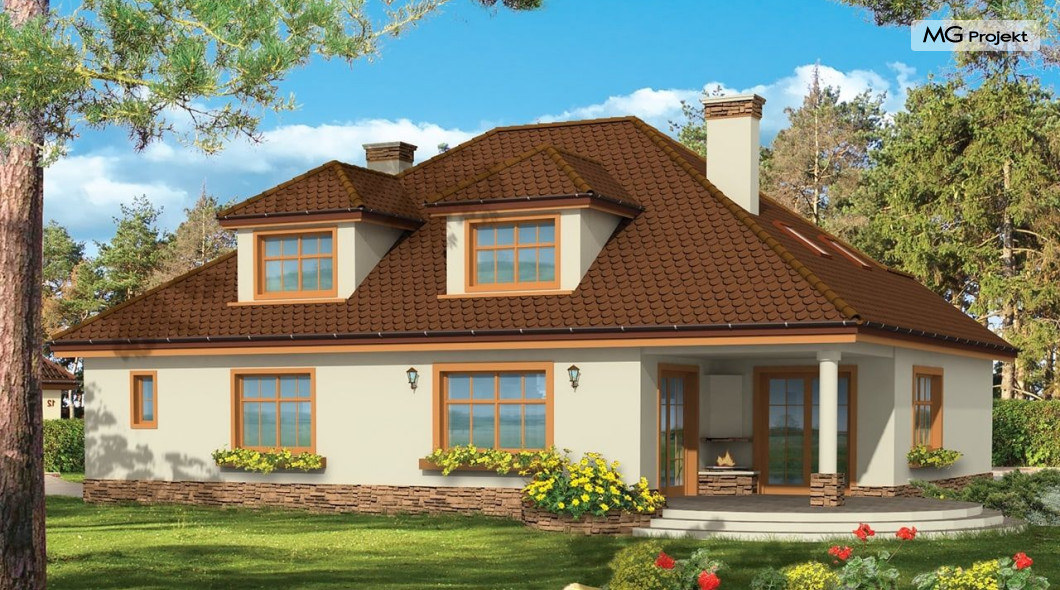 Projekt domu Zacisze to wersja wariantowa projektu Zacisze 2. Dom został zwężony, dzięki czemu zmieści się na mniejszej działce, o szerokości 23 metry. Uproszczono bryłę, likwidując przybudówkę przy garażu. W projekcie domu Zacisze wykusz jadalni został zamieniony na duże okno. W domu usunięto kilka ścian działowych i uzyskano bardziej otwartą przestrzeń - salonu, holu i jadalni. Pracownia posiada też wersję projektu domu Zacisze w odbiciu lustrzanym oraz projekt domu Zacisze 3. Zapraszamy!
