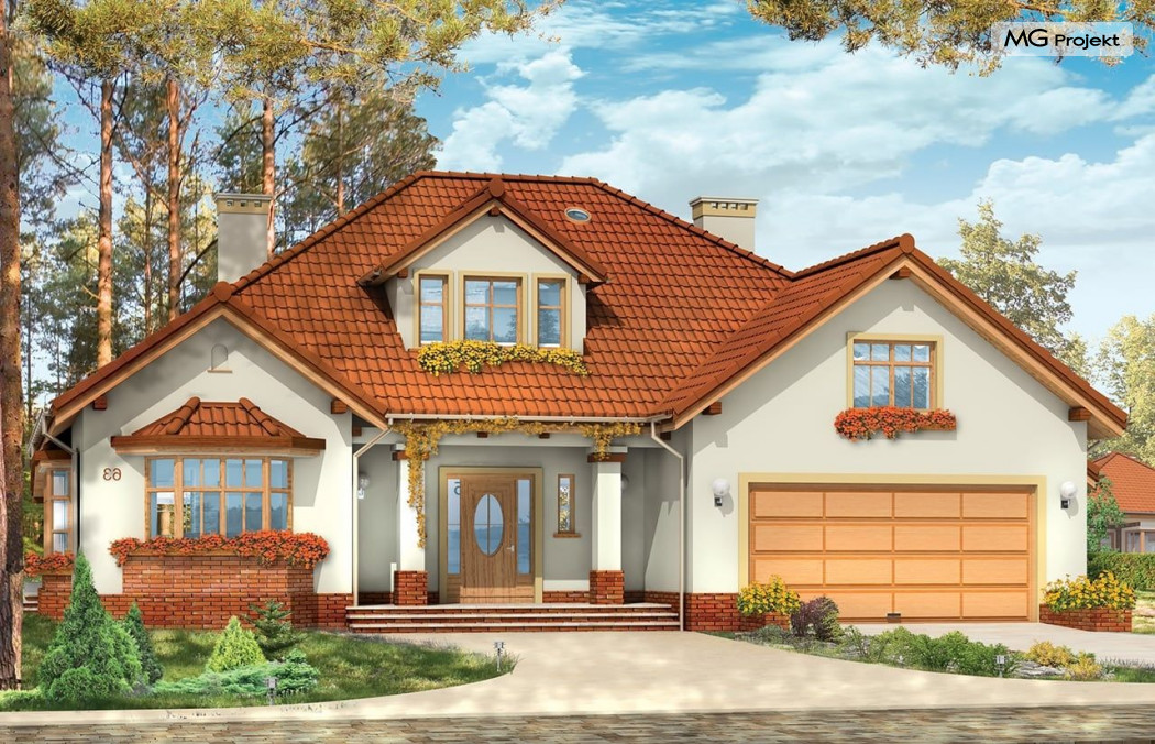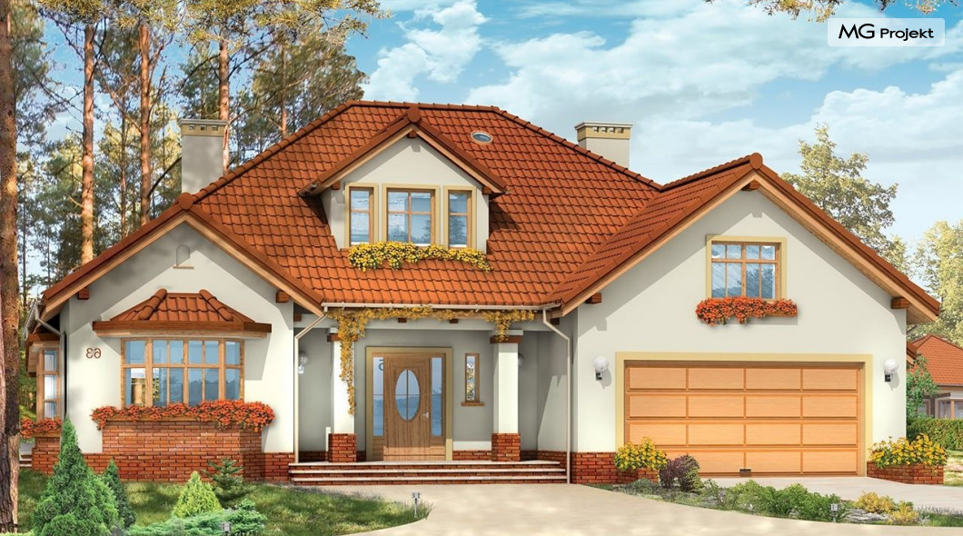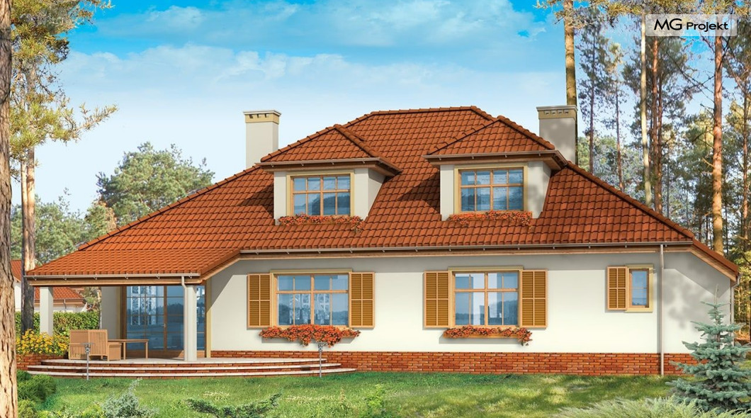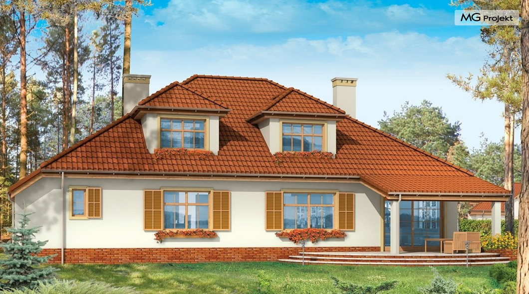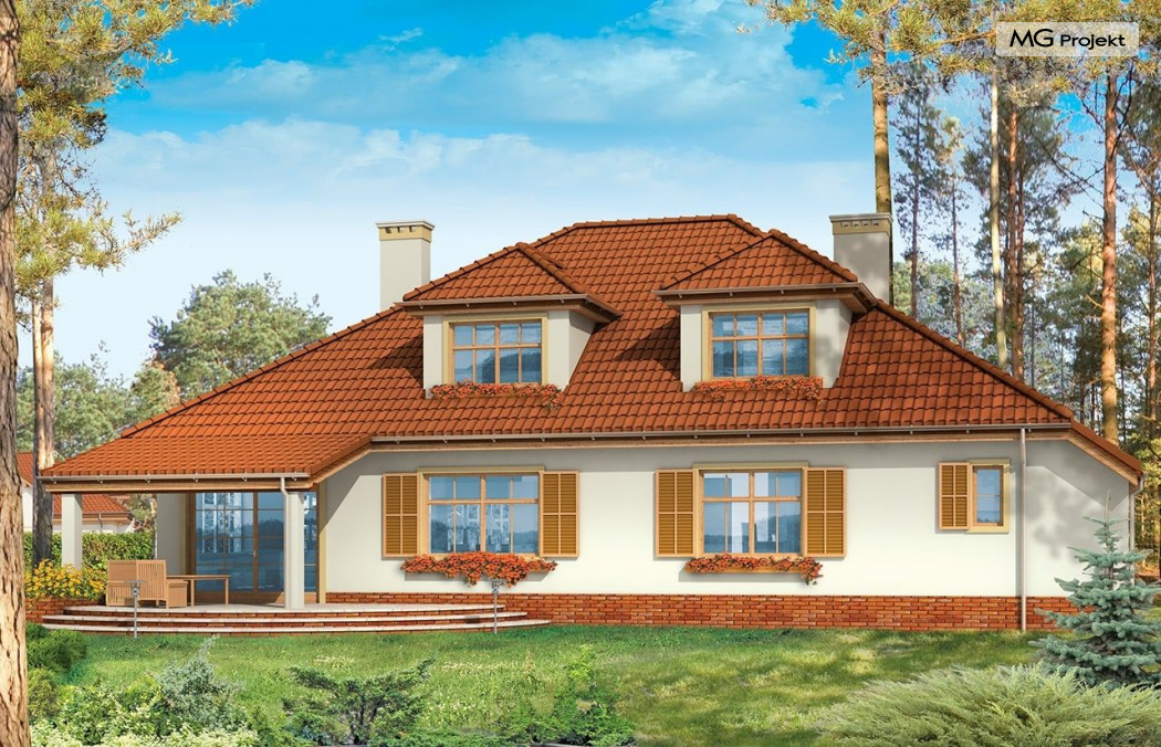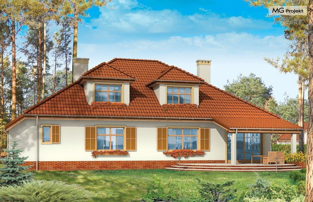 Projekt domu Zacisze 3 to kolejna wersja popularnego projektu Zacisze. Ta wersja wariantowa różni się od podstawowej powiększonym przez likwidację podcienia salonem, dodano też zadaszony taras ogrodowy. W projekcie przedłużona została też bryła garażu. Przez wyciągnięcie jej w stronę frontu domu, udało się zaprojektować dodatkowe pomieszczenia na parterze i powiększyć strych nad garażem na poddaszu. Teraz może on pełnić również rolę pełnoprawnego dodatkowego pokoju. Wnętrze domu Zacisze 3 podzielono na parterze na rozległą część dzienną, apartament sypialny rodziców, garaż i pomieszczenia techniczne. Na poddaszu znajdują się trzy sypialnie i pralnia. Pracownia posiada wersję projektu domu Zacisze 3 w odbiciu lustrzanym oraz inne wersje: projekt domu Zacisze, projekt domu Zacisze 2. Zapraszamy!
