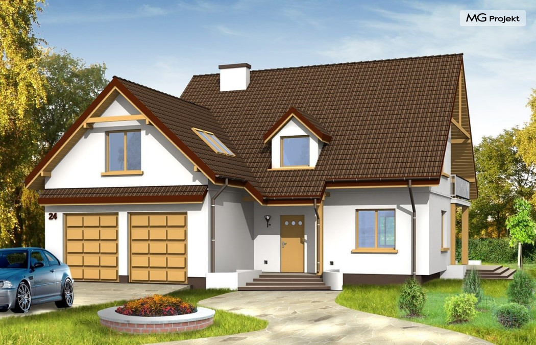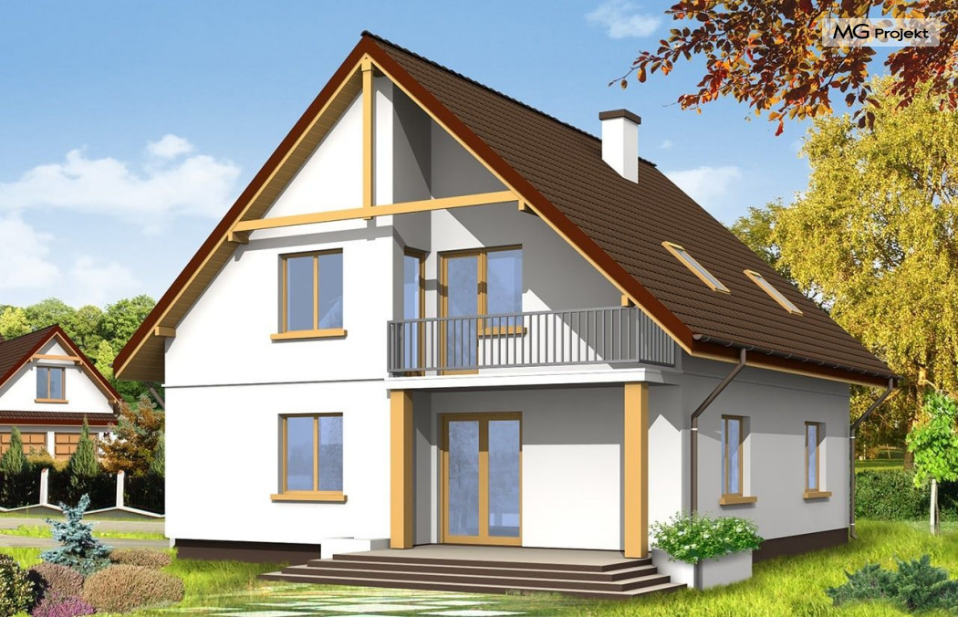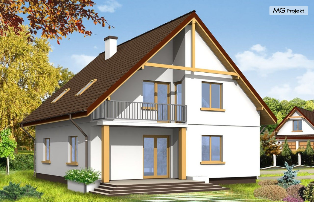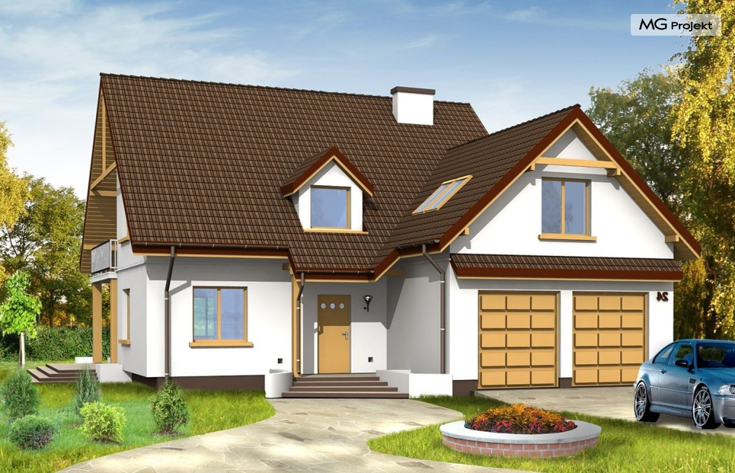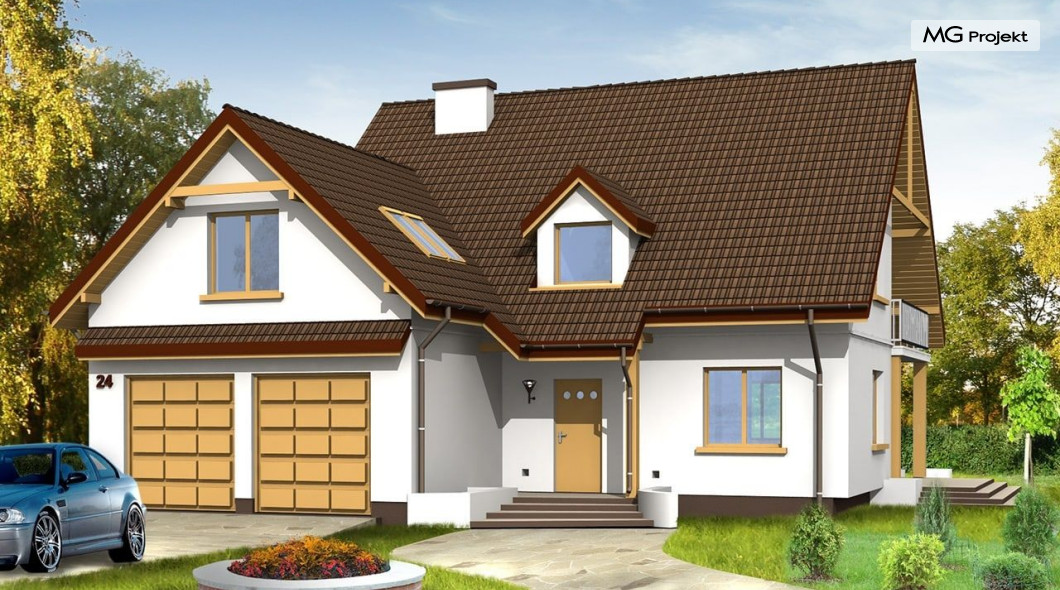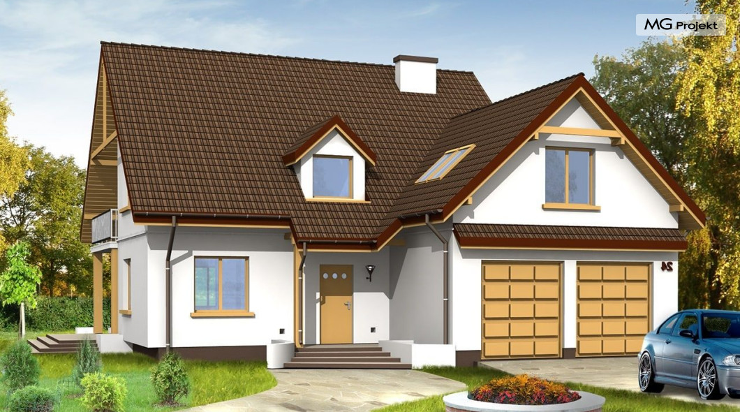 Projekt domu Zalesie to wygodny domek dla 4-5osobowej rodziny. Spokojna stonowana bryła współgra z funkcjonalnym wnętrzem. Domek Zalesie pasuje na wąską działkę, mimo że posiada dwustanowiskowy garaż. Wnętrze domu: na parterze mieści się duży salon, kuchnia z aneksem oraz gabinet. Na poddaszu zaprojektowano cztery sypialnie, duży pokój kąpielowy i garderobę. Pracownia posiada również projekt domu Zalesie w lustrzanym odbiciu.