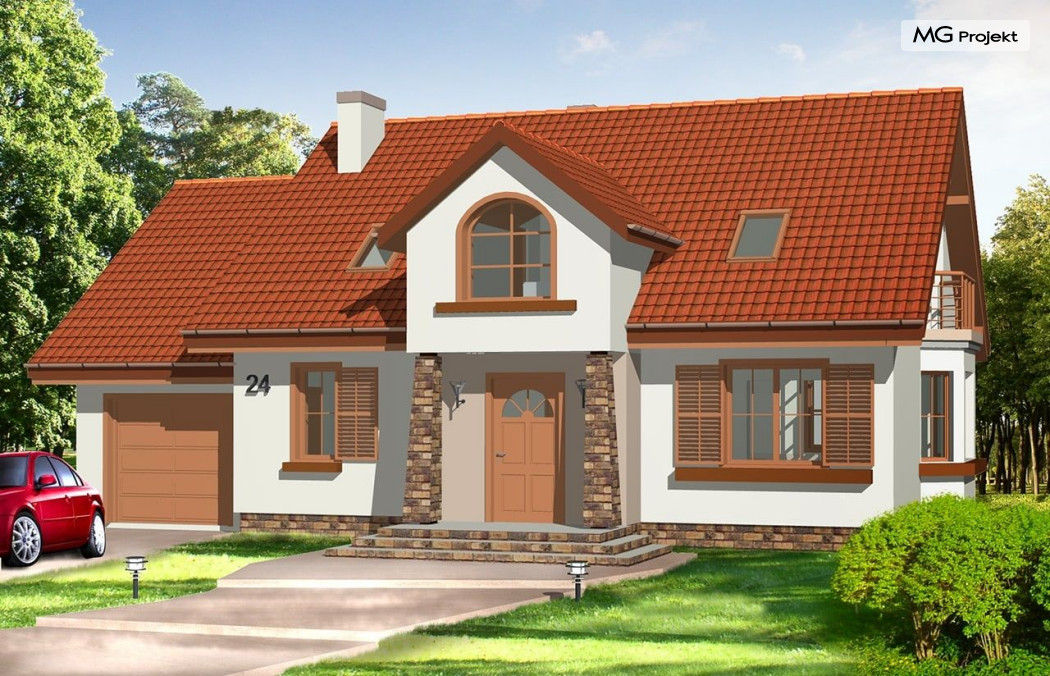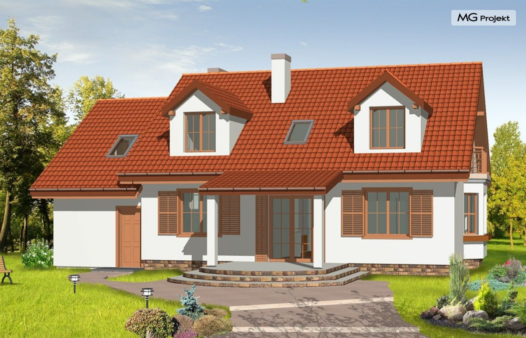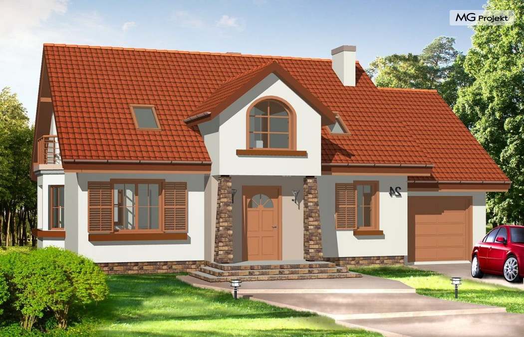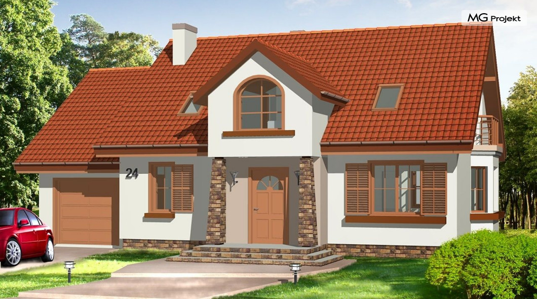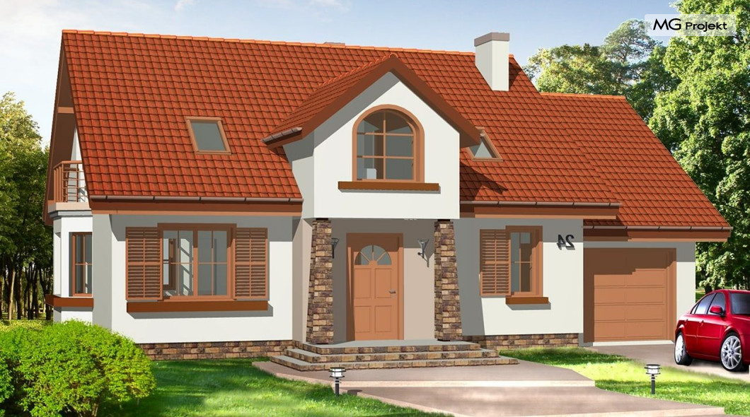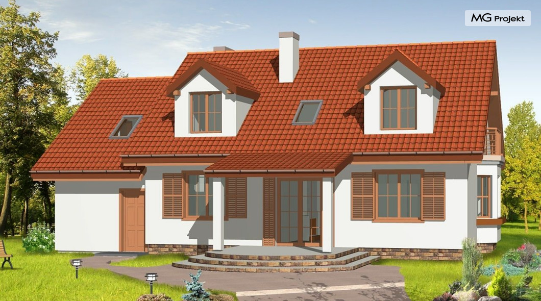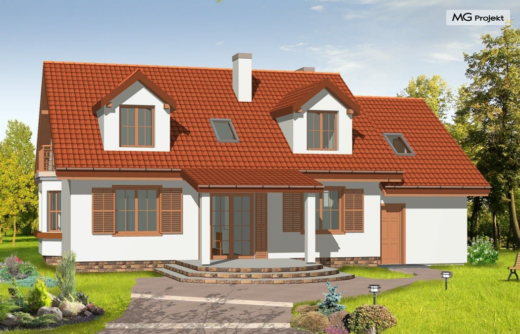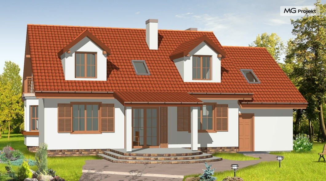 Projekt domu Zgrabny 3, to optymalna propozycja dla rodziny 4-5 osobowej. Powstał, jako urozmaicona wersja domu Zgrabny. Umieszczony na środku elewacji frontowej portyk wejściowy i zadaszony taras od strony ogrodu dodają bryle uroku i zgrabności. Dom Zgrabny 3 posiada reprezentacyjną architekturę i funkcjonalne wnętrze. Na parterze oprócz salonu zaprojektowano dodatkowy pokój i łazienkę. Na poddaszu mieszczą się trzy sypialnie, garderoba, duża łazienka oraz dodatkowy pokój nad garażem. Projekt domu Zgabny 3 dostępny jest też jako wersja w odbiciu lustrzanym oraz inne jego wersje: projekt domu Zgrabny, projekt domu Zgrabny 2, projekt domu Zgrabny 4, projekt domu Zgrabny 5, projekt domu Zgrabny z lukarnami, projekt domu Zgrabny z przedsionkiem. Zapraszamy!