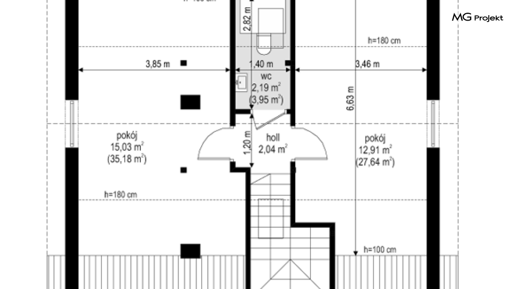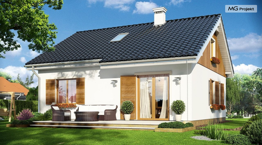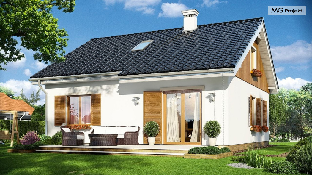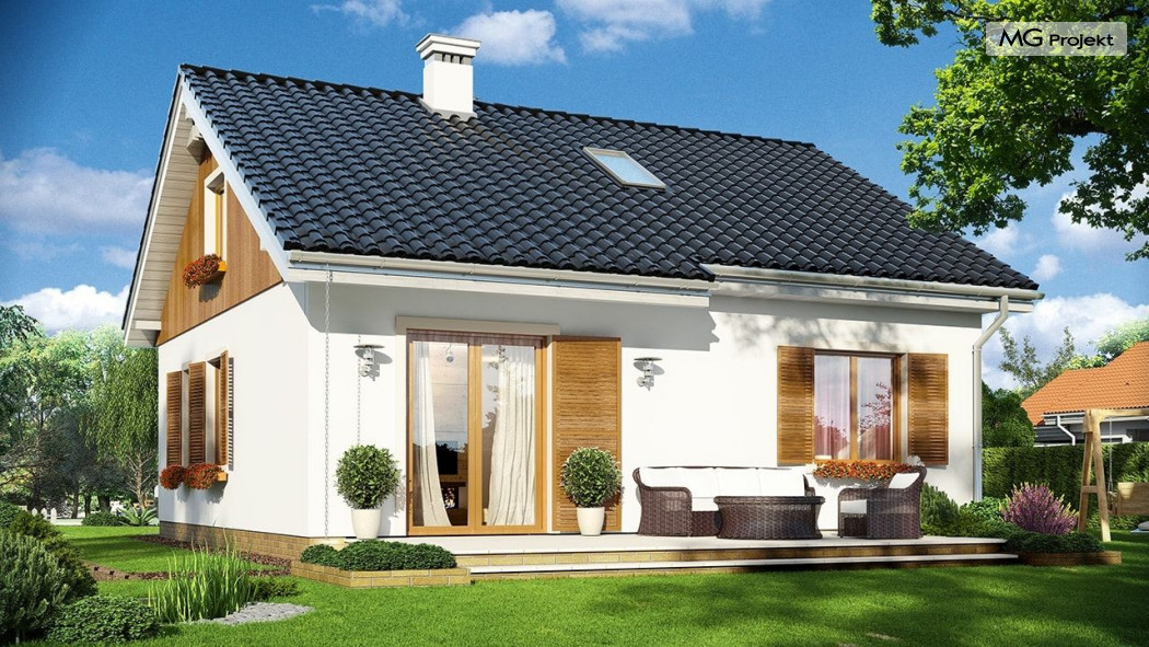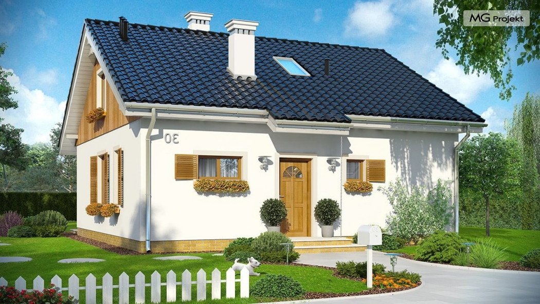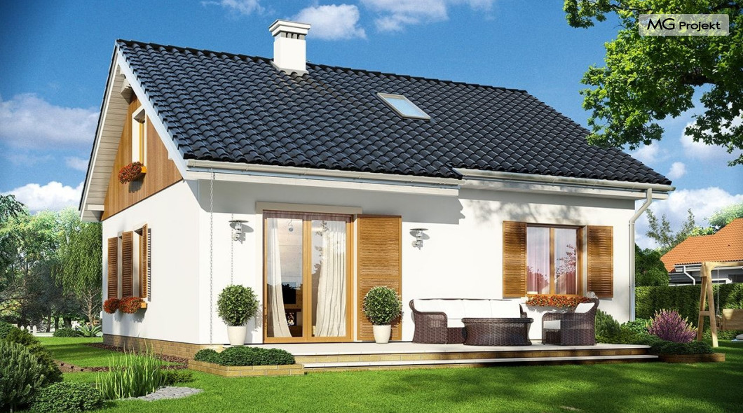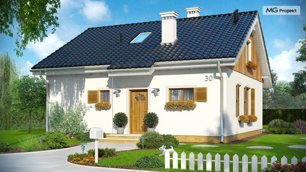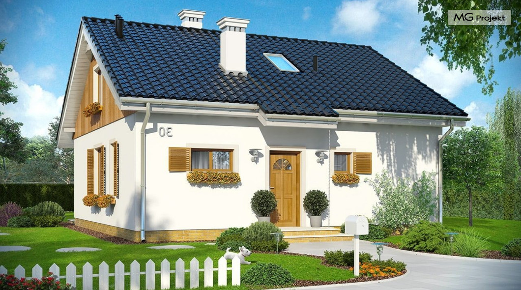 Projekt domu Zosia 3 to kolejna odsłona popularnego projektu z serii Zosia z pracowni MGProjekt. Tym razem prezentujemy domek parterowy z poddaszem zagospodarowanym na cele użytkowe. Dzięki funkcjonalnemu układowi pomieszczeń w niewielkiej powierzchni stu metrów kwadratowych udało się zmieścić aż sześć pokoi - salon, oraz trzy pokoje na parterze i dwie dodatkowe sypialnie na poddaszu. Projekt domu Zosia 3 nadaje się idealnie dla wieloosobowej rodziny chcącej niewielkim kosztem zbudować swoją siedzibę. Domek jest też świetną propozycją dla osób potrzebujących dodatkowych h – poza sypialniami - pokoi (na przykład do pracy zawodowej). Projekt domu Zosia 3 to również świetna propozycja na dom wakacyjny - dzięki dużej ilości pokoi zmieścimy wielu gości. Budynek ma prostą, nieskomplikowaną w budowie bryłę i konstrukcję. Jest niedrogi w budowie i w późniejszej eksploatacji. Dzięki dobrym izolacjom i zwartej bryle wydatki na ogrzewanie będą niewielkie. Achitektura zewnętrzna to bezpretensjonalna zgrabna bryła, w skali człowieka, z łagodnie schodzącymi połaciami dachów. Dostępne jest również odbicie lustrzane. Zapraszamy do zapoznania się z pełną ofertą pracowni MG Projekt tej serii: projekt domu Zosia, projekt domu Zosia 2, projekt domu Zosia 4, projekt domu Zosia 5, projekt domu Zosia 6, projekt domu Zosia 7, projekt domu Zosia 7B, projekt domu Zosia 8. Zapraszamy!