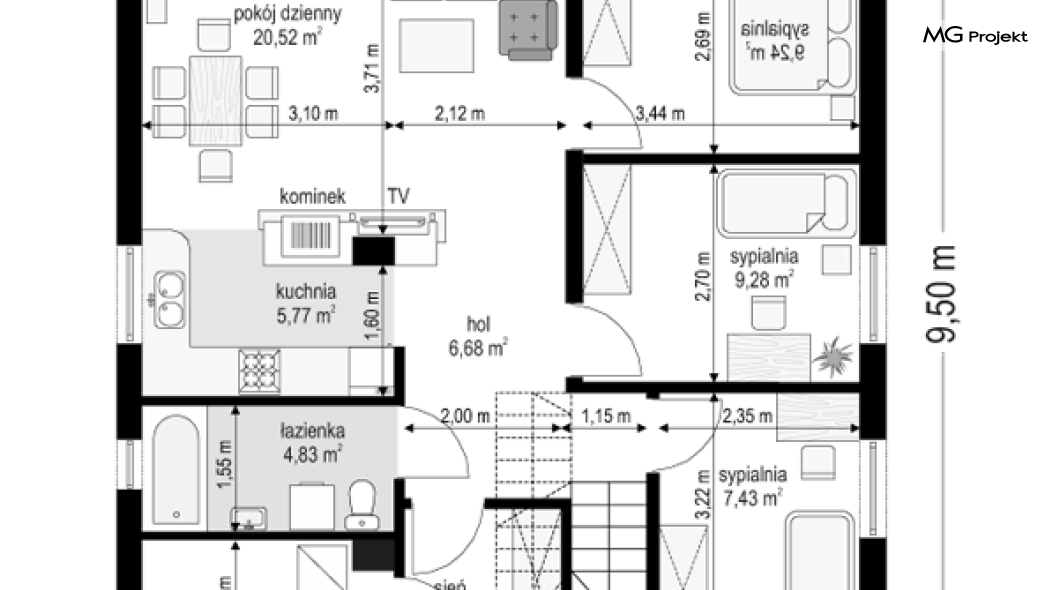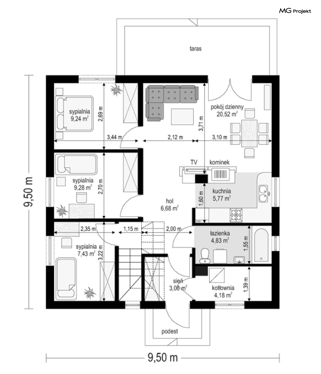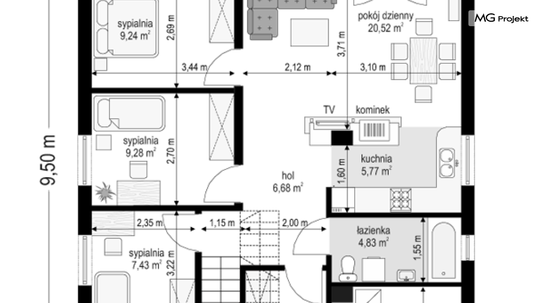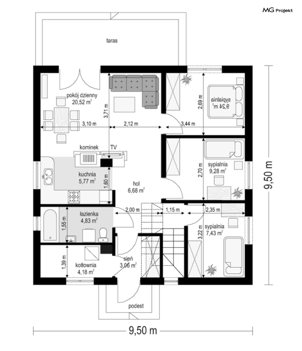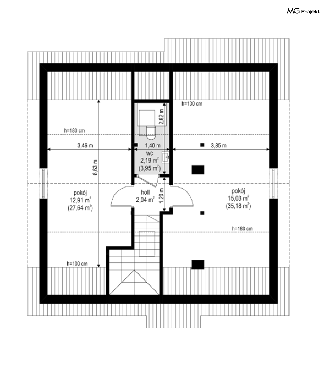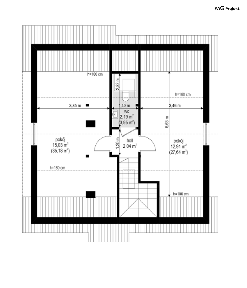 Projekt domu Zosia 3 to kolejna odsłona popularnego projektu z serii Zosia z pracowni MGProjekt. Tym razem prezentujemy domek parterowy z poddaszem zagospodarowanym na cele użytkowe. Dzięki funkcjonalnemu układowi pomieszczeń w niewielkiej powierzchni stu metrów kwadratowych udało się zmieścić aż sześć pokoi - salon, oraz trzy pokoje na parterze i dwie dodatkowe sypialnie na poddaszu. Projekt domu Zosia 3 nadaje się idealnie dla wieloosobowej rodziny chcącej niewielkim kosztem zbudować swoją siedzibę. Domek jest też świetną propozycją dla osób potrzebujących dodatkowych h – poza sypialniami - pokoi (na przykład do pracy zawodowej). Projekt domu Zosia 3 to również świetna propozycja na dom wakacyjny - dzięki dużej ilości pokoi zmieścimy wielu gości. Budynek ma prostą, nieskomplikowaną w budowie bryłę i konstrukcję. Jest niedrogi w budowie i w późniejszej eksploatacji. Dzięki dobrym izolacjom i zwartej bryle wydatki na ogrzewanie będą niewielkie. Achitektura zewnętrzna to bezpretensjonalna zgrabna bryła, w skali człowieka, z łagodnie schodzącymi połaciami dachów. Dostępne jest również odbicie lustrzane. Zapraszamy do zapoznania się z pełną ofertą pracowni MG Projekt tej serii: projekt domu Zosia, projekt domu Zosia 2, projekt domu Zosia 4, projekt domu Zosia 5, projekt domu Zosia 6, projekt domu Zosia 7, projekt domu Zosia 7B, projekt domu Zosia 8. Zapraszamy!