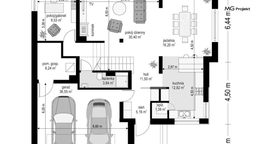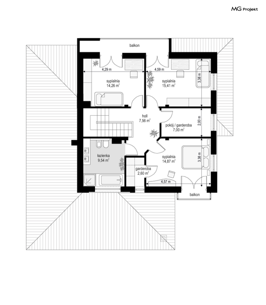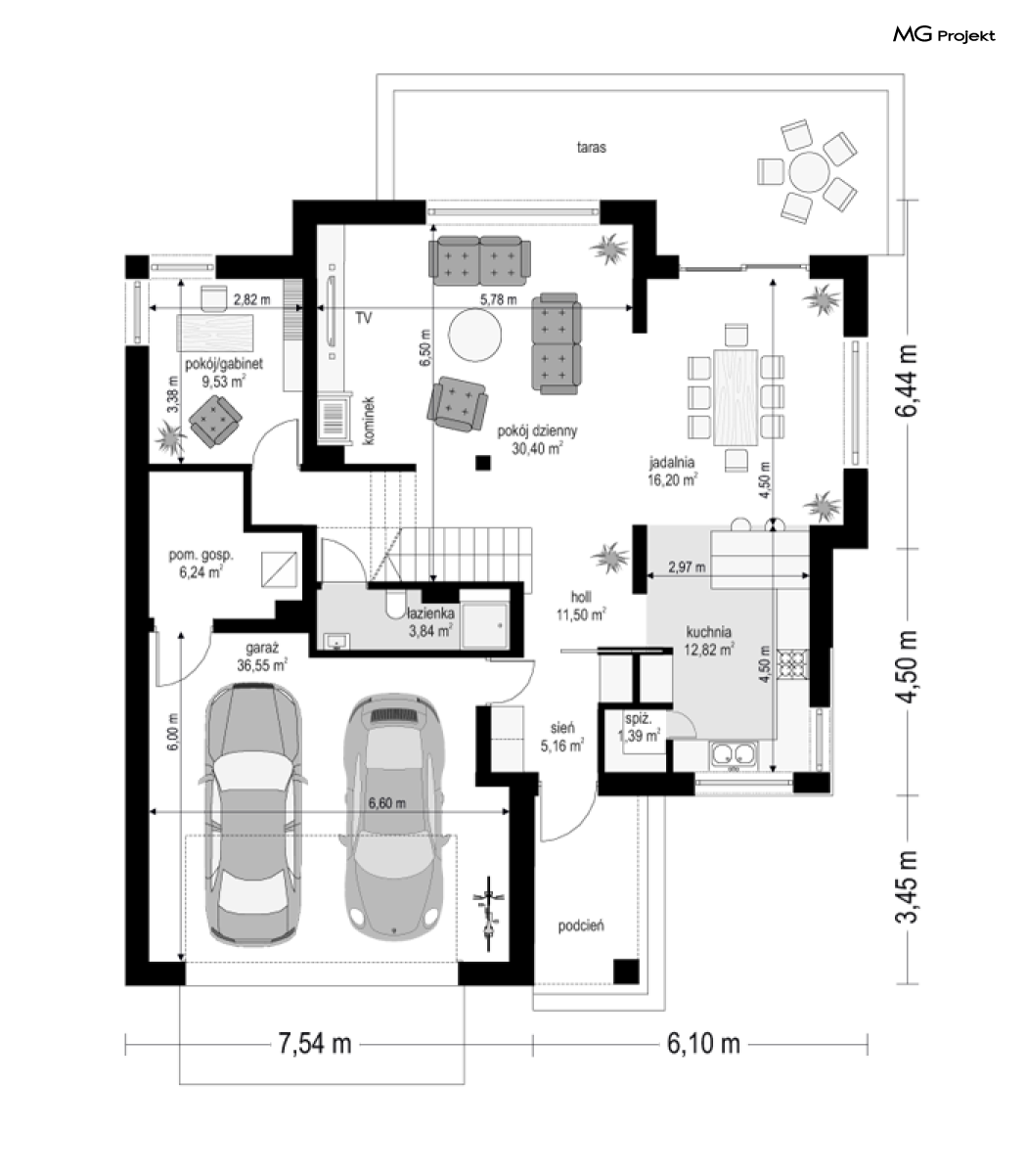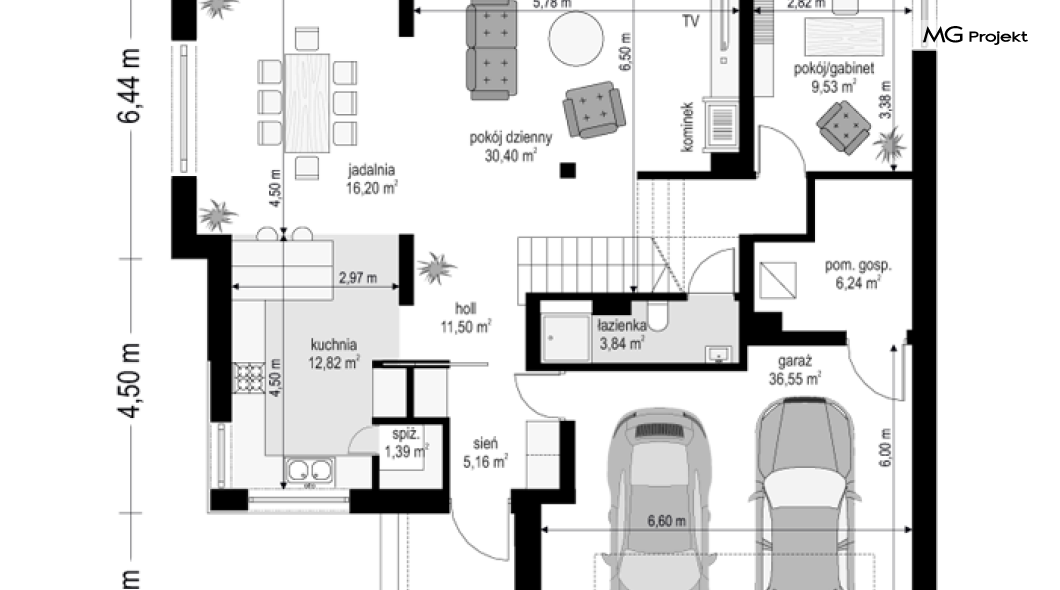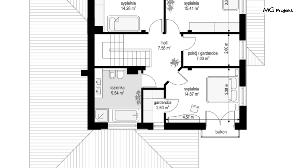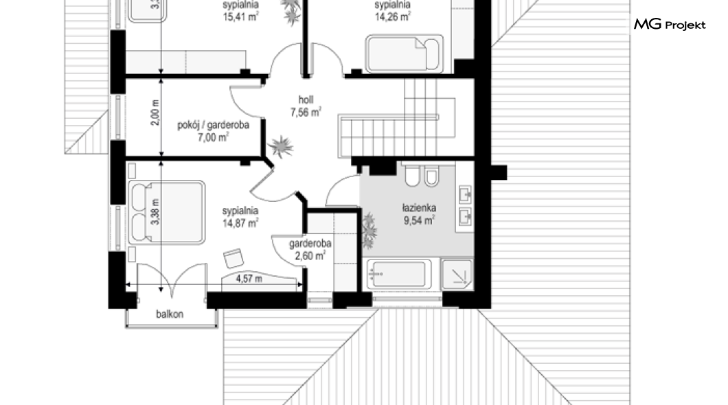 Projekt domu Szmaragd 5 Prezentujemy kolejną wersję wariantową domu z serii Szmaragd. Tym razem jest to Szmaragd 5. Projekt domu jednorodzinnego piętrowego, z garażem częściowo wbudowanym w bryłę. Projekt domu Szmaragd 5 przeznaczony dla 4-5cioosobowej rodziny. Dom ma nowoczesną, ale nie agresywną architekturę. Bryła budynku jest zwarta, przykryta kopertowym dachem. Dzięki temu dom będzie łatwy i niedrogi zarówno w budowie, jak i późniejszym utrzymaniu. Parter domu to otwarta część dzienna, z salonem, holem, jadalnią i otwartą kuchnią. Razem pomieszczenia tworzą dużą wspólną przestrzeń. Dodatkowo na parterze przewidziano pokój - gabinet lub sypialnię gościnną, łazienkę, oraz duży garaż i kotłownię. Przy kuchni zmieściła się niewielka spiżarka. Na piętrze mamy trzy ładne sypialnie (sypialnia rodziców z garderobą), oraz bardzo ładną łazienkę. Jest też dodatkowe pomieszczenie, które może służyć jako pokój, albo domowe biuro, lub pralnię – garderobę. Nad piętrem mamy jeszcze sporej wielkości strych - magazyn domowych rupieci. Projekt domu Szmaragd 5 to komfortowy, wygodny dom. Ma w sobie wszystko czego można potrzebować od prawdziwego domu. Nowoczesny wygląd domu, kolorystyka i materiały tworzą spójną całość z przestronnym wnętrzem. Dom jest energooszczędny. Dobre ocieplenia i nowoczesne instalacje pozwalają go w łatwy sposób przystosować do standardu NF40. Projekt dostępny jest w odbiciu lustrzanym jak i w kilku innych wersjach : wersja bazowa (projekt domu Szmaragd), zbliźniaczona (projekt domu Szmaragd 2), wersja z dodatkowym pokojem na parterze (projekt domu Szmaragd 3), komfortowa ( projekt domu Szmaragd 4), oraz najnowszą (projekt domu Szmaragd 6). Zapraszamy !