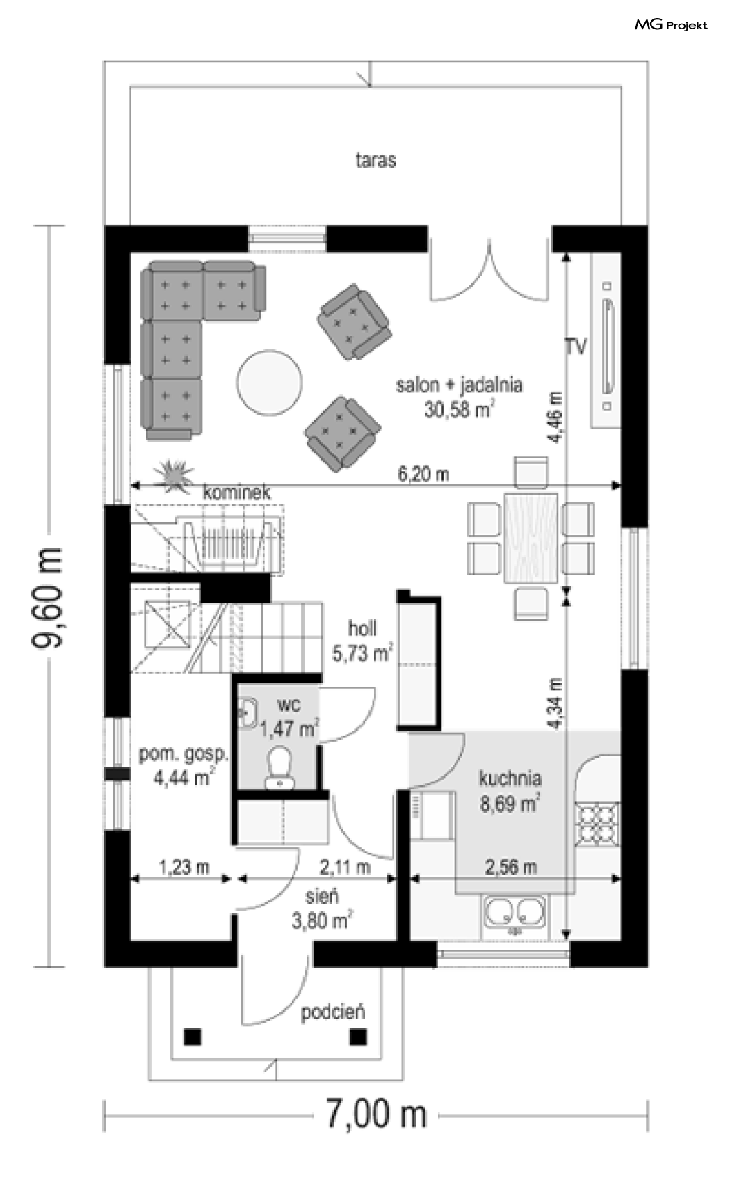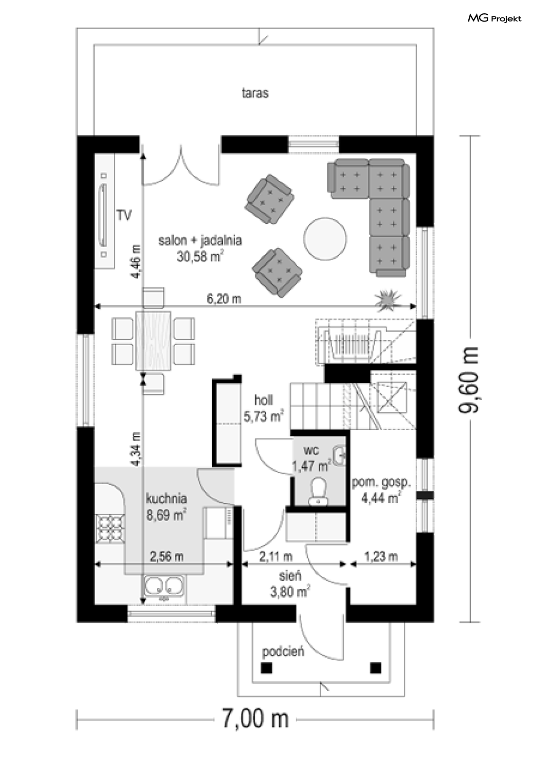 Projekt domu Adaś to idealna propozycja dla czteroosobowej rodziny. Dom Adaś został zaprojektowany z naczółkowym dachem. Wnętrze ukształtowano z podziałem na część ogólną, dzienną - z salonem oraz część prywatną oraz nocną z trzema sypialniami i łazienką.Dostępna jest wersja projektu w odbiciu lustrzanym. Projekt domu Adaś występuje w wersjach wariantowych z garażem dobudowanym z boku domu lub garażem od strony elewacji frontowej (D03 z garażem) - jako propozycja na bardzo wąską działkę.