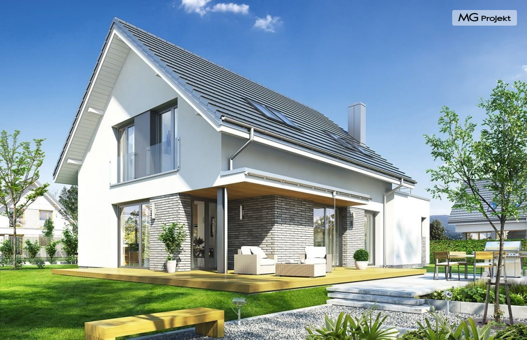 Samba to projekt domu jednorodzinnego, parterowego z poddaszem użytkowym. Dom parterowy z poddaszem przeznaczony dla cztero-pięcioosobowej rodziny.
