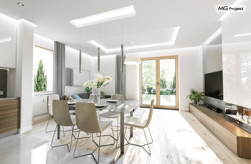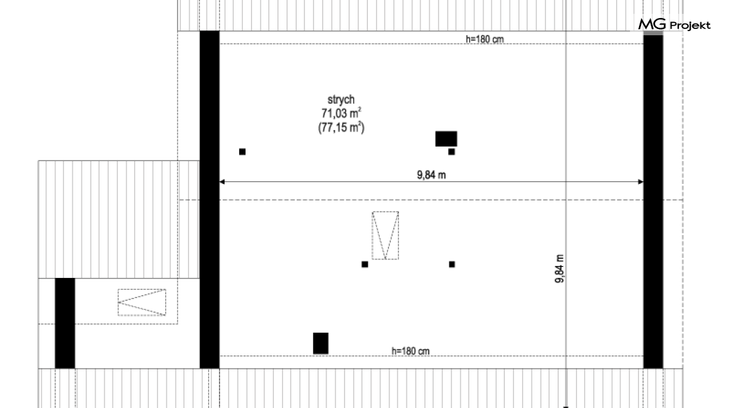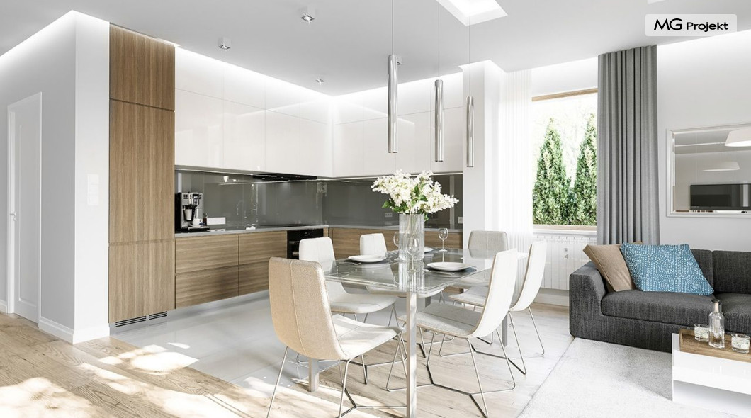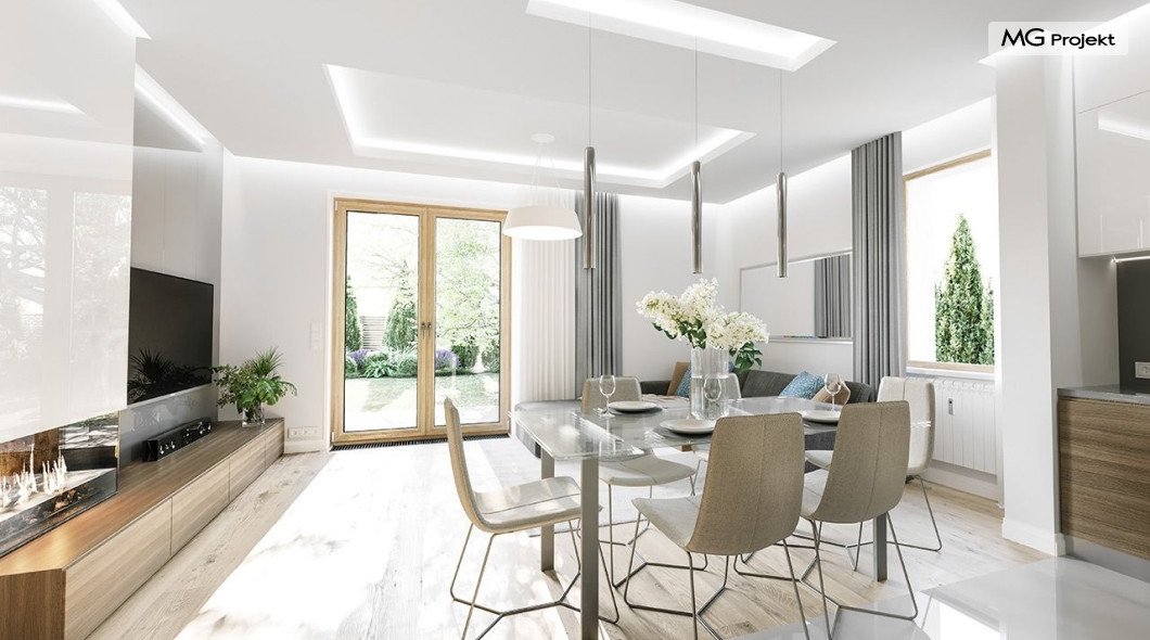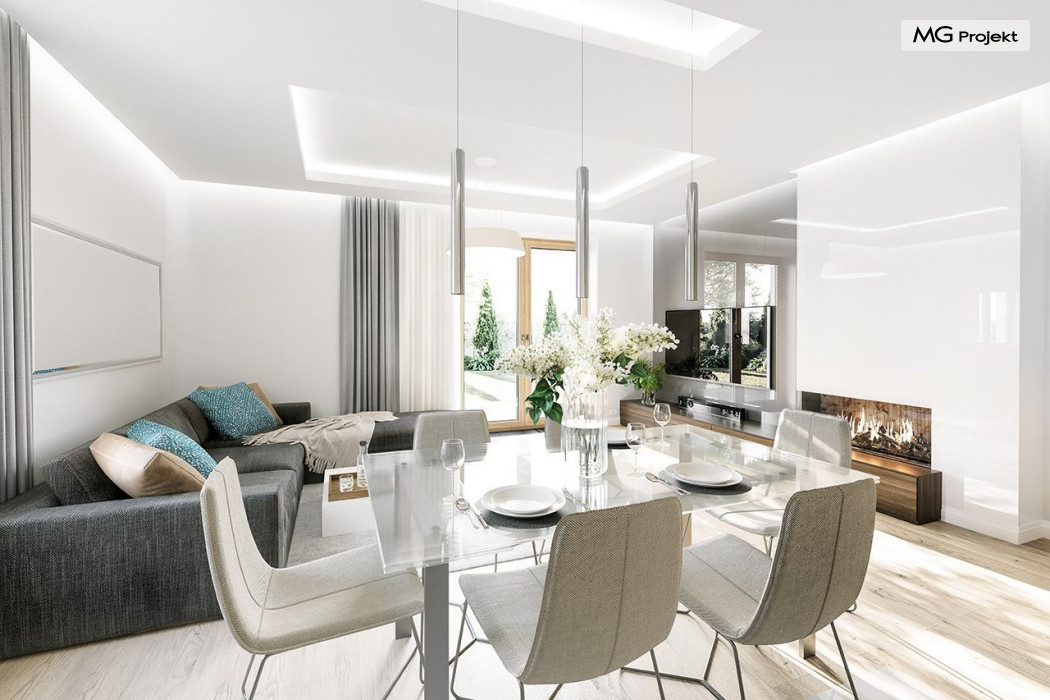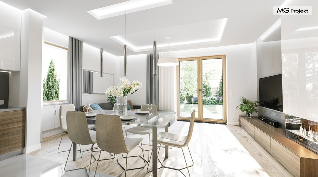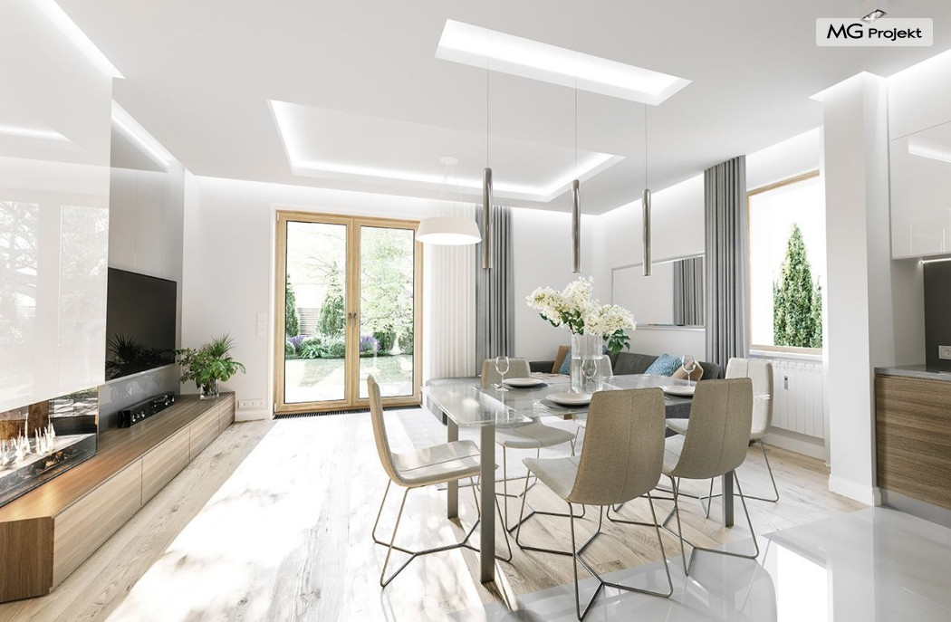 Projekt domu Zosia 8 – czyli kolejny projekt z serii „Zosia” – wersja powiększona w stosunku do bazowego projektu, zbudowaną na kwadratowym planie o wymiarach 10,7 x 10,7 m, z dodatkowym garażem. Dom ma prostą bryłę i konstrukcję, i spokojną bezpretensjonalną architekturę. Budynek dzięki swojej prostocie jest łatwy w budowie, a przez to niedrogi. Jednocześnie projekt domu Zosia 8 spełnia wymagania komfortowego mieszkania dla czteroosobowej rodziny. Dom wieńczy dwuspadowy dach o kącie 30 stopni. Nad parterem przewidziano strop drewniany belkowy i krokwiową więźbę dachową, co tworzy dużą przestrzeń strychową, na którą dostajemy się schodkami drabinkowymi. Do domu wchodzimy przez przedsionek z dużą szafą do holu i salonu. Z boku przy wejściu przechodzimy do kotłowni i dalej do garażu. Kotłownia została przewidziana w projekcie jako gazowa, ale łatwo można ją przerobić na kotłownię na paliwo stałe.Dalej mamy łazienkę, a następnie przestrzeń dzienną z salonem i aneksem kuchennym - o łącznej powierzchni około 35 m2. Z lewej strony mamy trzy sypialnie, w tym sypialnię rodziców z garderobą Z salonu wydostajemy się do ogrodu i na taras. Strych nad parterem można przeprojektować na poddasze użytkowe, dodając schody na górę. Dom jest bardzo funkcjonalny i ma rozbudowany program pomieszczeń. Nie ma tutaj zmarnowanej przestrzeni - wszystko jest praktycznie wykorzystane. Dom ma bezpretensjonalną i przyjemną dla oka stylistykę. Zdecydowaną zaletą domków z serii „Zosia” jest ich prostota i funkcjonalność, przekładające się na maksymalny efekt inwestycji uzyskany za niewielkie pieniądze. Każdą kolejną wersję domu z tej serii staramy się projektować jeszcze lepiej i sensowniej. Dom Zosia 8 jest zaprojektowany jako energooszczędny, bardzo dobrze ocieplony. Będzie dzięki temu tani w późniejszej eksploatacji. Zachęcamy do zapoznania się z pełną ofertą pracowni MG Projekt tej serii: projekt domu Zosia, projekt domu Zosia 2, projekt domu Zosia 3, projekt domu Zosia 4, projekt domu Zosia 5, projekt domu Zosia 6, projekt domu Zosia 7, projekt domu Zosia 7B. Zapraszamy!