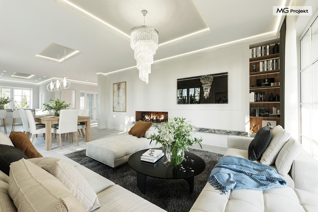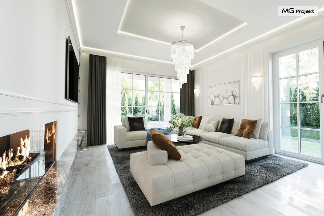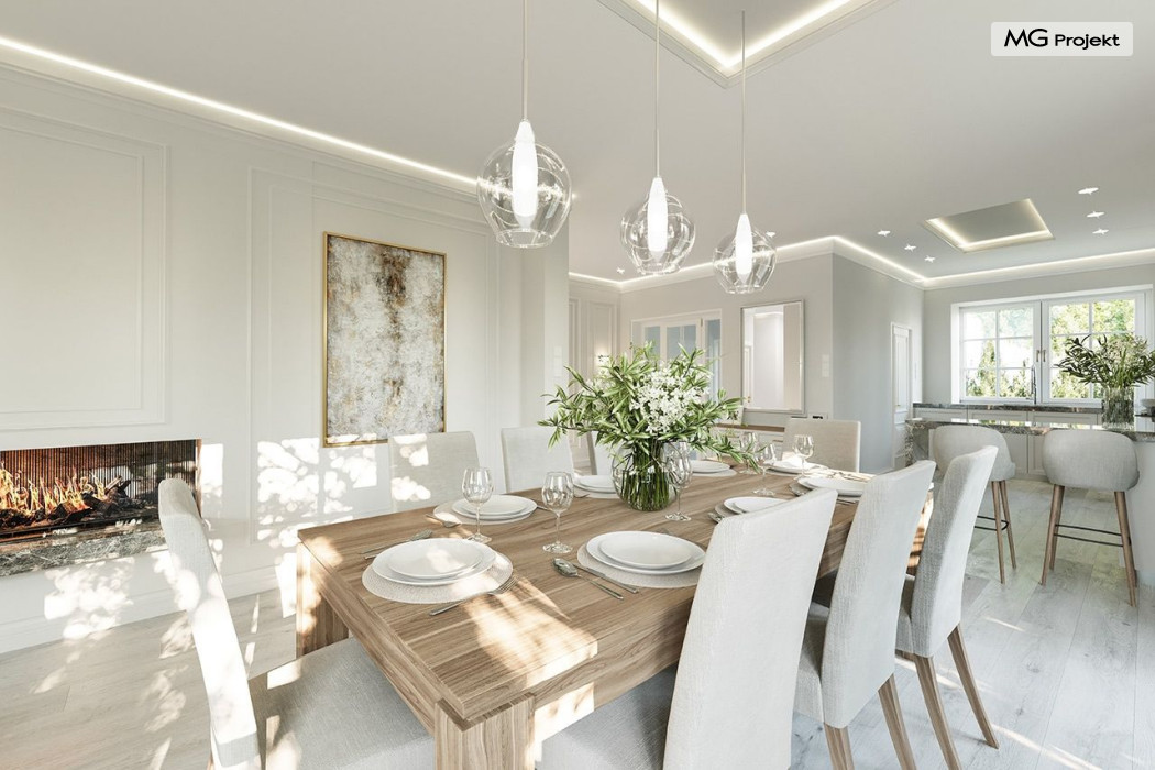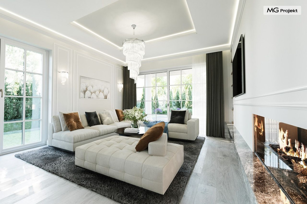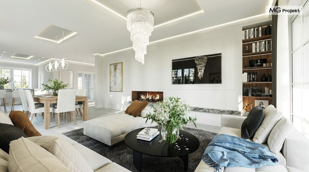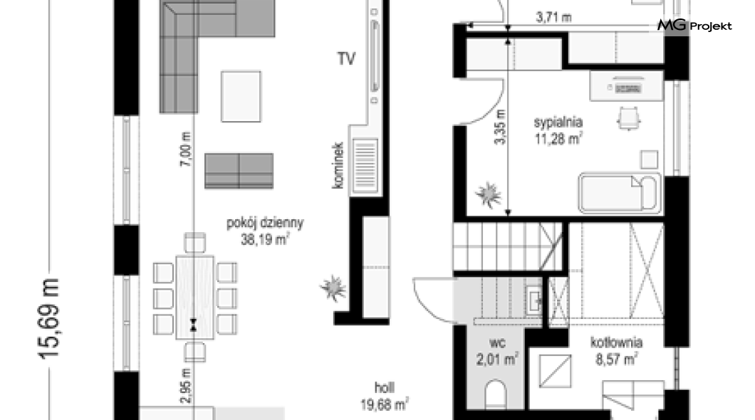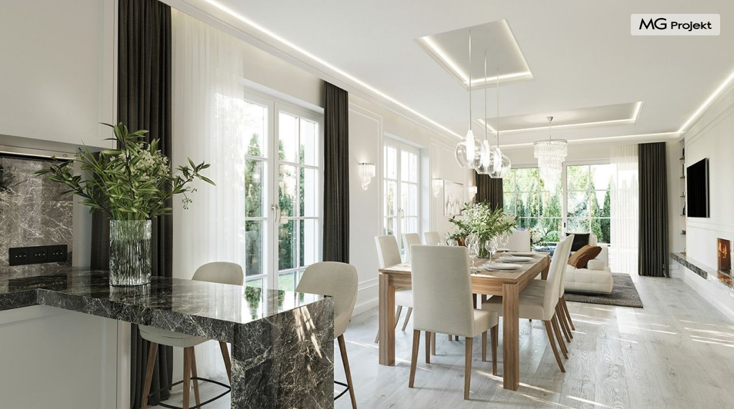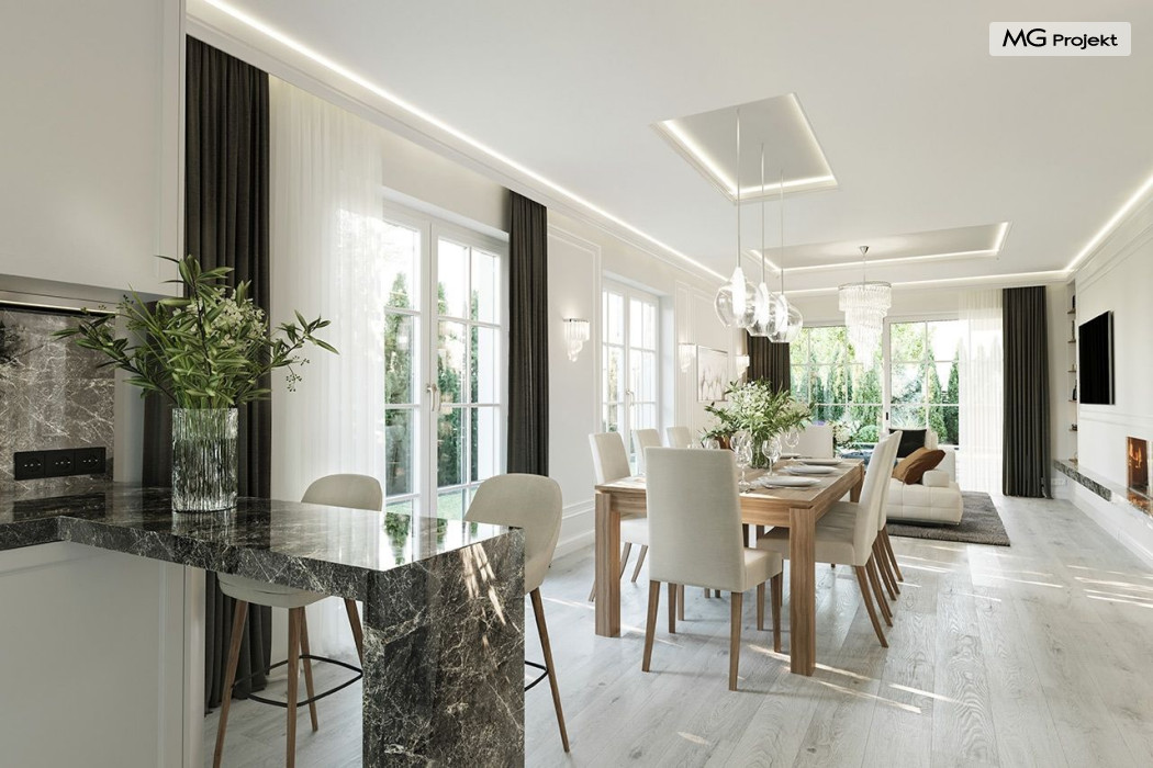 Projekt domu Dom na parkowej 7A jest kolejną propozycją projektu z cieszącej się popularnością serii „Dom na Parkowej”. Budynek zaprojektowano za planie prostokąta, jako podłużną, dość wąską bryłę przykrytą czterospadowym dachem, z dobudowaną częścią z sypialnią rodziców, a od frontu z wystającym garażem. Projekt domu Dom na parkowej 7A to idealna propozycja na wąską działkę o szerokości poniżej 19 metrów. Cała funkcja budynku mieści się na jednej kondygnacji, na parterze, dając mieszkańcom komfort i luksus życia na jednym poziomie - blisko ogrodu. Obszerny strych nad parterem można zaadaptować na dodatkowe poddasze użytkowe z pomieszczeniami, albo pozostawić go jako domowy magazyn. Architektura Domu Parkowego 7A nawiązuje do innych modeli z tej serii – stylizowanych na klasyczne podmiejskie wille, z dworkowo-rezydencyjnymi detalami. Do domu wchodzimy przez piękny przedsionek z łukowym sklepieniem, przez wejściowe drzwi z naświetlami, do przedsionka i wnętrza. Od strony ogrodowej mamy zaprojektowane ogrodowe patio przesłonięte ścianami w układzie litery „L”, z zadaszonym podcieniem nad tarasem. Wnętrze domu to jednoprzestrzenne wnętrze salonu, holu i kuchni, cześć gospodarczo –garażowa, oraz część nocna z sypialniami dzieci i rodziców oraz łazienką. Wnętrze ma przewidziane szafy i praktyczne schowki, każde z pomieszczeń jest ustawne i funkcjonalne. Zapasowa przestrzeń strychu może być dodatkowo zaadaptowana na powierzchnię użytkową i włączona do domu powiększając go znacznie. Dom ma dość prostą konstrukcję i nie powinien być trudny w realizacji. Z kolei bardzo dobre izolacje termiczne i zastosowane nowoczesne instalacje sprawią, że budynek będzie tani w późniejszym utrzymaniu i eksploatacji. Projekt domu Dom na parkowej 7A to idealna propozycja dla Inwestorów lubiących klasyczną architekturę, posiadających wąską parcelę, planujących budowę domu parterowego i dysponujących niewygórowanym budżetem. Zapraszamy do zapoznania się z pełną ofertą pracowni MG Projekt: projekt domu Dom na parkowej, projekt domu Dom na parkowej 2, projekt domu Dom na parkowej 3, projekt domu Dom na parkowej 4, projekt domu Dom na parkowej 5, projekt domu Dom na parkowej 6, projekt domu Dom na parkowej 7 B.