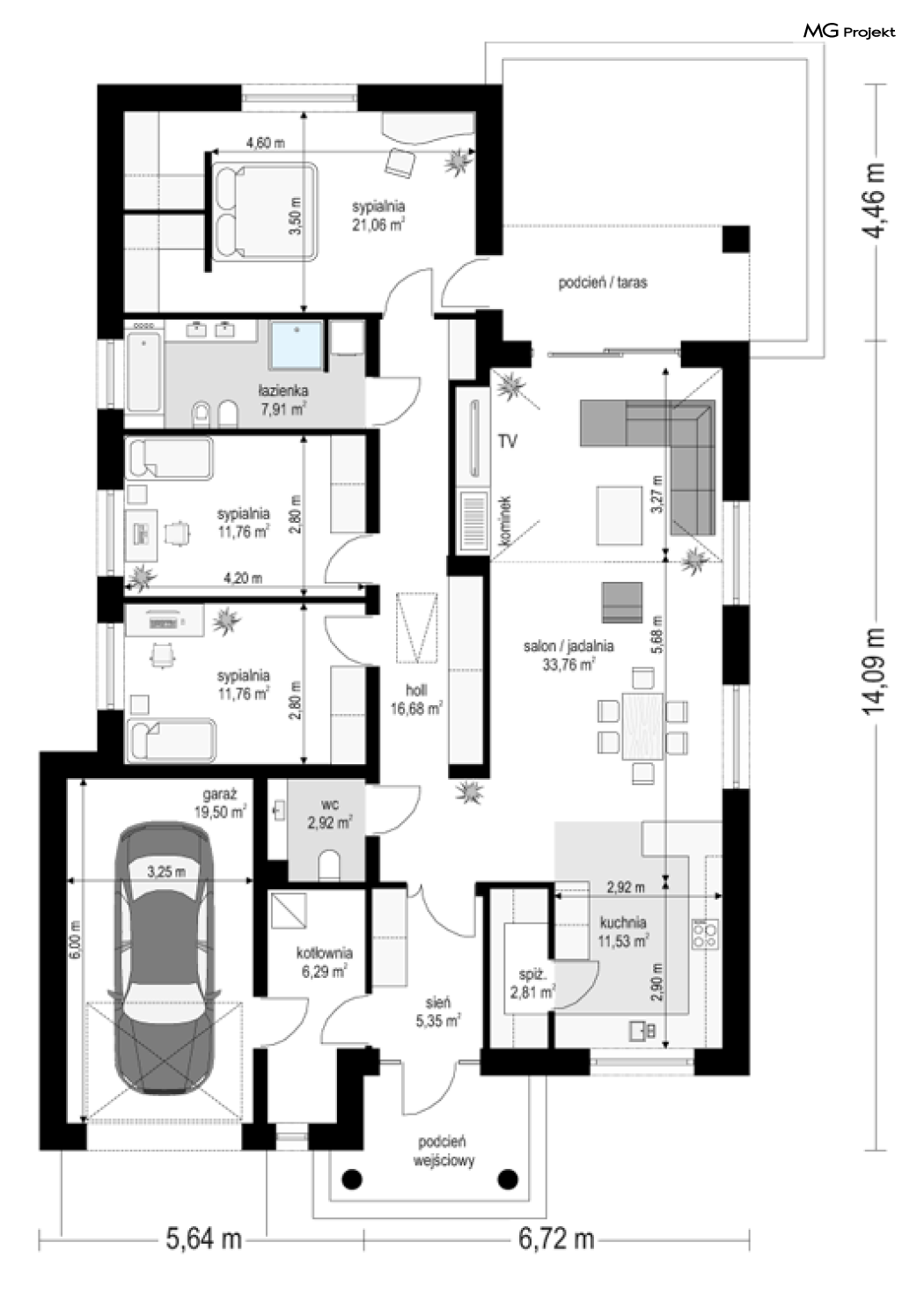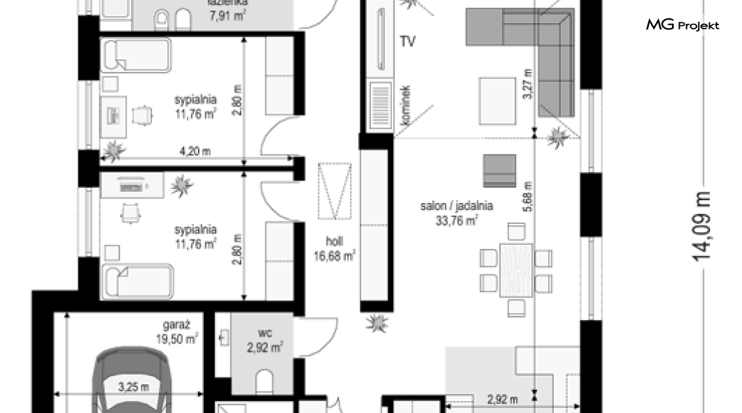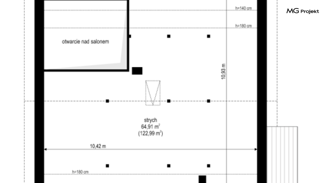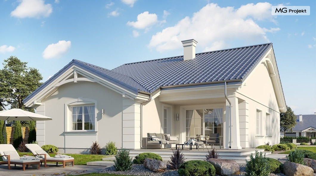 Niewielki projekt domu Parterowy Wąski został zaprojektowany jako budynek energooszczędny. Jego bardzo dobre izolacje, nowoczesne instalacje sprawią, że koszt utrzymania budynku będzie niewielki. Projekt domu Parterowy wąski powinien przypaść do gustu osobom, które chcą postawić niewielki, ale w pełni wyposażony dom jednorodzinny, w tradycyjnej architekturze, a dysponują dość wąską parcelą. Projekt domu Parterowy Wąski ma prostą w budowie bryłę - dom będzie więc łatwy do wybudowania i poradzi sobie z tym każdy wykonawca. W wersji podstawowej projekt domu Parterowy Wąski ma nad parterem strop żelbetowy monolityczny i tradycyjną więźbę dachową, ale projekt budynku występuje też w drugiej wersji - bardziej ekonomicznej - z prefabrykowaną więźbą dachową i stropem z wiązarów kratownicowych, których wykonanie z montażem pracownia MG Projekt zaleca w naszym zakładzie prefabrykacji MG Domy. Gotowy projekt domu Parterowy Wąski można zamówić także w wersji odbicia lustrzanego.