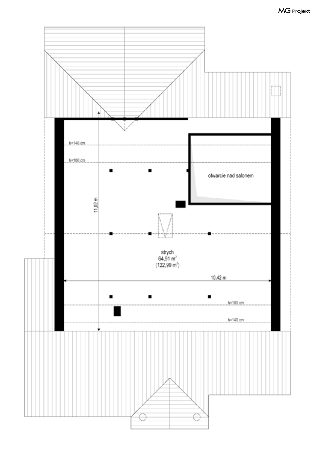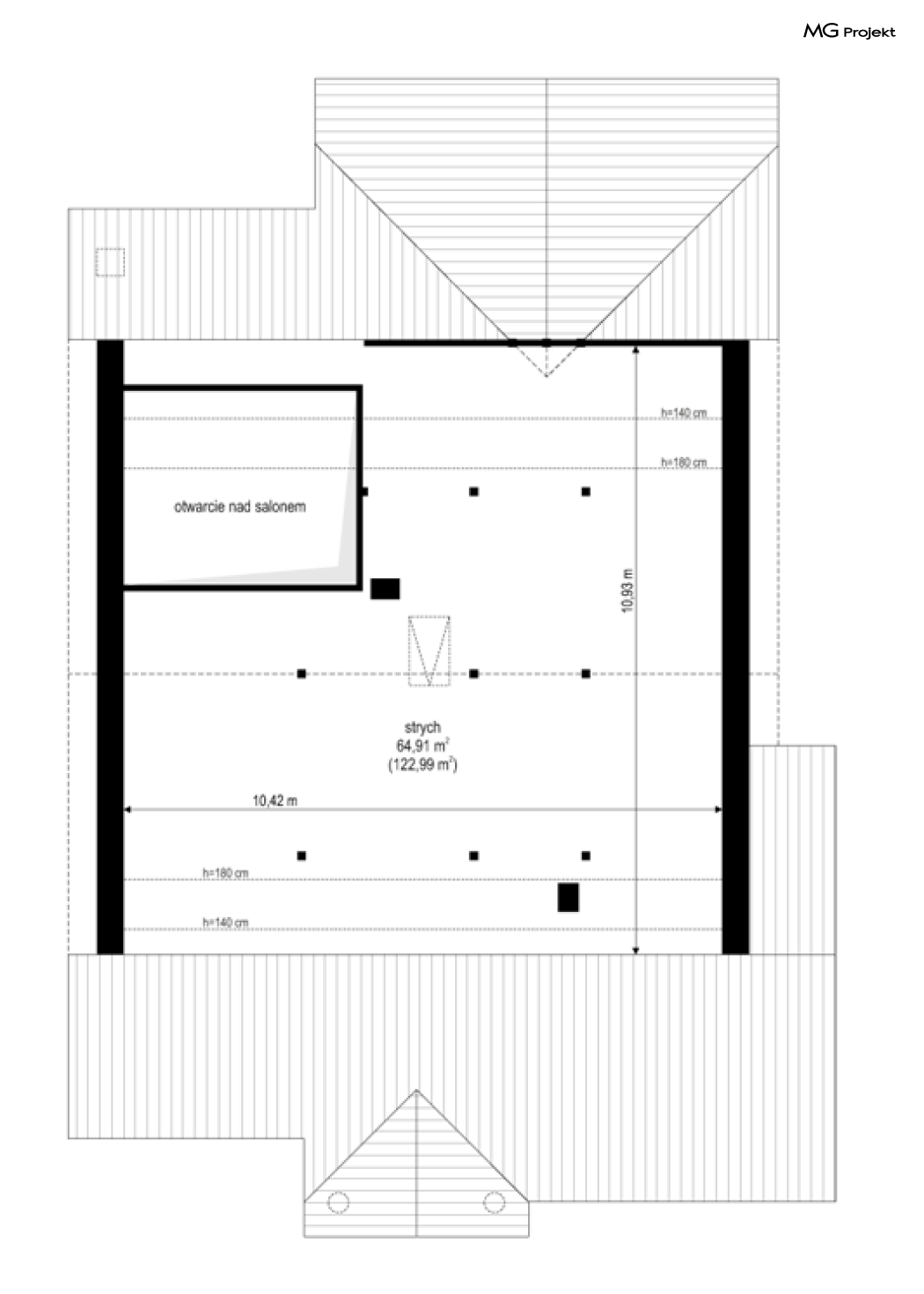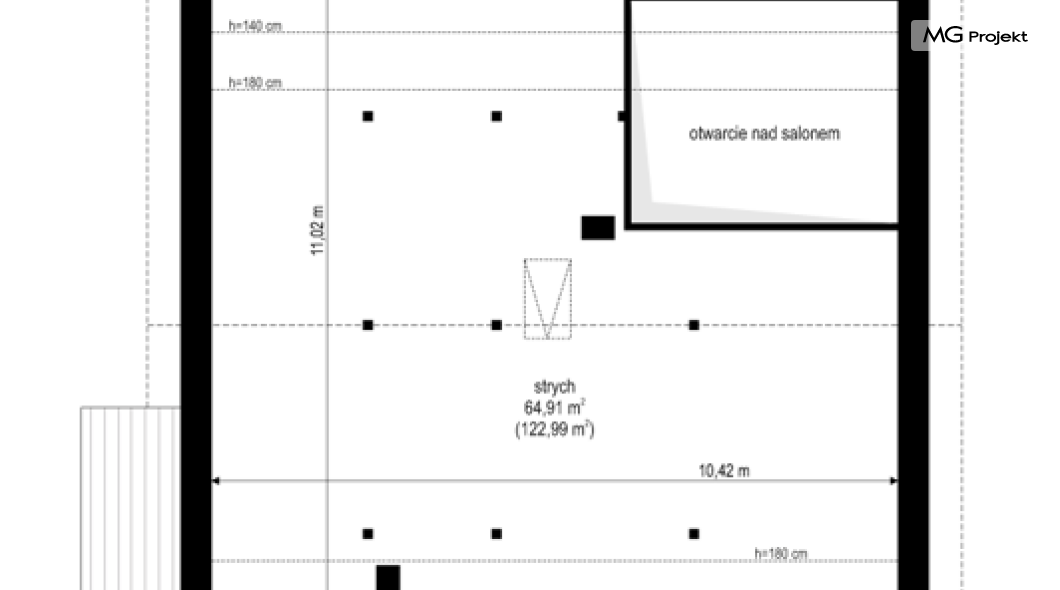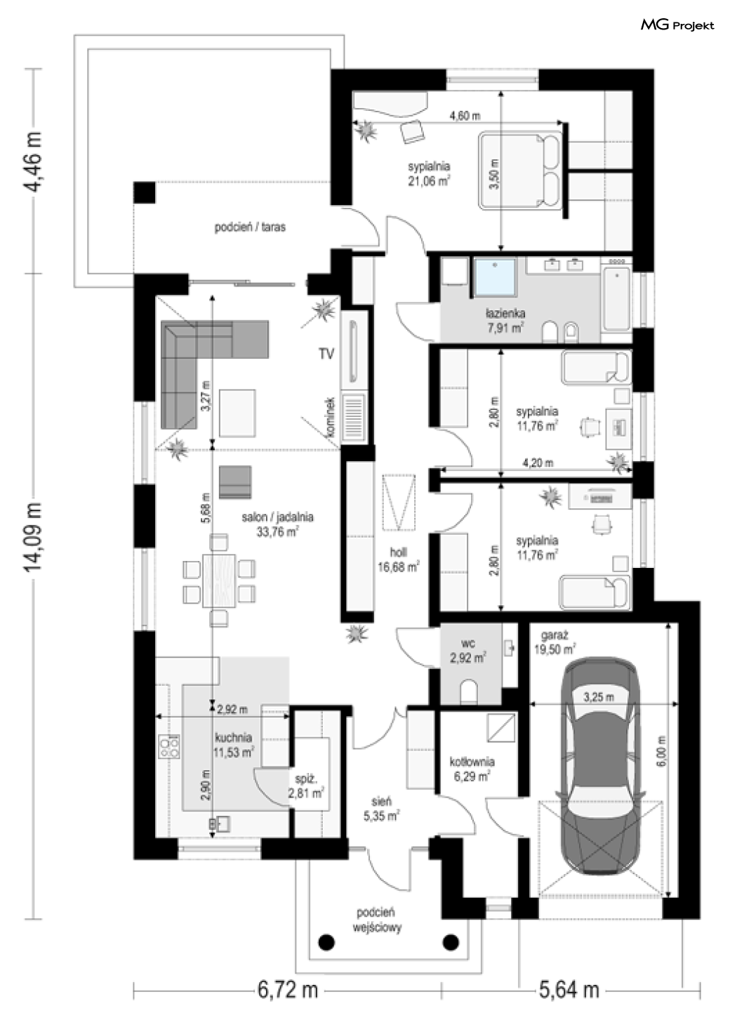 Niewielki projekt domu Parterowy Wąski został zaprojektowany jako budynek energooszczędny. Jego bardzo dobre izolacje, nowoczesne instalacje sprawią, że koszt utrzymania budynku będzie niewielki. Projekt domu Parterowy wąski powinien przypaść do gustu osobom, które chcą postawić niewielki, ale w pełni wyposażony dom jednorodzinny, w tradycyjnej architekturze, a dysponują dość wąską parcelą. Projekt domu Parterowy Wąski ma prostą w budowie bryłę - dom będzie więc łatwy do wybudowania i poradzi sobie z tym każdy wykonawca. W wersji podstawowej projekt domu Parterowy Wąski ma nad parterem strop żelbetowy monolityczny i tradycyjną więźbę dachową, ale projekt budynku występuje też w drugiej wersji - bardziej ekonomicznej - z prefabrykowaną więźbą dachową i stropem z wiązarów kratownicowych, których wykonanie z montażem pracownia MG Projekt zaleca w naszym zakładzie prefabrykacji MG Domy. Gotowy projekt domu Parterowy Wąski można zamówić także w wersji odbicia lustrzanego.