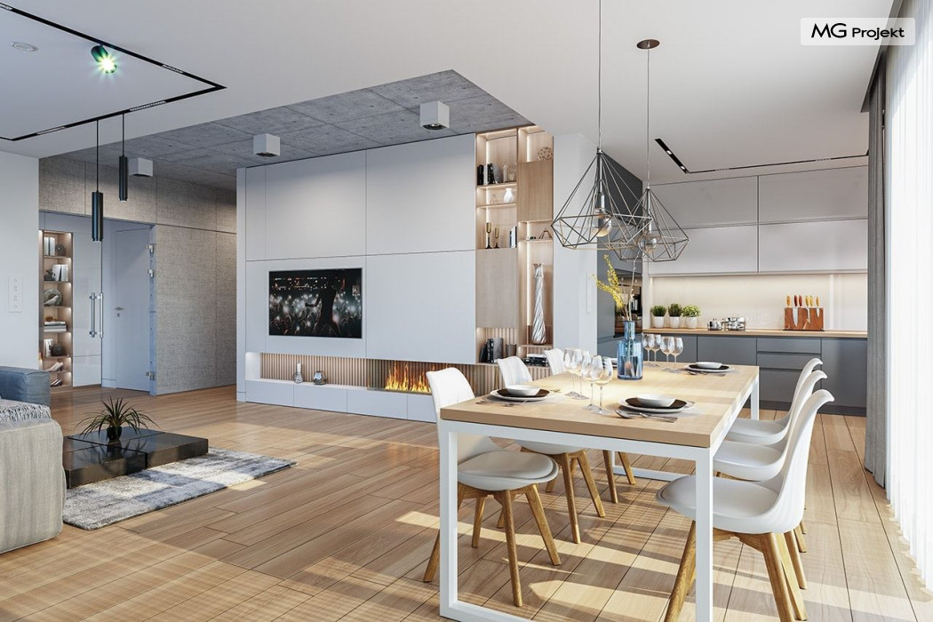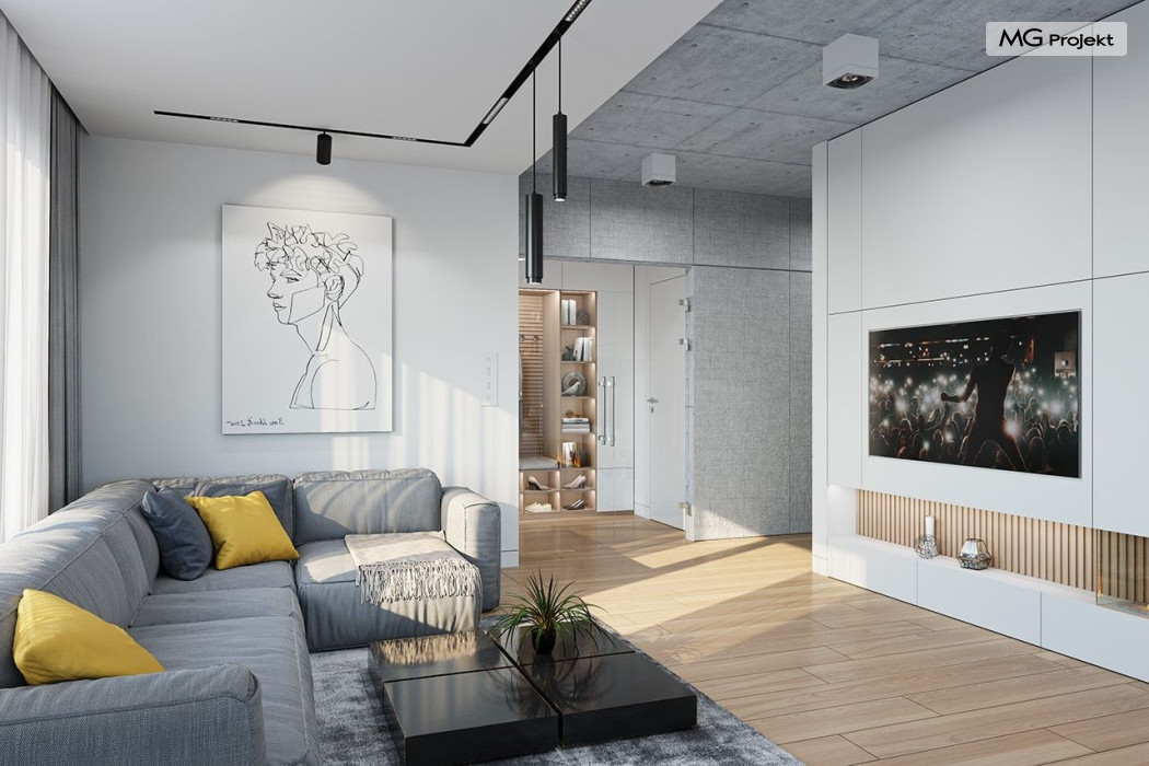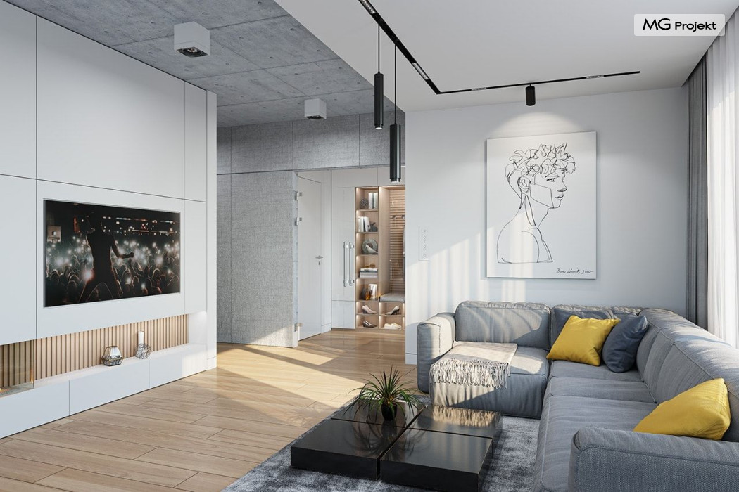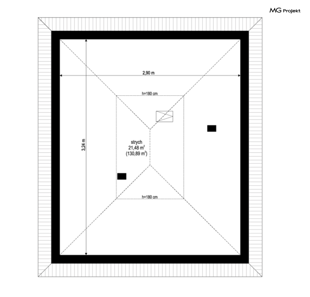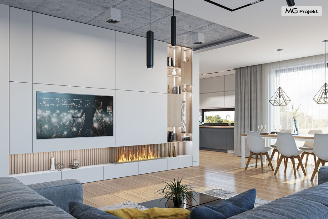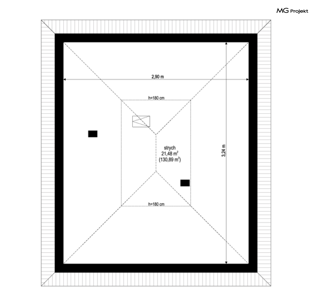 Projekt domu Wspaniały 2 to projekt z serii naszych domków „Wspaniałych”. Jest to budynek parterowy, zbudowany na planie prostokąta, przykryty czterospadowym dachem. Dom mimo swojej prostej formy i bryły, ma ciekawą nowoczesną architekturę, przełamującą monotonię i nudę wielu innych nudnych parterówek. Dzięki zastosowanym detalom i materiałom dom jest oryginalny i inny. Mimo swojej niedużej powierzchni robi wrażenie komfortowego i przestronnego. Dzięki przesunięciu części dziennej na front budynku doskonale nadaje się na działki o niekorzystnym ustawieniu do słońca - z ogrodem z boku domu lub nawet od strony drogi dojazdowej. Podcień wejściowy zlokalizowany w narożniku pozwoli ustawić budynek względem wjazdu frontem lub bokiem - dowolnie, w zależności od pomysłu na zagospodarowanie działki. Narożny podcień, podział elewacji na poziome pasy, czy płata zadaszenia nad tarasem, stanowią piękne urozmaicenie architektury budynku. Duże przeszklenia części dziennej otwierają wnętrze na otaczający ogród. Wnętrze podzielono na jednoprzestrzenną powierzchnię połączonego salonu z jadalnią i kuchnią, oraz na cześć nocną z trzema sypialniami. Sypialnia rodziców ma dwie oddzielne garderoby –jej i jego, sypialnie dziecięce mają wbudowane w ścianę szafy wnękowe. Dodatkowe pomieszczenia gospodarcze - kotłownia i pralnia dopełniają wnętrze. Centralnym miejscem części dziennej jest pięknie skomponowana ściana telewizyjno – kominkowa. Wygodna częściowo otwarta kuchnia ozdobiona jest szerokim oknem między szafkami, przez które można podziwiać ogród. Dom ma prostą konstrukcję, prostą bryłę, jest łatwy i niedrogi w budowie. We „Wspaniałym 2” przewidziano strop nad parterem ora konstrukcję dachu w postaci konstrukcji z wiązarów prefabrykowanych drewnianych, co znacznie uprasza i przyspiesza budowę i obniża jej koszt. Nad parterem znajduje się dodatkowa przestrzeń strychowa do dowolnego wykorzystania. Dom jest energooszczędny, ma bardzo dobre izolacje i zastosowane nowoczesne instalacje, dzięki czemu będzie tani w eksploatacji. „Wspaniały 2” jest odpowiedzią dla Inwestorów poszukujących projektu prostego i nowoczesnego domu, z funkcjonalnym wnętrzem i ciekawą architekturą - niedrogiego i łatwego w budowie. Zapraszamy !