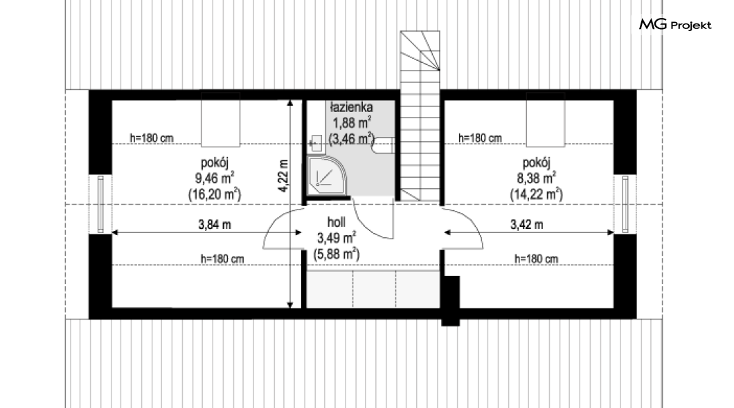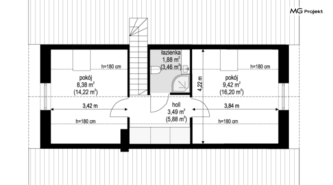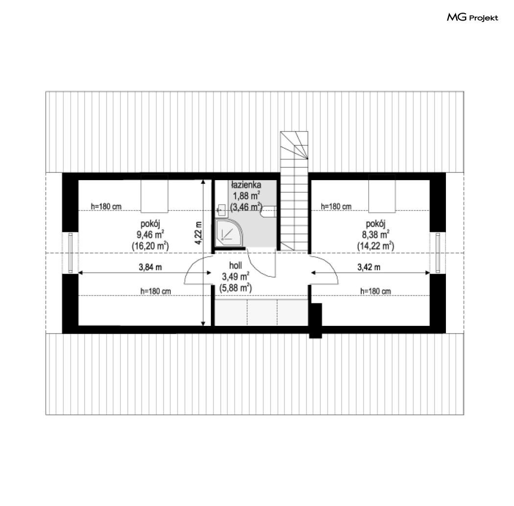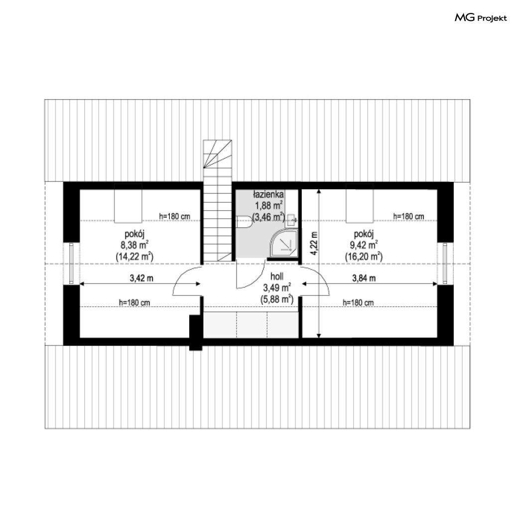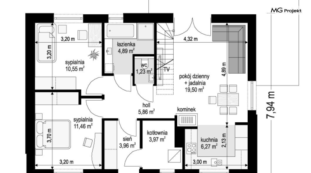 Projekt domu Kasia 5 to projekt prostego bezpretensjonalnego domu – energooszczędnego, niedrogiego w budowie i późniejszym utrzymaniu - w sam raz dla 4-5 osobowej rodziny, która chce żyć wygodnie i komfortowo, ale nie chce zadłużać się na całe życie inwestując w drogi dom. Seria domków „ Kasia ” to doskonała propozycja dla pragmatycznie myślących osób, planujących budowę łatwą, szybką i nieskomplikowaną. Budynek zaprojektowano jako parterowy, założony na planie prostokąta o wymiarach 11x8 m, przykryty dwuspadowym dachem. Zasadniczą podstawową bryłę domu można - w zależności od wybranej wersji wariantowej „Kasi” - wzbogacić o : wiatę garażową, garaż, zadaszenie nad tarasem ogrodowym, czy też strych nad parterem o funkcji magazynu, lub poddasza do zagospodarowania w razie potrzeby. Dom ma prostą i nowoczesną architekturę, a zarazem przytulny i sympatyczny wygląd - aż ma się ochotę w nim zamieszkać. Do wnętrza prowadzą nas drzwi wejściowe z naświetlem, do przedsionka z szafami. Stąd przechodzimy do przedpokoju, a dalej do salonu z kuchnią, oraz sypialni, łazienki i wc. Z przedsionka jest też dostęp do kotłowni, w której można umieścić zarówno kocioł c.o. na gaz, jak i pompę ciepła powietrze –woda, albo niewielki kocioł na paliwo stałe - w zależności od wyboru systemu ogrzewania. W salonie mamy wolną ścianę telewizyjną i kominek narożny na osobnej ścianie - obok kotłowni dzięki czemu w domu jest tylko jeden zespół kominowy. W domu zaprojektowano osobno łazienkę i wc - wygodne rzadko spotykane rozwiązanie w niewielkich domach. W łazience mamy dużo miejsca na prysznic, oraz pralkę i suszarkę. W budynku przewidziano wentylację mechaniczną z rekuperacją w standardzie. Można rozważyć dokupienie instalacji paneli fotowoltaicznych - kształt dachu na to pozwala. Konstrukcja „Kasi” jest bardzo prosta - prościej się nie da : mamy tutaj tylko ściany zewnętrzne jako konstrukcyjne, a nad ścianami wiązary dachowe, stanowiące konstrukcję stropu i dachu. Posiadamy wersję wariantową z otwartym sufitem nad salonem aż do dachu, dzięki czemu wnętrze salonu powiększa się. „Kasia” to projekt energooszczędny, z bardzo dobrymi ociepleniami przegród, z nowoczesnymi instalacjami, tani w budowie i późniejszym utrzymaniu. Zapraszamy do zapoznanie się także z projektami domków: Kasia, Kasia 2, Kasia 3, Kasia 4, Kasia 6, Kasia 7 !