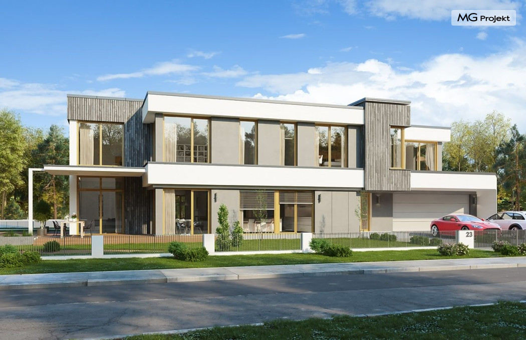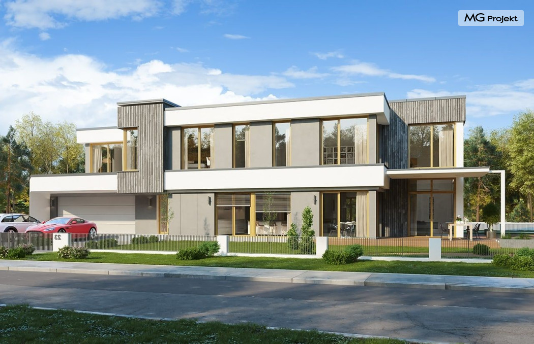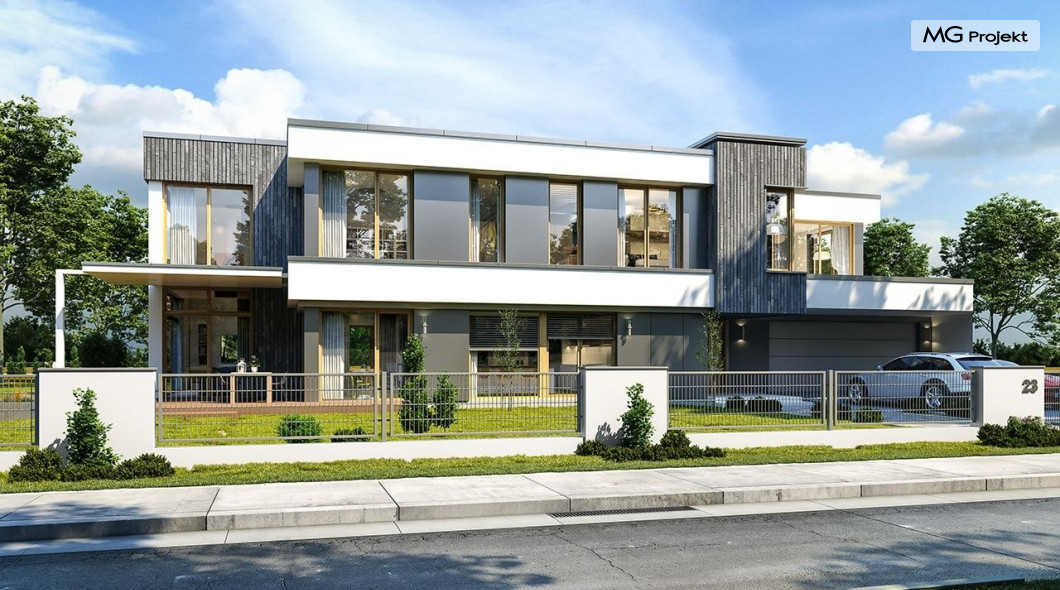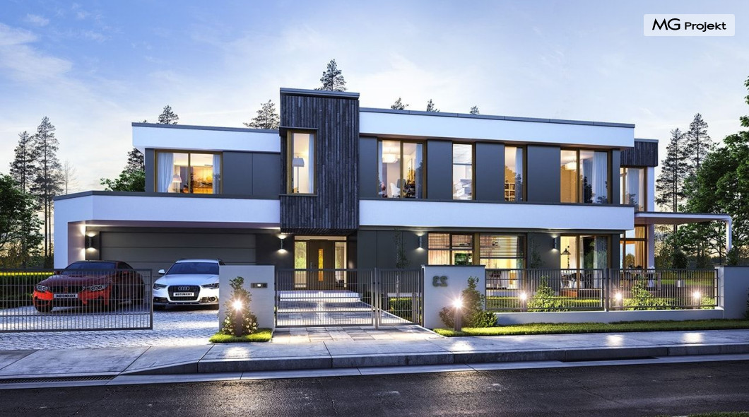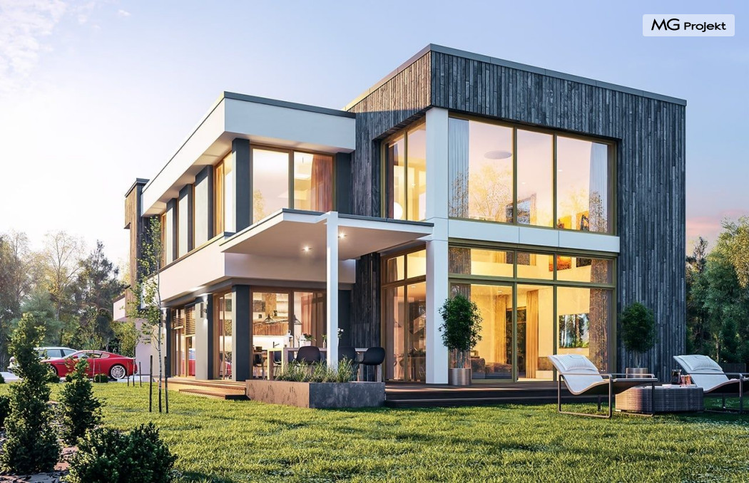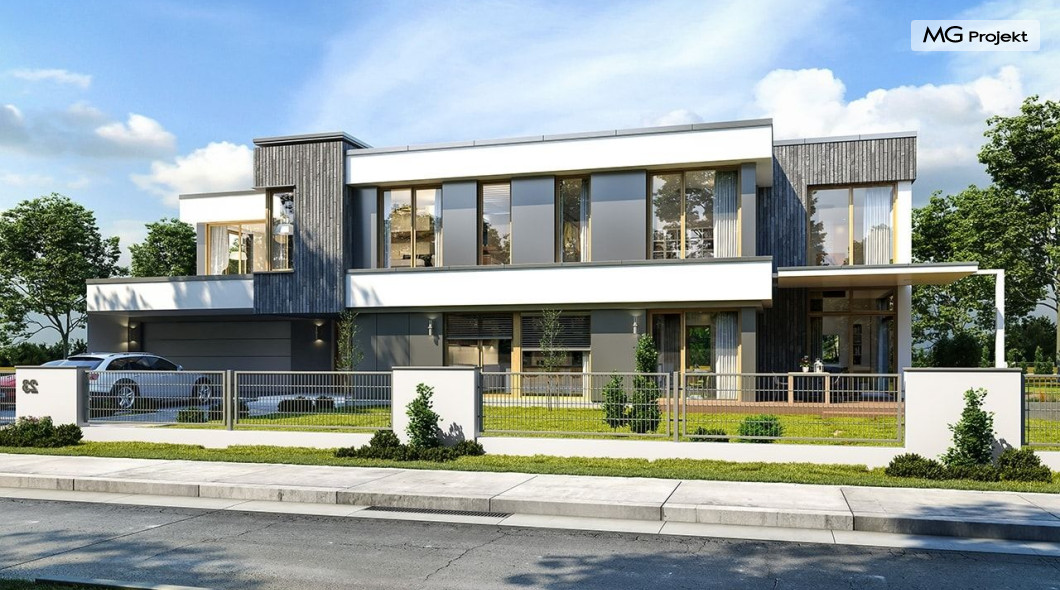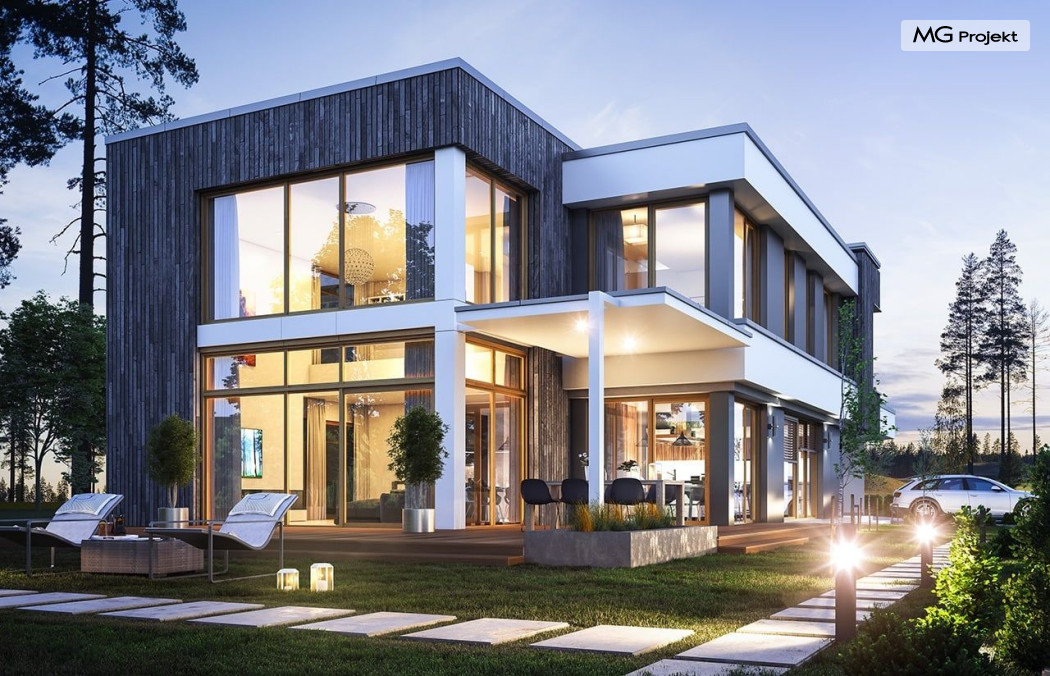 Projekt Willa Moderna jest propozycją dla osób planujących budowę dużego wygodnego domu, mających doświadczenia z mniejszymi wnętrzami i stawiających przy kolejnej inwestycji na nieudawany komfort i wygodę. Ten dom zaprojektowaliśmy dla osób wiedzących czego chcą, zdających sobie sprawę, że luksus kosztuje, ale jest nie do przecenienia. W projekcie Willa Moderna zastosowano nowoczesne rozwiązania materiałowe i technologicznie. Dom Willa Moderna jest bardzo dobrze izolowany. Zastosowano w nim energooszczędne rozwiązania instalacyjne. Projekt rezydencji Willa Moderna można zamówić w odbiciu lustrzanym, dostępne są też inne wersje domu: Willa Moderna 2.