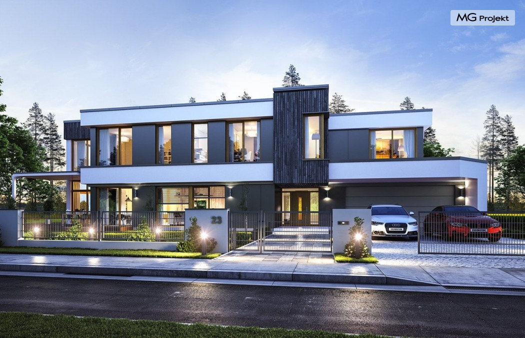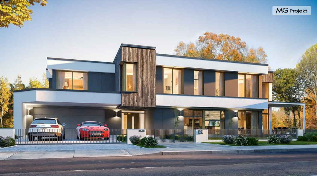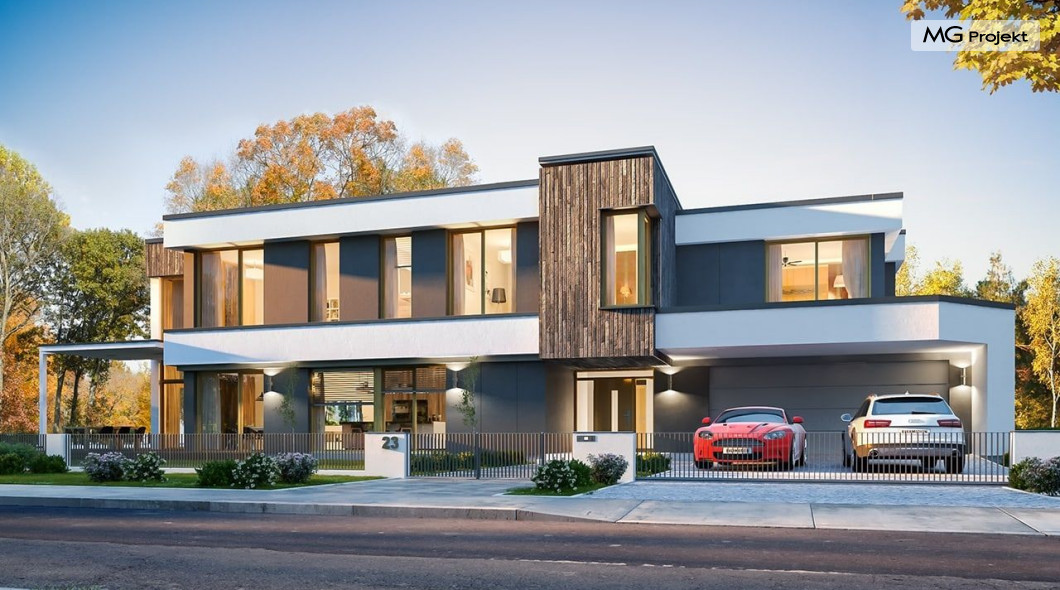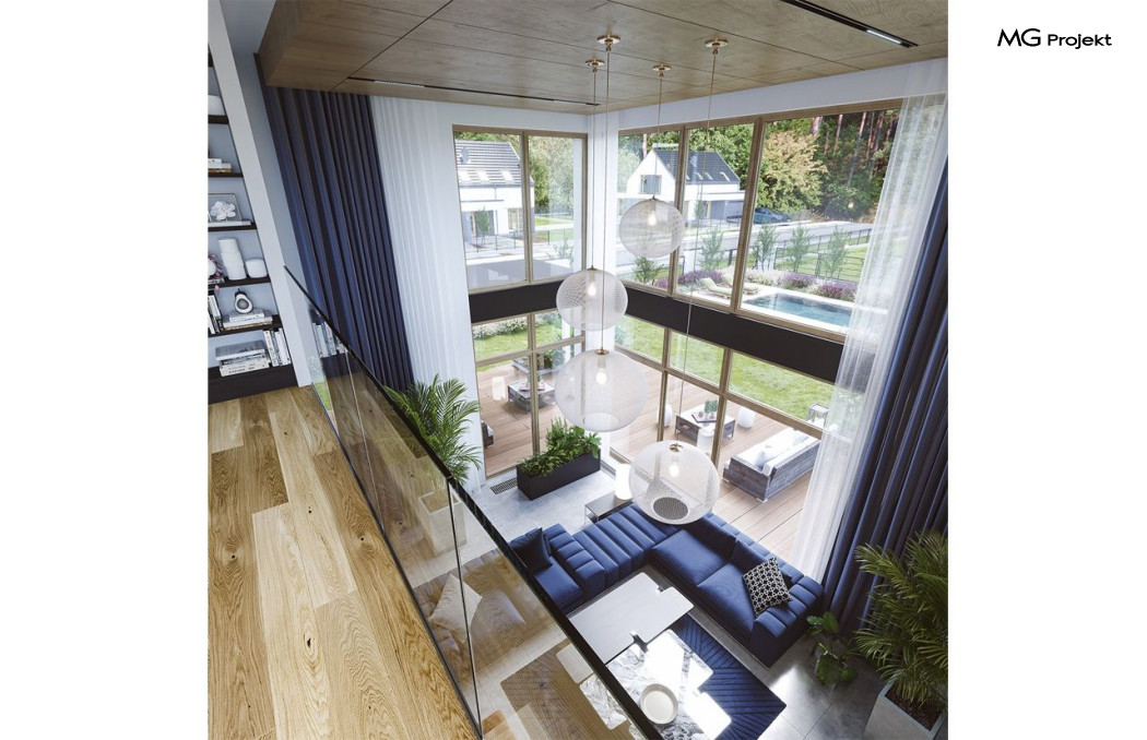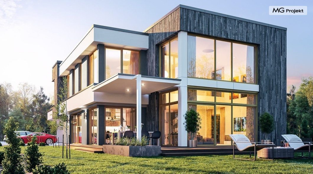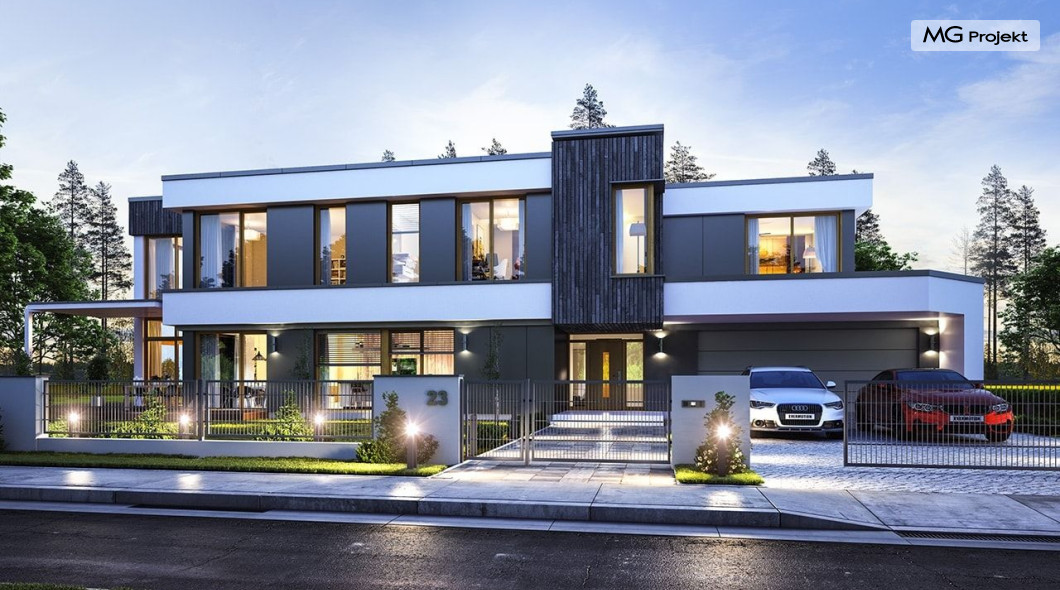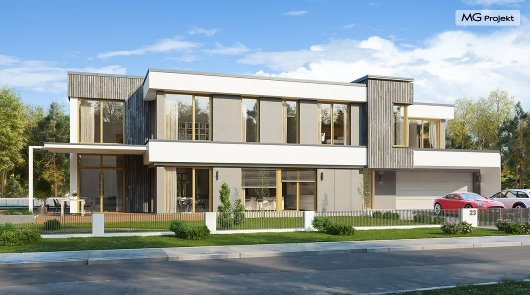 Projekt Willa Moderna jest propozycją dla osób planujących budowę dużego wygodnego domu, mających doświadczenia z mniejszymi wnętrzami i stawiających przy kolejnej inwestycji na nieudawany komfort i wygodę. Ten dom zaprojektowaliśmy dla osób wiedzących czego chcą, zdających sobie sprawę, że luksus kosztuje, ale jest nie do przecenienia. W projekcie Willa Moderna zastosowano nowoczesne rozwiązania materiałowe i technologicznie. Dom Willa Moderna jest bardzo dobrze izolowany. Zastosowano w nim energooszczędne rozwiązania instalacyjne. Projekt rezydencji Willa Moderna można zamówić w odbiciu lustrzanym, dostępne są też inne wersje domu: Willa Moderna 2.