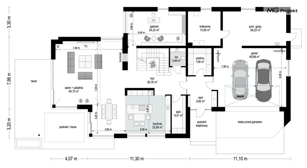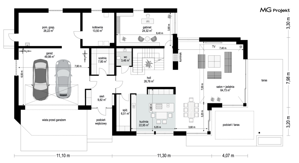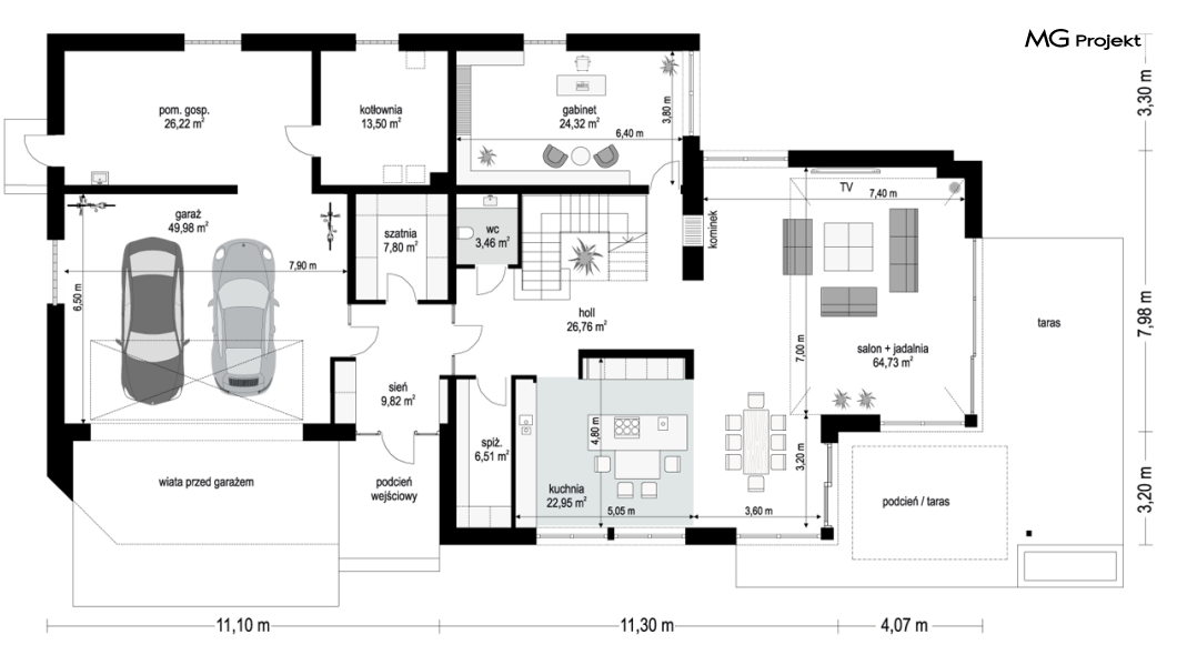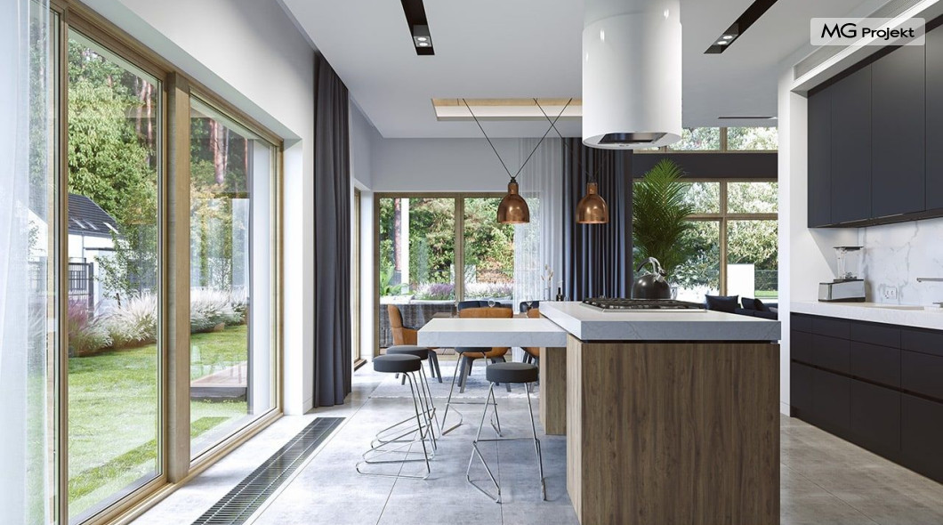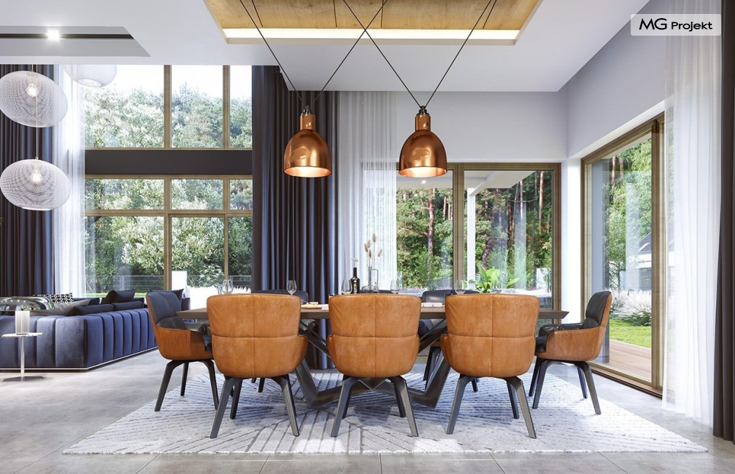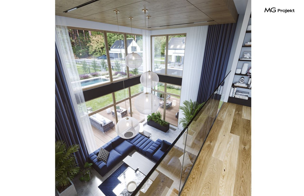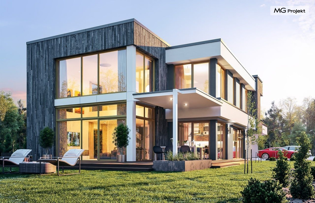 Projekt Willa Moderna jest propozycją dla osób planujących budowę dużego wygodnego domu, mających doświadczenia z mniejszymi wnętrzami i stawiających przy kolejnej inwestycji na nieudawany komfort i wygodę. Ten dom zaprojektowaliśmy dla osób wiedzących czego chcą, zdających sobie sprawę, że luksus kosztuje, ale jest nie do przecenienia. W projekcie Willa Moderna zastosowano nowoczesne rozwiązania materiałowe i technologicznie. Dom Willa Moderna jest bardzo dobrze izolowany. Zastosowano w nim energooszczędne rozwiązania instalacyjne. Projekt rezydencji Willa Moderna można zamówić w odbiciu lustrzanym, dostępne są też inne wersje domu: Willa Moderna 2.