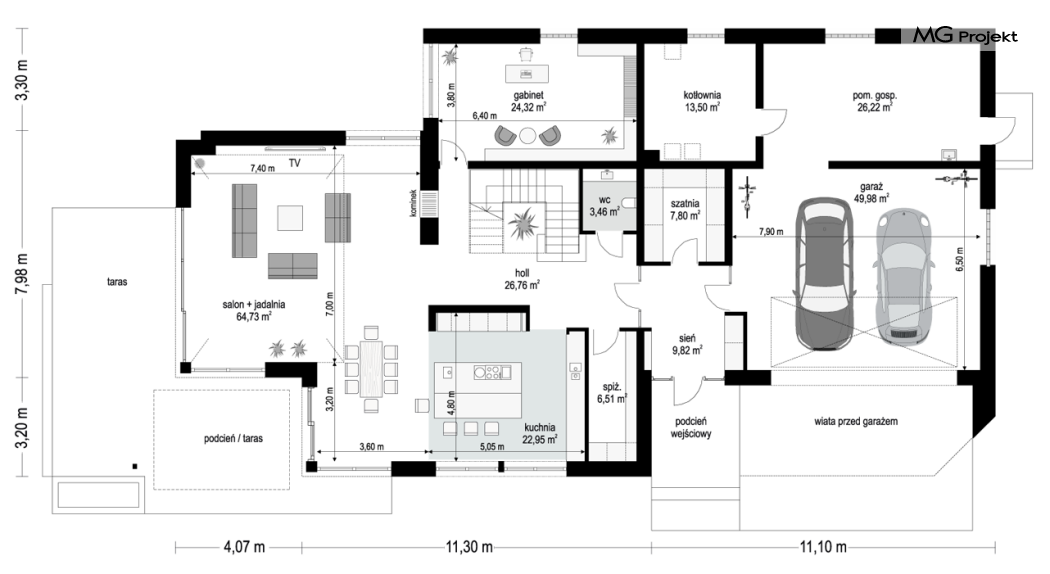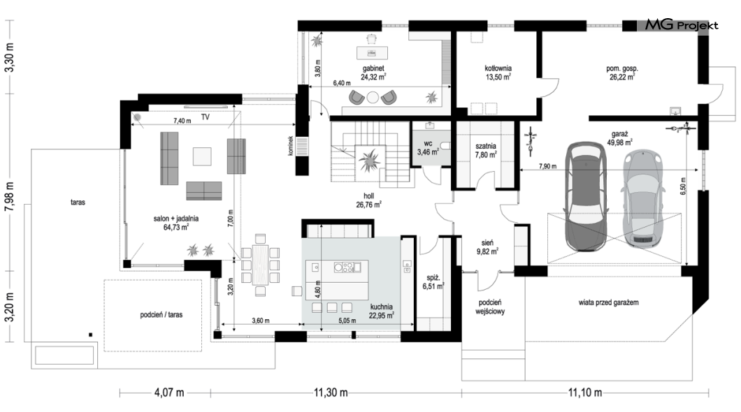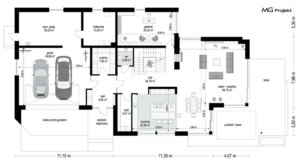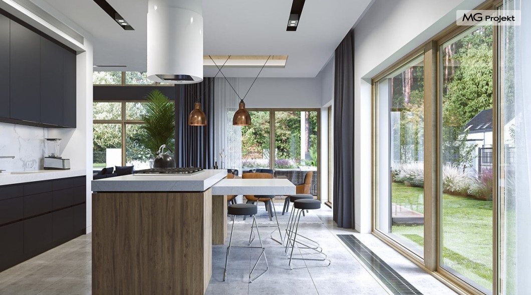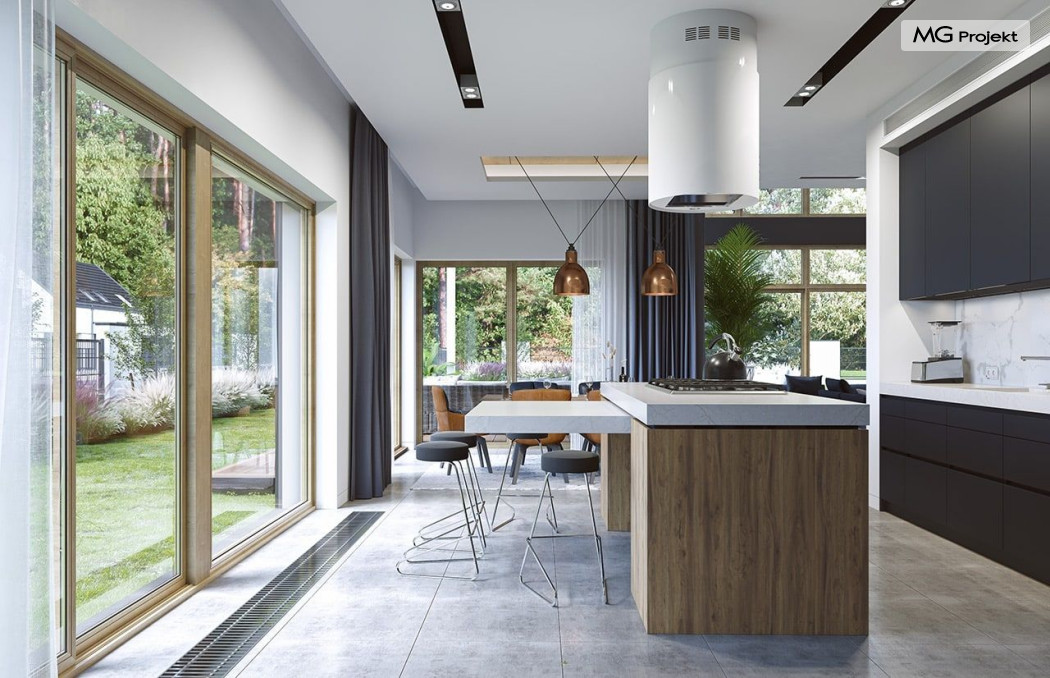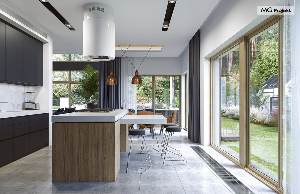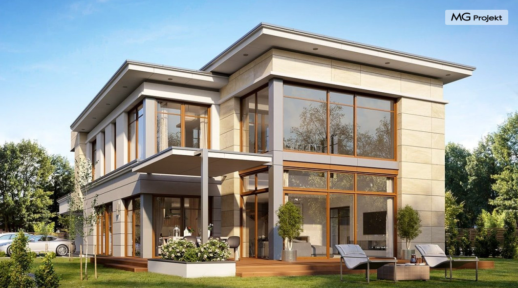 Projekt domu Willa Moderna 2 to propozycja dla Klientów, dysponujących środkami, gustem i wizją posiadania prawdziwej miejskiej willi. Projekt Willa Moderna 2 jest budynkiem dla osób planujących budowę dużego, wygodnego domu, mających już doświadczenia z mniejszymi wnętrzami i stawiających tym razem, przy kolejnej budowie na prawdziwy komfort i wygodę, gotowych zainwestować w komfortową oprawę swojego domostwa do codziennego życia. W projekcie Willa Moderna 2 zastosowano nowoczesne rozwiązania materiałowe i technologicznie, czyniące budynek energooszczędnym i łatwym w przyszłej eksploatacji. Projekt Willa Moderna 2 można zamówić również w wersji odbicia lustrzanego z garażem po lewej stronie. Zapraszamy także do zapoznania się z projektem Willa Moderna 1.