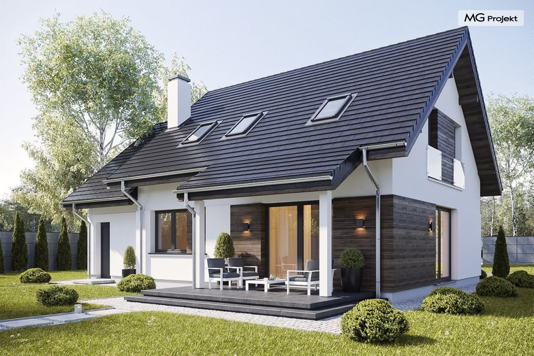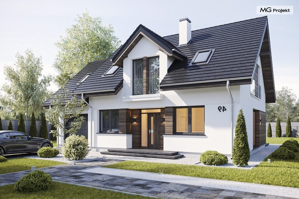 Projekt domu Narcyz 3 to projekt parterowy z poddaszem użytkowym z serii domów Narcyz. Ideą jaka przyświecała stworzeniu projektów z tej serii było uzyskanie prawdziwego domu - o takim kształcie i funkcji, które większość z nas automatycznie ma w głowie wyobrażając sobie dom. Takie domy rysują nasze dzieci, takie domy są głęboko w naszej pamięci. Postanowiliśmy połączyć tradycyjną formę budynku z dwuspadowym dachem z nowoczesnymi rozwiązaniami funkcjonalno - materiałowymi, tak aby jego architektura była maksymalnie ponadczasowa, ładnie się starzała, a jednocześnie żeby nawiązywała do obecnie obowiązującej mody.