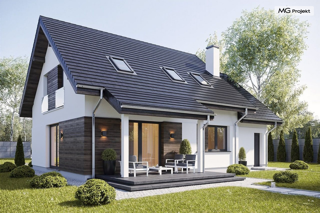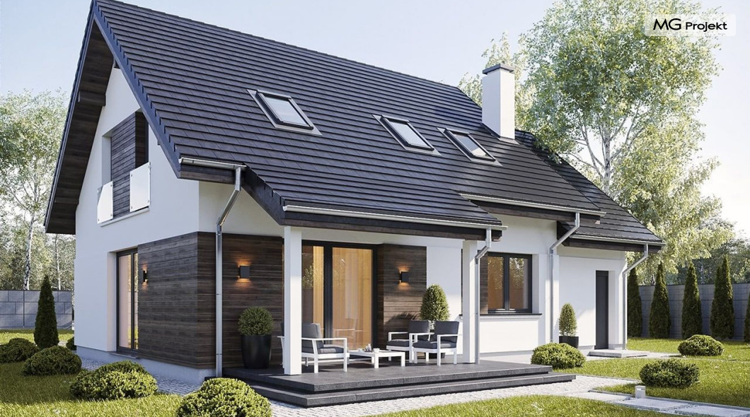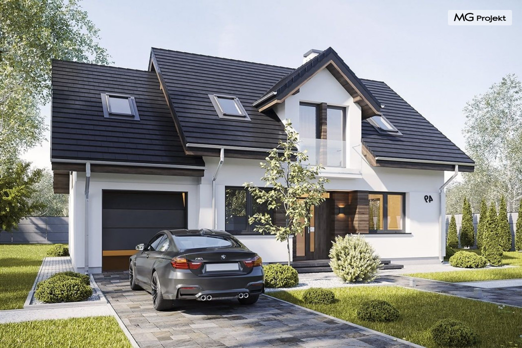 Projekt Narcyz 3 ma zwartą prostą bryłę, budynek nie jest trudny w budowie, a nowoczesne rozwiązania instalacyjne i bardzo dobre izolacje sprawiają, że jest budynkiem energooszczędnym i tanim w utrzymaniu. Koszt budowy domu to 190014 zł za stan surowy zamknięty. Projekt domku Narcyz 3 to idealna propozycja dla osób, które nie chcą ryzykować, chcą postawić na sprawdzoną od wielu lat architekturę, bez udziwnień i potencjalnych kłopotów, tak aby mieć kontrolę nad procesem budowy, a przede wszystkim nad kosztami budowy. Projekt domu Narcyz 3 to po prostu śliczny zgrabny dom jednorodzinny, który doskonale wpasuje się w każde otoczenie.