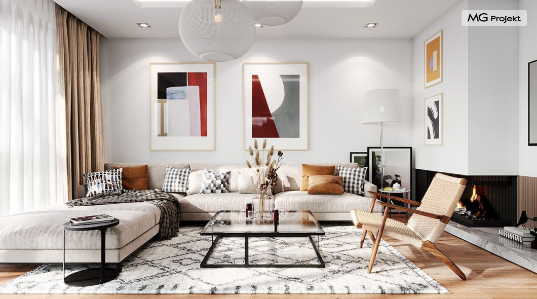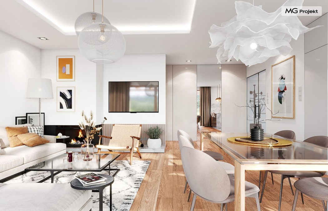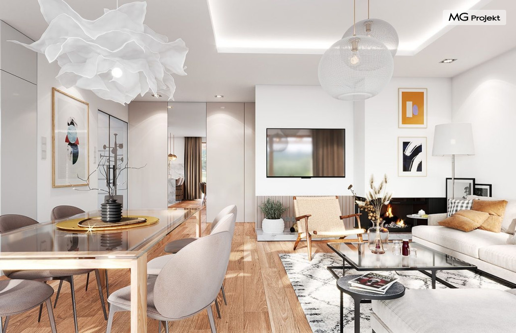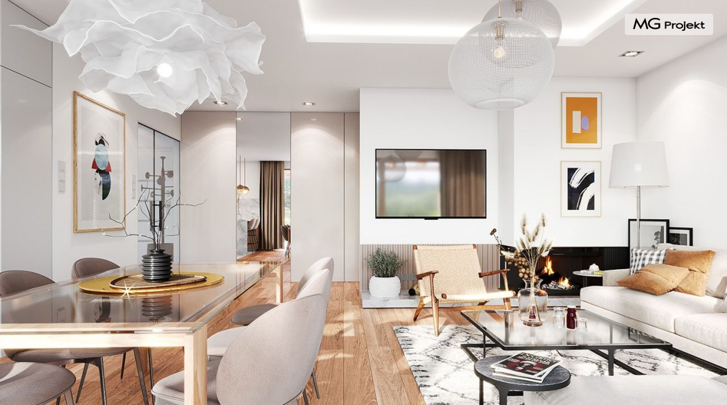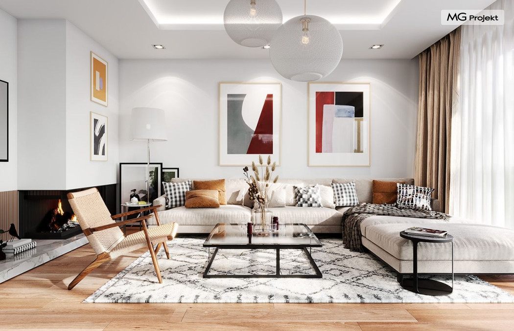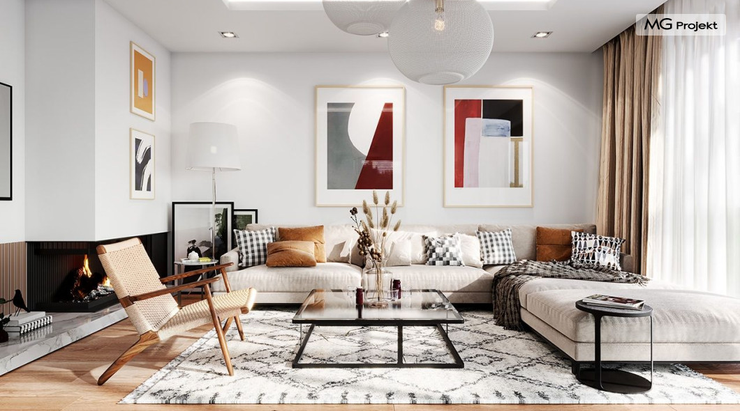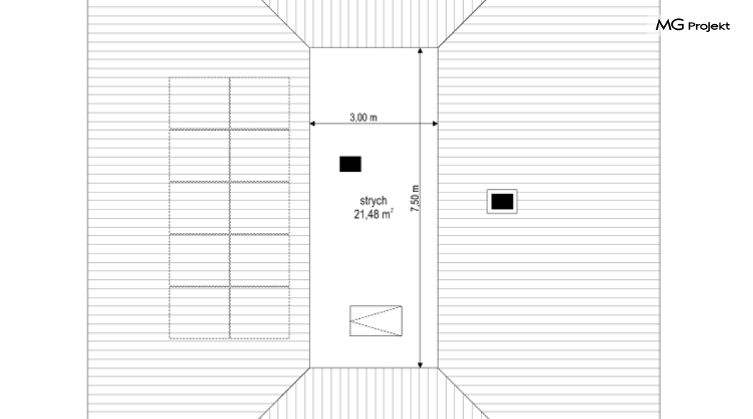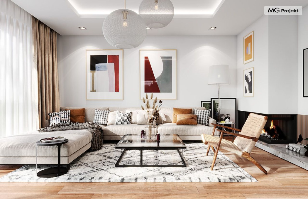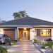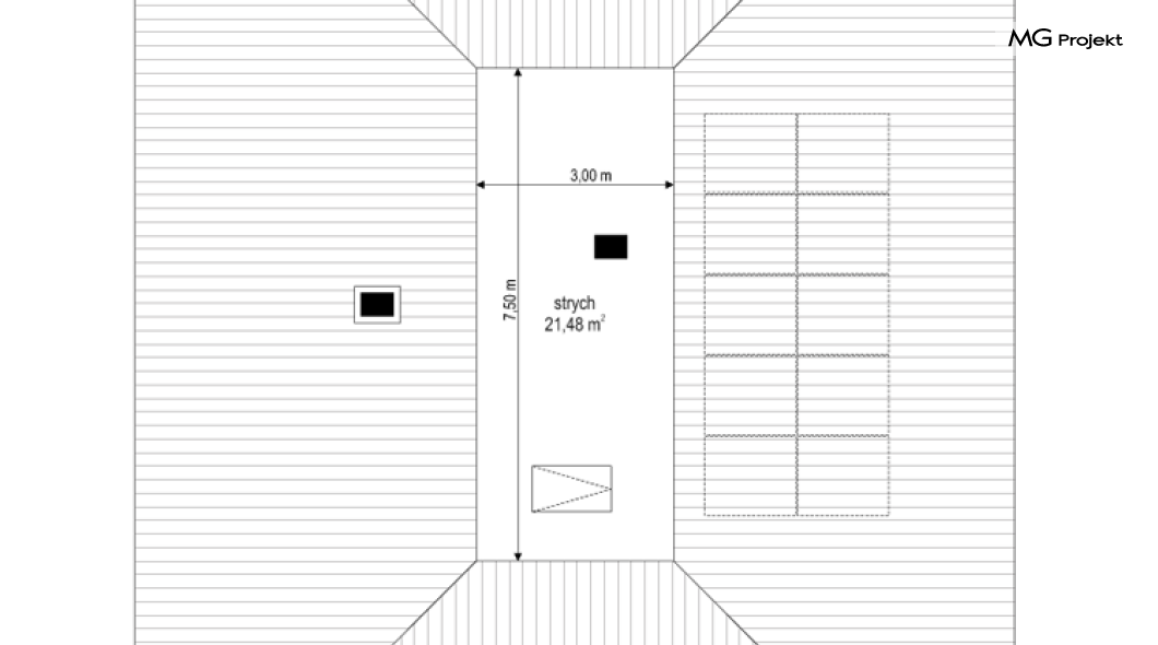 Projekt domu Dom na Wygodnej to projekt idealnej „parterówki” dla 4-5 osobowej rodziny. Dom rzeczywiście jest zaprojektowany jako bardzo wygodna komfortowa mini-willa dla Inwestorów marzących o luksusach życia na jednym poziomie - bez biegania po schodach. To propozycja dla Klientów dysponujących parcelą z ogrodem wychodzącym na stronę boczną ( na przykład w przypadku działek z niekorzystnym usytuowaniem względem stron świata i słońca ). Budynek został zaprojektowany na planie prostokąta i jest przykryty czterospadowym symetrycznym dachem krytym dachówką.Architektura domu jest spokojna i stonowana, choć dzięki właściwym proporcjom i ciekawym detalom dom ma w sobie coś co przyciąga wzrok i interesuje. Elewację frontową budynku ozdabia reprezentacyjne wejście, zaakcentowane nowoczesnym daszkiem i pięknymi szerokimi drzwiami z naświetlem, osadzonymi w kontrastującej ścianie podcienia. Elewację wychodzącą na ogród ozdabiają szerokie piękne przeszklenia salonu z przesuwnymi okiennicami-żaluzjami, oraz zadaszenie pergoli. Całość budynku wieńczy proporcjonalny dach kryjący w sobie dodatkową przestrzeń strychową do wykorzystania dla domowników. Wnętrze domu podzielone zostało tradycyjnie na część dzienną, do której dostajemy się wprost z wygodnego przedsionka z szatnią, następnie część nocną z czterema pokojami sypialnymi, oraz część gospodarczą z garażem i kotłownią. Część dzienna to salon, z wygodną kuchnią i holem, otwarty szeroko na taras i ogród, z wydzielonym narożnikiem wypoczynkowym, ze ścianą kominkowo – telewizyjną. W części nocnej w bazowej wersji projektu przewidziano cztery pokoje, ale można tą część urządzić w dowolny sposób - na przykład zmniejszając ilość sypialni do trzech i dodając dodatkową garderobę i extra łazienkę. Wnętrze domu stosownie do skali i powierzchni budynku jest bardzo funkcjonalne i komfortowe - jak na Dom na Wygodnej przystało. Budynek ma prostą bryłę i konstrukcję – będzie łatwy i szybki w budowie. Zastosowane bardzo dobre izolacje i nowoczesne instalacje dają w efekcie budynek energooszczędny - tani w późniejszej eksploatacji. Dom na Wygodnej to doskonała propozycja dla Inwestorów planujących budowę wygodnego parterowego domu o stonowanej nowoczesnej architekturze.