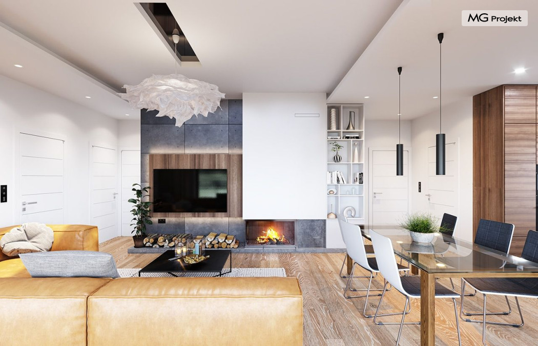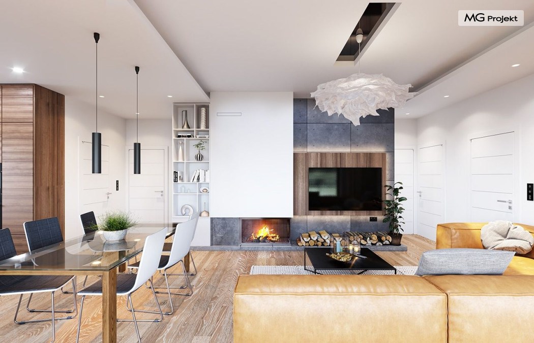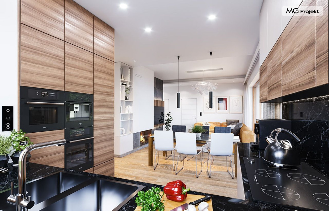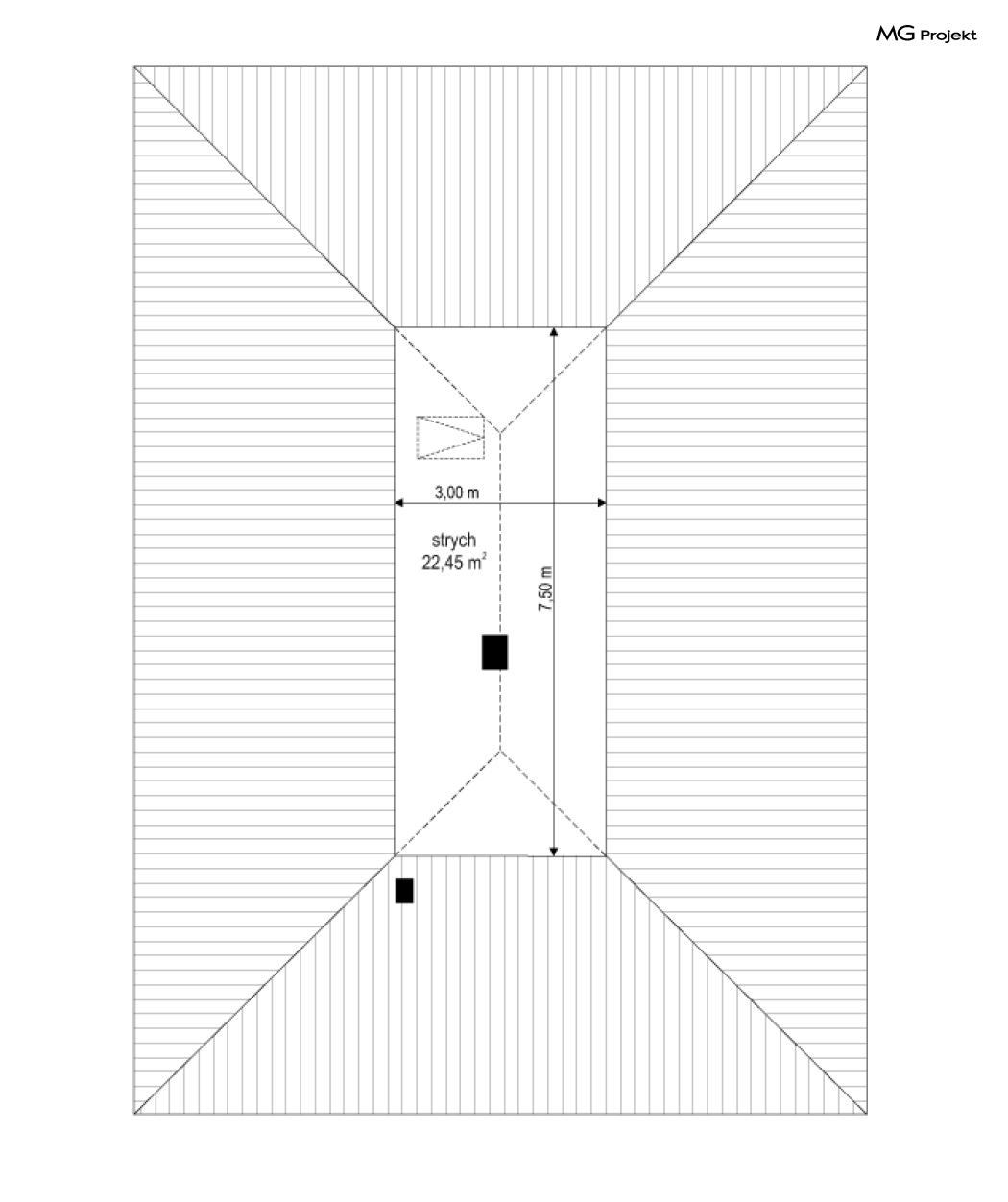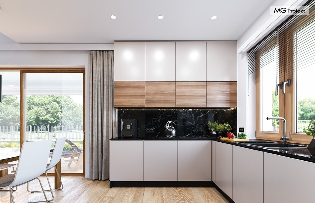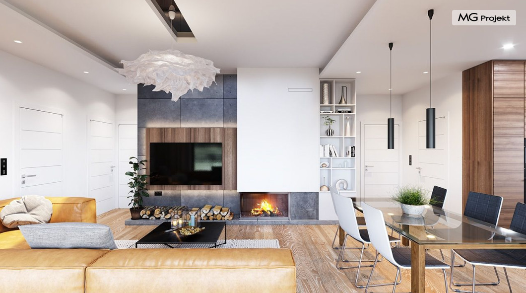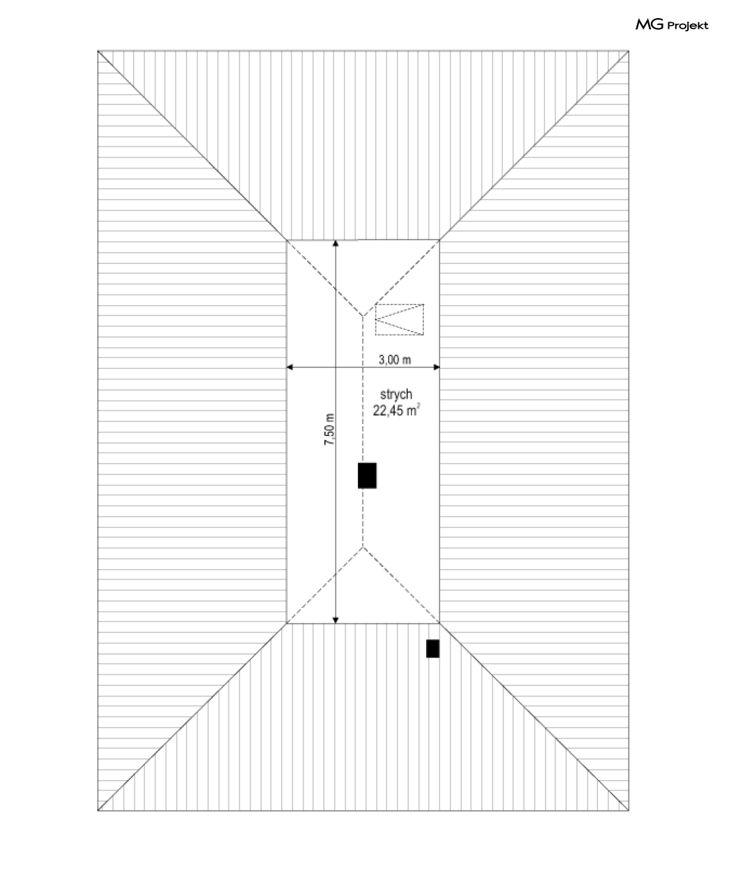Projekt domu Dom na Przytulnej 2 to kolejna propozycja projektu niewielkiego parterowego domu z serii „przytulnych” - tym razem budynek dla 4-osobowej rodziny, na prostokątnym planie, przykryty czterospadowym dachem krytym dachówką. Cały program użytkowy domu mieści się na jednej kondygnacji. Głównym założeniem projektu jest funkcjonalność budynku, oraz jego późniejsze bezproblemowa użytkowanie. Architektura budynku jest nowoczesna, z atrakcyjną kolorystyką i zastosowanymi nowoczesnymi materiałami. Oszczędny detal, brak zbędnych ozdób i udziwnień, daje w efekcie prosty i elegancji wygląd zewnętrzny domu. Elewacja frontowa urozmaicona została reprezentacyjnym wejściem z zadaszeniem, z drzwiami z bocznym naświetlem i okładziną nawiązującą do podziałów na skrzydle drzwi. Od strony elewacji ogrodowej dominują szerokie drzwi balkonowe łączące salon z tarasem, oraz konstrukcja pergoli z odsuwaną markizą – zadaszeniem ( tarasolą). Wnętrze domu zaprojektowano z podziałem na otwartą przestrzeń dzienną, z salonem i kuchnią, oraz część z trzema sypialniami i łazienką. Przy strefie wejściowej umieszczono dodatkowo dwa pomieszczenia techniczne dostępne z przedsionka - kotłownię i pralnię /suszarnię. W salonie mamy szeroką ścianę telewizyjno – kominkową, zestaw mebli wypoczynkowych i jadalnię z wygodnym stołem, a nade wszystko szerokie otwarcie drzwiami balkonowymi na taras i otaczający dom ogród. Z sypialni rodziców również zaprojektowano dodatkowe drzwi balkonowe na taras - miejsce spożywania porannej kawy. „Dom na Przytulnej 2” to budynek o prostej konstrukcji. Całą bryłę udało się zamknąć czterema ścianami zewnętrznymi - prościej się nie da. Parter domu zwieńczony jest czterospadowym dachem w konstrukcji z wiązarów, z przestrzenią strychową jako domowym magazynem rzeczy mniej i bardziej potrzebnych. Budynek jest energooszczędny, bardzo dobrze ocieplony i wyposażony w nowoczesne instalacje, dzięki czemu będzie tani w utrzymaniu. Łatwa konstrukcja domu uprości i przyspieszy budowę, oraz ułatwi późniejszą eksploatację i serwisowanie budynku. „Dom na Przytulnej 2 ” to propozycja niedużego niedrogiego domu, dla Inwestorów nie planujących wydać ostatnich pieniędzy w swoim życiu na budowę, chcących mieszkać komfortowo i swobodnie w swoim upragnionym domku.