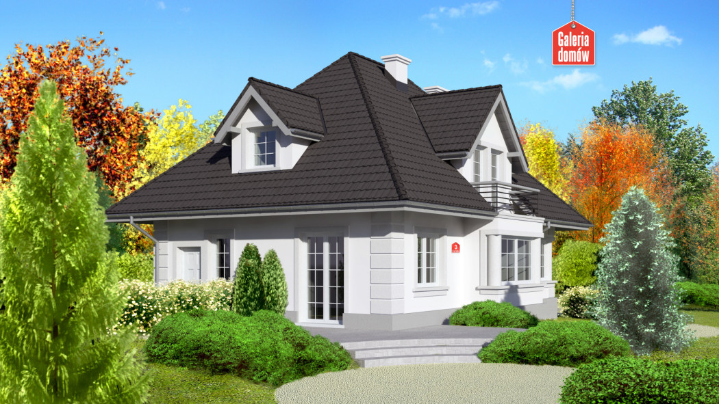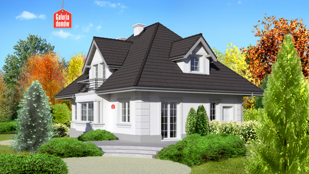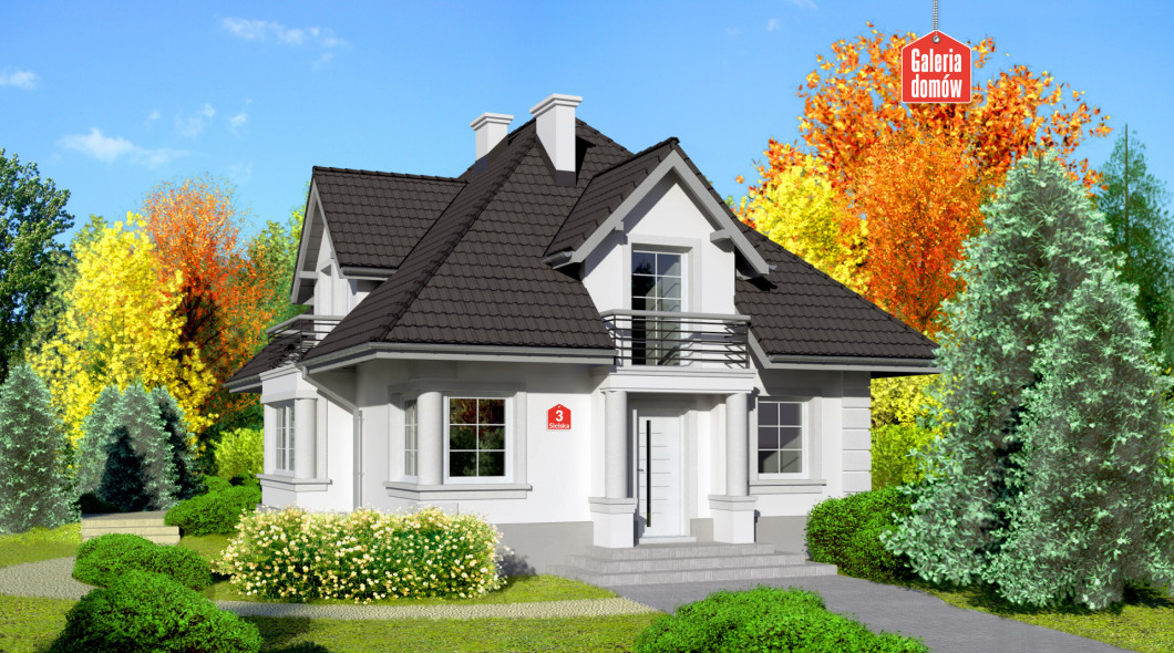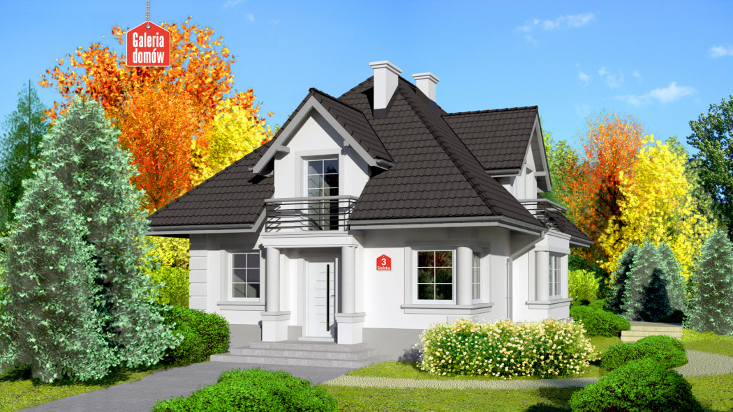 Dom przy Sielskiej 3 to pięknie zaprojektowany budynek odwołujący się do emocji bliskich niemal każdemu, kto tutaj spojrzy. Uwagę zwraca kompozycja białych ścian i ciemno-grafitowego dachu, podkreślona stylowymi dodatkami. Wyraźne linie podkreślone na rogach boniowaniem. Kolumny przy wejściu w oknie narożnym i wykuszu nadają lekkość ogólnej sylwetce domu. Żadnych zbędnych ozdób, wszystko sprawia wrażenie uporządkowanej całości i bycia na właściwym miejscu. To samo można powiedzieć o wnętrzu domu. Naprawdę czujemy się miło w dobrym klimacie tego domu.