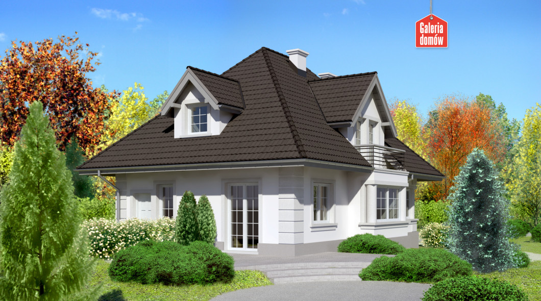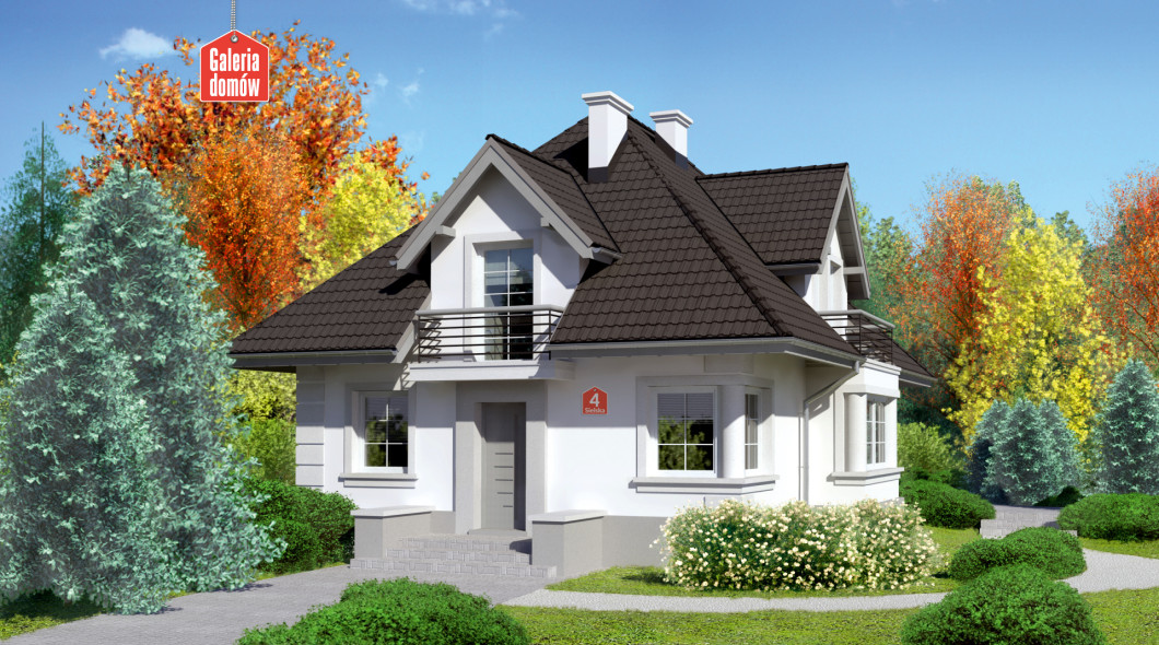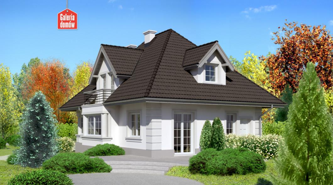Piękno zasługuje na to, by je podkreślać. Ten dom przykuwa uwagę. Harmonią ozdobnych detali, doborem kolorów i faktur. Wnętrze domu oddaje idylliczny charakter nazwy projektu. Porządek wprowadza tradycyjny podział na dwie strefy: nocną na poddaszu i dzienną na parterze. Pokój dzienny integruje mieszkańców w centralnym punkcie domu. Za dnia salon doświetlają okna wykuszu. Wieczorem ciepłymi blaskami mruga kominek. Wykorzystaj potencjał tego projektu: stwórz sobie wymarzone miejsce na ziemi.