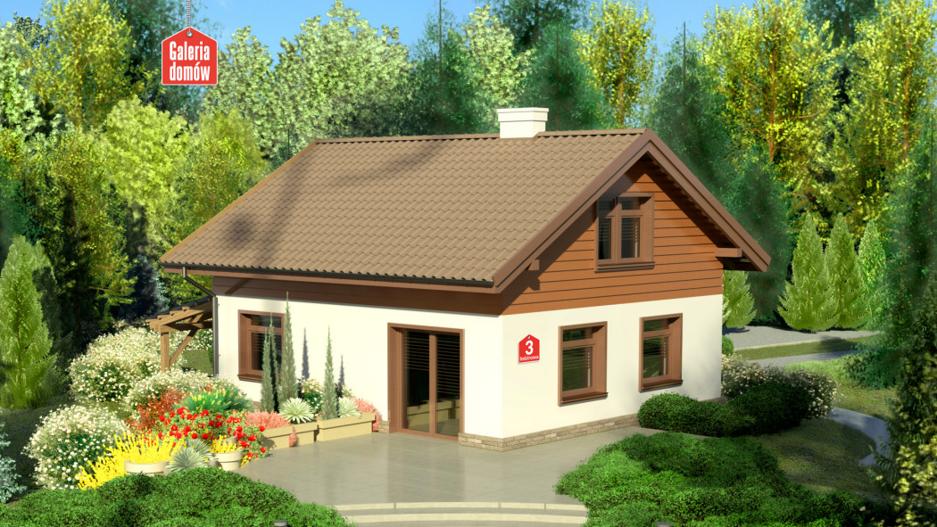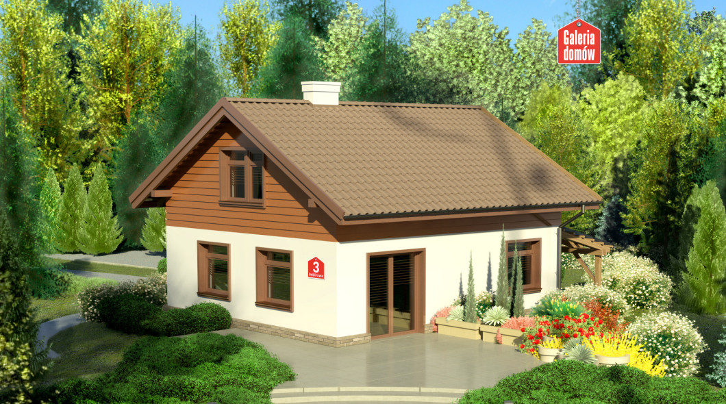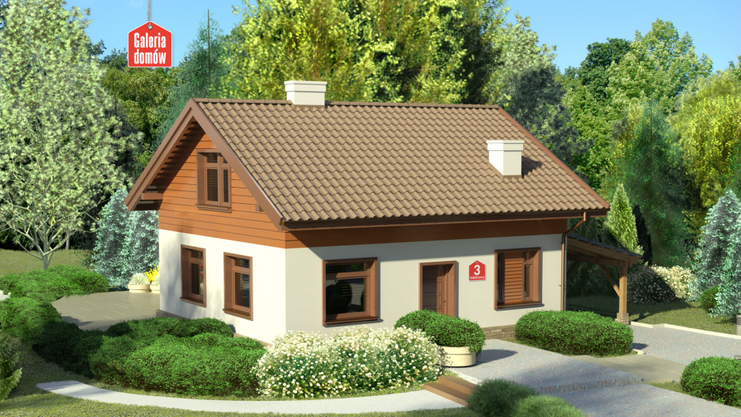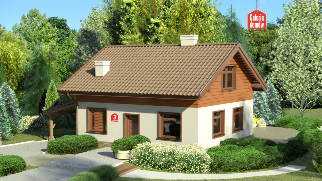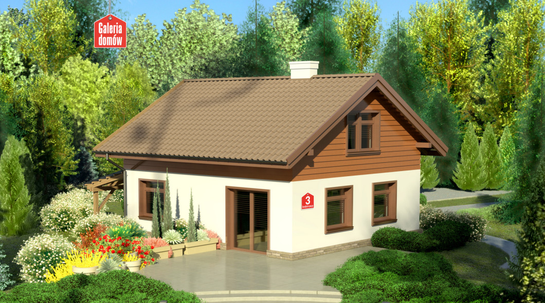 Wdzięczny, mały i ciepły Dom przy Imbirowej 3 to projekt przeznaczony na wąską działkę. Jasny kolor elewacji i drewniane okładziny na ścianach szczytowych powodują, że sprawia bardzo miłe, sielskie wrażenie. Wnętrze jest przytulne i funkcjonalne. Na parterze znajduje się pokój dzienny z kominkiem i wyjściem na taras oraz otwarta kuchnia, dodatkowy pokój i łazienka, a na poddaszu dwie sypialnie, garderoba i łazienka. To idealna propozycja dla małej rodziny ceniącej sobie komfort i oszczędność. Albo idealny wybór dla osób, które pragną zaszyć się na działce za miastem i cieszyć sobą i naturą.