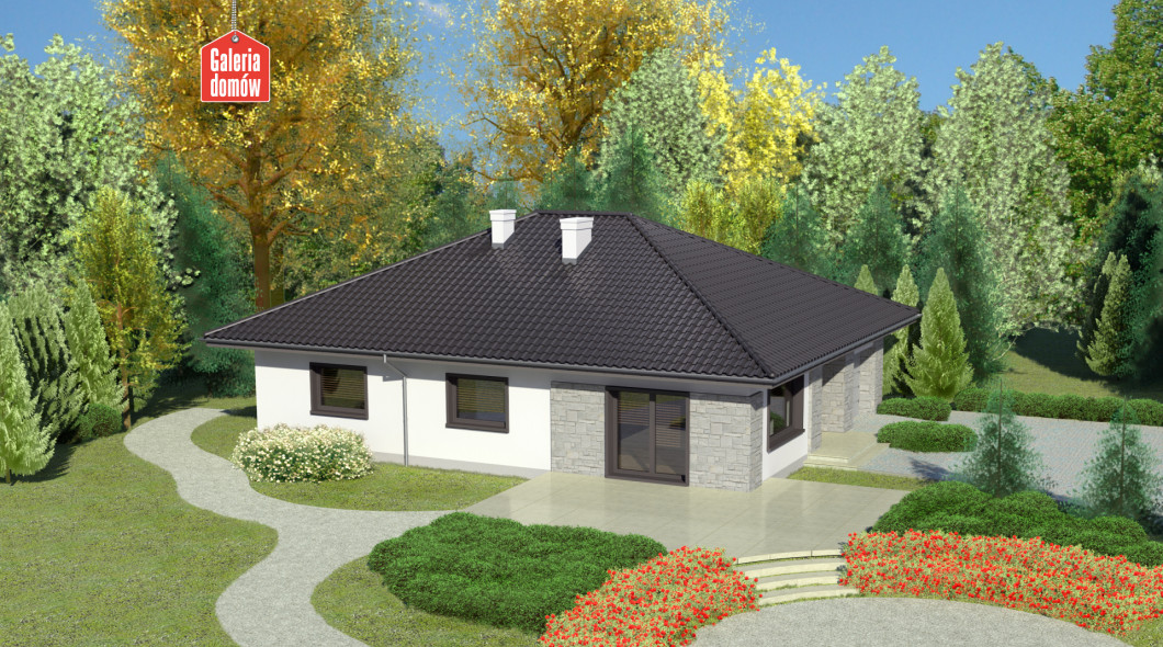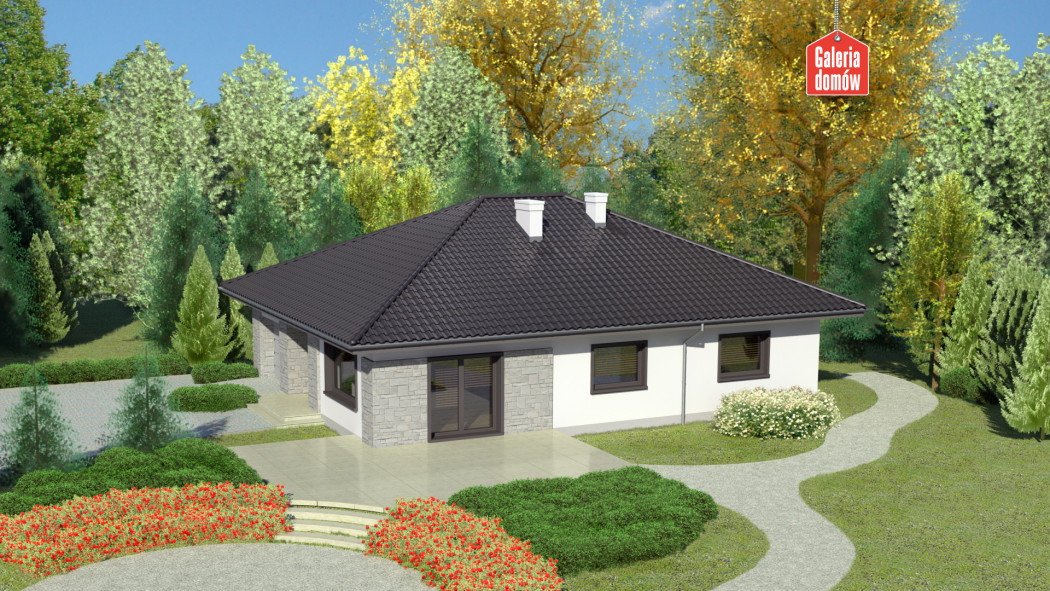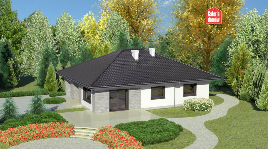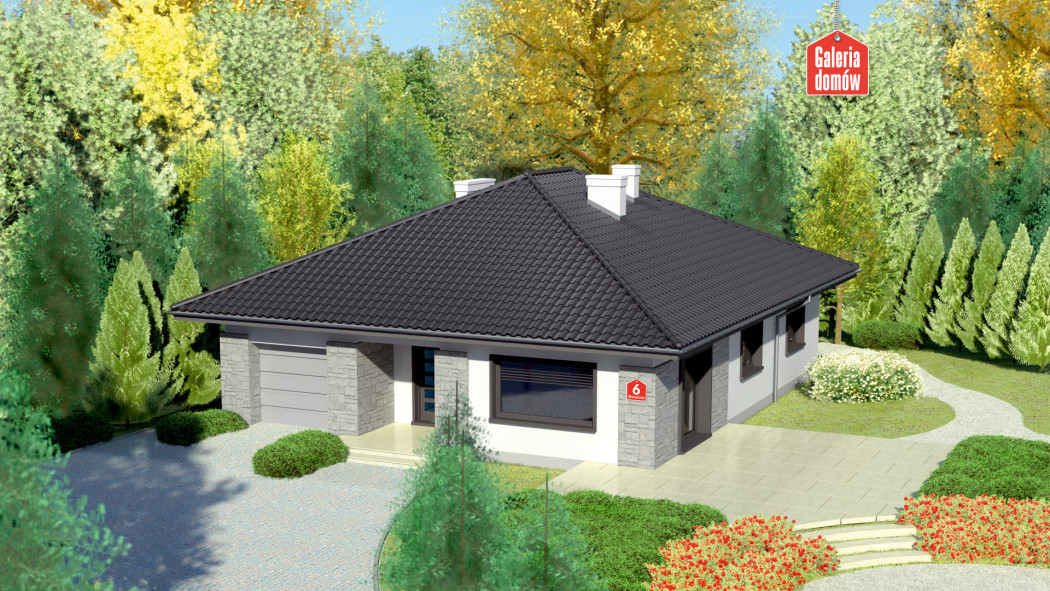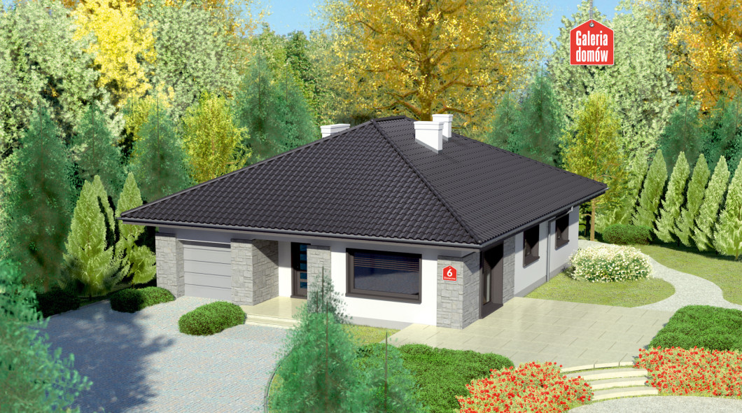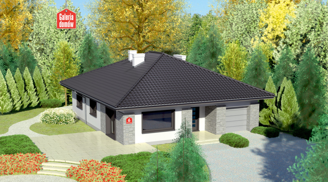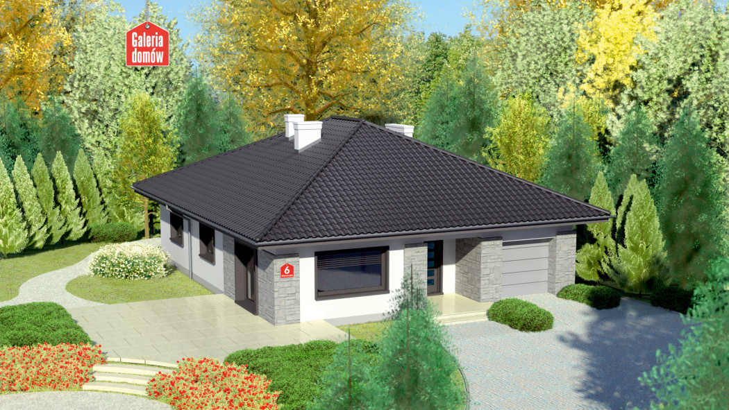 W projekcie Domu przy Słonecznej 6 architekci postawili na wysoki poziom komfortu i bezpieczeństwa. Zadbano o to by forma służyła użyteczności. Widać to już na pierwszy rzut oka. Duże przednie okno, lekko schowane wejście do domu i wygodny wjazd do garażu. Kamienne elementy elewacji dodają dyskretnego uroku. Prosta konstrukcja czterospadowego dachu. To wszystko sprawi, że poczujemy się tak samo dobrze wewnątrz, jak i na zewnątrz tego domu.