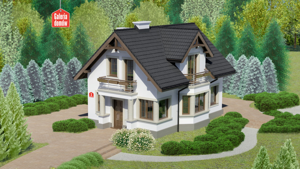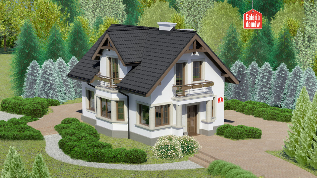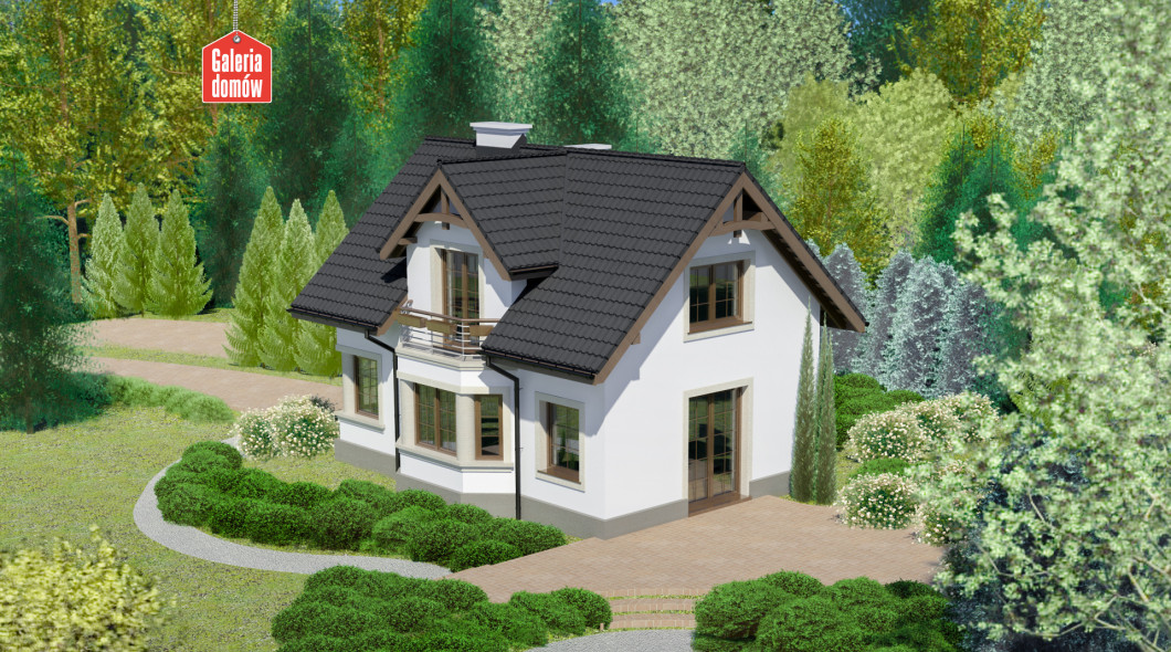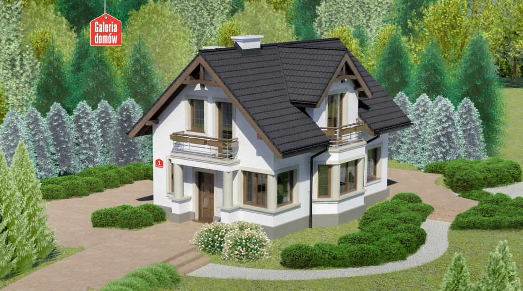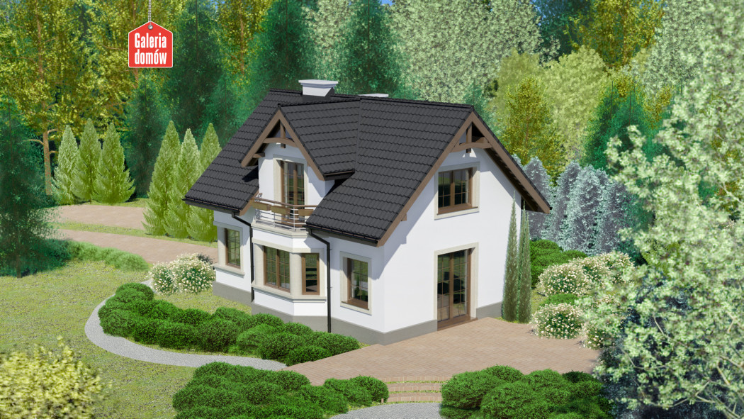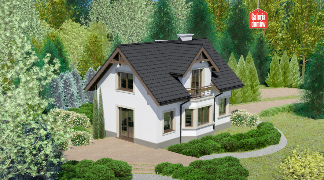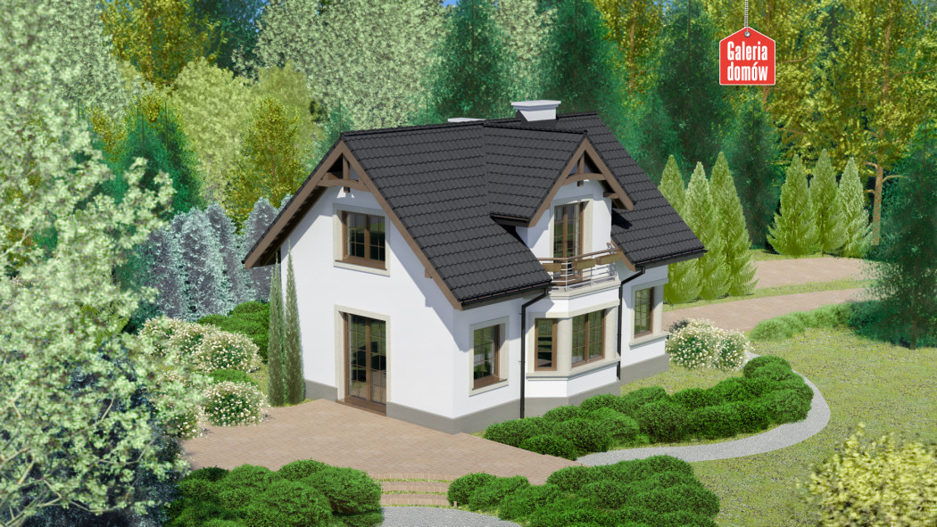 Dom przy Waniliowej to stylowy dom o klasycznej architekturze, która świetnie podkreśla jego wyjątkowy charakter. Wejście zostało zadaszone balkonem wspartym na kolumnach. Drugi balkon znajduje się nad przeszklonym wykuszem. Wnętrze rozplanowane jest bardzo funkcjonalnie. Na parterze znajduje się przestronny pokój dzienny z wyjściem do ogrodu oraz otwarta kuchnia, a na poddaszu dwie przytulne sypialnie i wspólna łazienka. To propozycja dla niewielkiej rodziny ceniącej sobie wygodę i komfort.