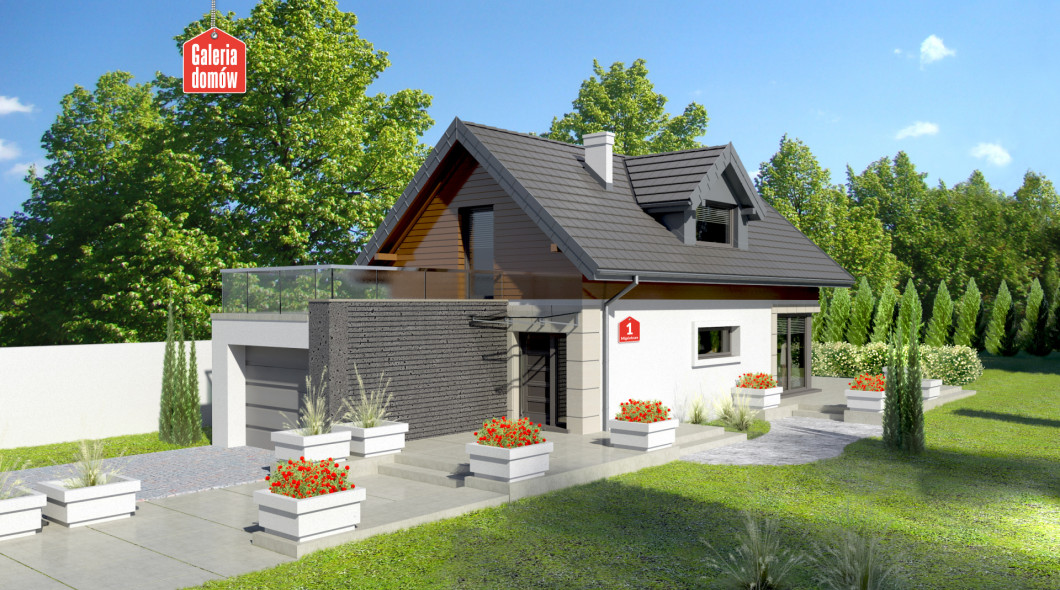 Dom przy Migdałowej to nowoczesny i funkcjonalny dom piętrowy o eleganckiej formie architektonicznej i efektownie ukształtowanej przestrzeni wewnętrznej. Dom przystosowany jest do wąskiej działki i zaprojektowany tak, aby jak najbardziej wykorzystać niewielką przestrzeń. Oryginalny taras na piętrze, miejsce na przestrzeń intymną i dla rodziny. Dom utrzymany w białobrązowej tonacji z garażem w kamieniu.