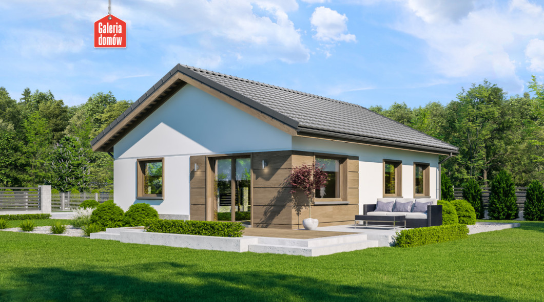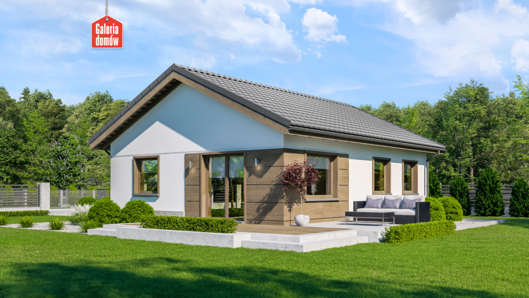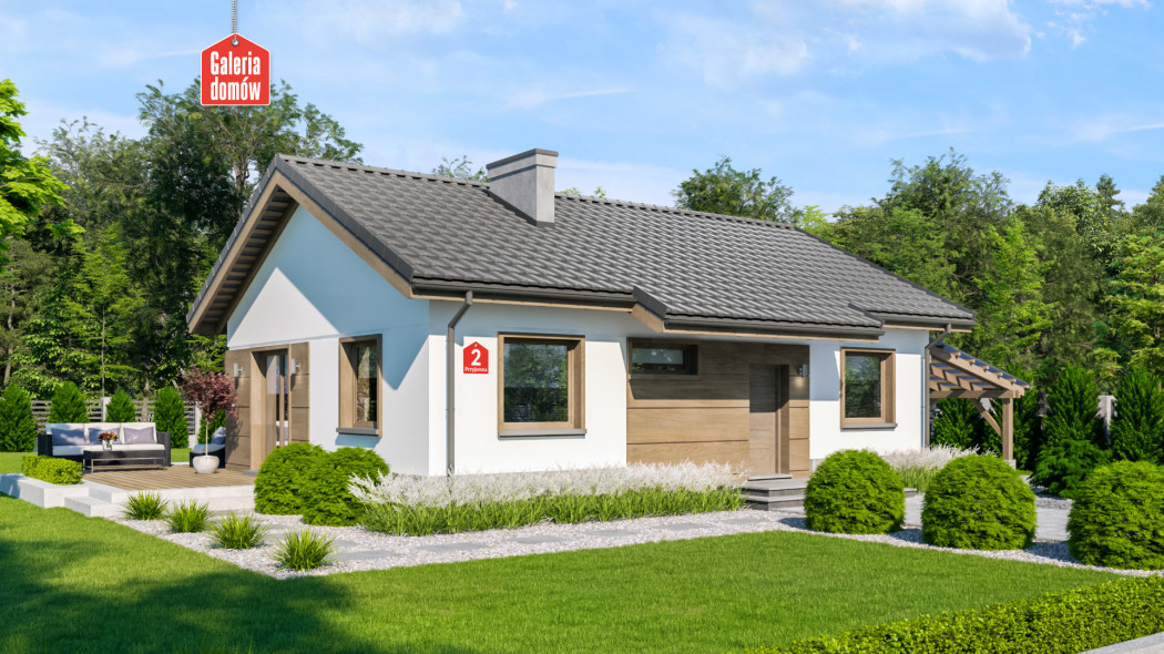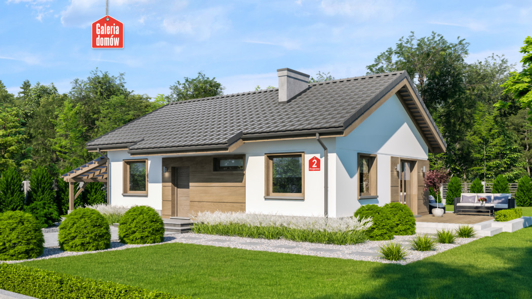 Dom przy Przyjemnej 2 to propozycja ze znanej i lubianej serii parterowych domów jednorodzinnych. Niewielki i tani w realizacji i utrzymaniu dom z wiatą garażową. Oszczędność zapewniają dwuspadowy dach i duże przeszklenia. Duży i funkcjonalny pokój dzienny z otwartą kuchnią i kominkiem. Idealna propozycja dla osób praktycznych, ceniących sprawdzone rozwiązania. Przedłużony okap dachu i elewacja w pogodnych, jasnych kolorach dopełniają całości.