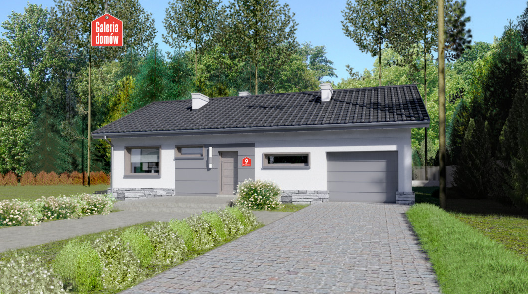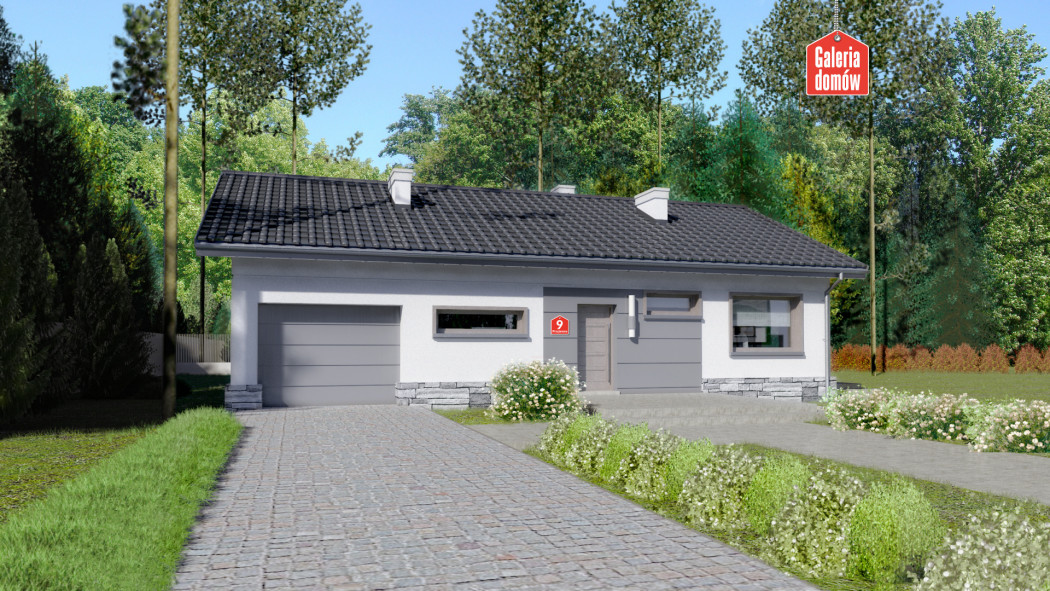 Dom przy Przyjemnej 9 bis to jednokondygnacyjny dom typu bungalow przykryty dwuspadowym dachem. Nowoczesny wygląd osiągnięto dzięki kolorystyce elementów elewacji oraz dużym przeszkleniom. Projektując wnętrze główny nacisk położono na potrzeby współczesnej rodziny. To idealna propozycja dla osób poszukujących domu ekonomicznego w codziennym użytkowaniu.Projekt dostępny również w wersji z dachem o kącie nachylenia 25°.
