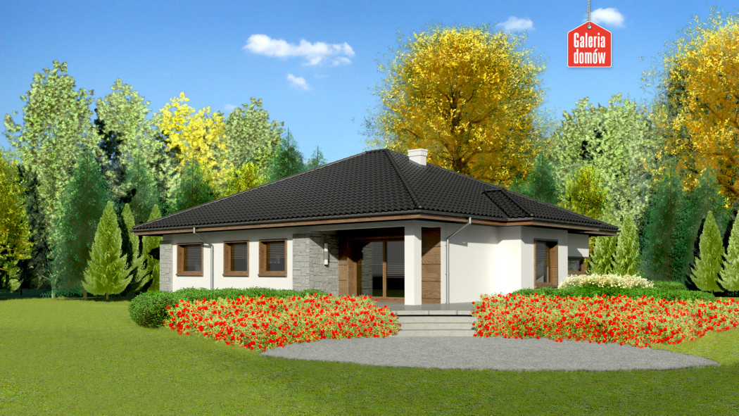 Dom przy Pastelowej 2 bis zawiera praktyczny i funkcjonalny układ pomieszczeń, rozplanowanych na jednej kondygnacji użytkowej. Wygląd zewnętrzny opiera się o kompozycję proporcjonalnych elementów w dobrze dobranym zestawie barw: ścian, drewnianych elementów wykończenia elewacji, stonowanego koloru okładziny kamiennej i ciemnego dachu.