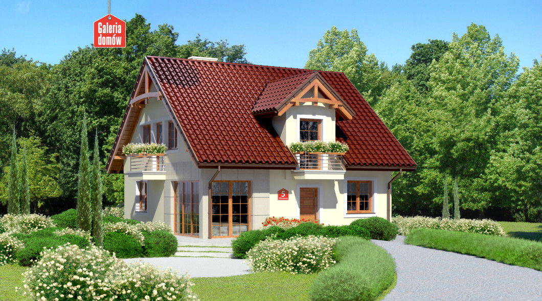 Rodzina projektów z kolekcji Dom przy Wiosennej zawiera także tradycyjne rozwiązania stylistyczne. Drewniane elementy wykończenia elewacji poprawiają odczucia związane ze statecznością i dobrym nastrojem. Dom przy Wiosennej 5 jest wariantem projektu nie zawierającym garażu co pozwoliło na redukcję kosztów budowy, ale też nie wpłynęło negatywnie na program mieszkalny. Nowoczesne wnętrze zawiera układ pomieszczeń dostosowany do lokalizacji domu na działkach z wejściem od strony: południowej, południowo-wschodniej i w odbiciu lustrzanym od południowo-zachodniej.