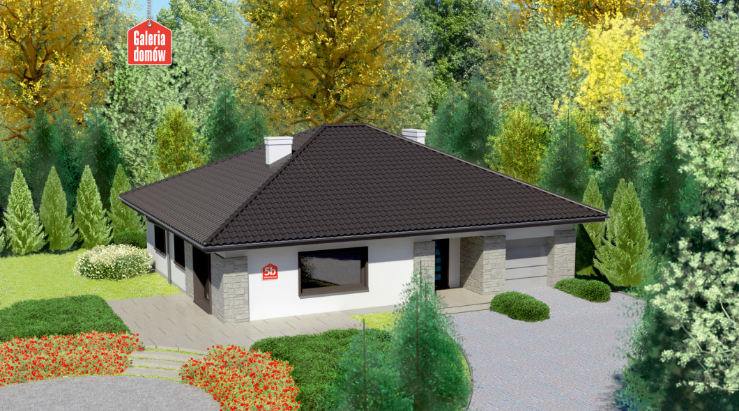Elegancja zastosowanych rozwiązań, harmonizuje z programem użytkowym i tworzy interesującą propozycję dla właścicieli działek z wjazdem od południowej strony. Dom przy Słonecznej 5 bis jest projektem dającym perspektywę zwiększenia przestrzeni mieszkalnej, którą można uzyskać adaptując poddasze. Nachylenie połaci dachu o wartości 30 stopni daje wystarczającą ilość przestrzeni na dodatkowe pomieszczenia.