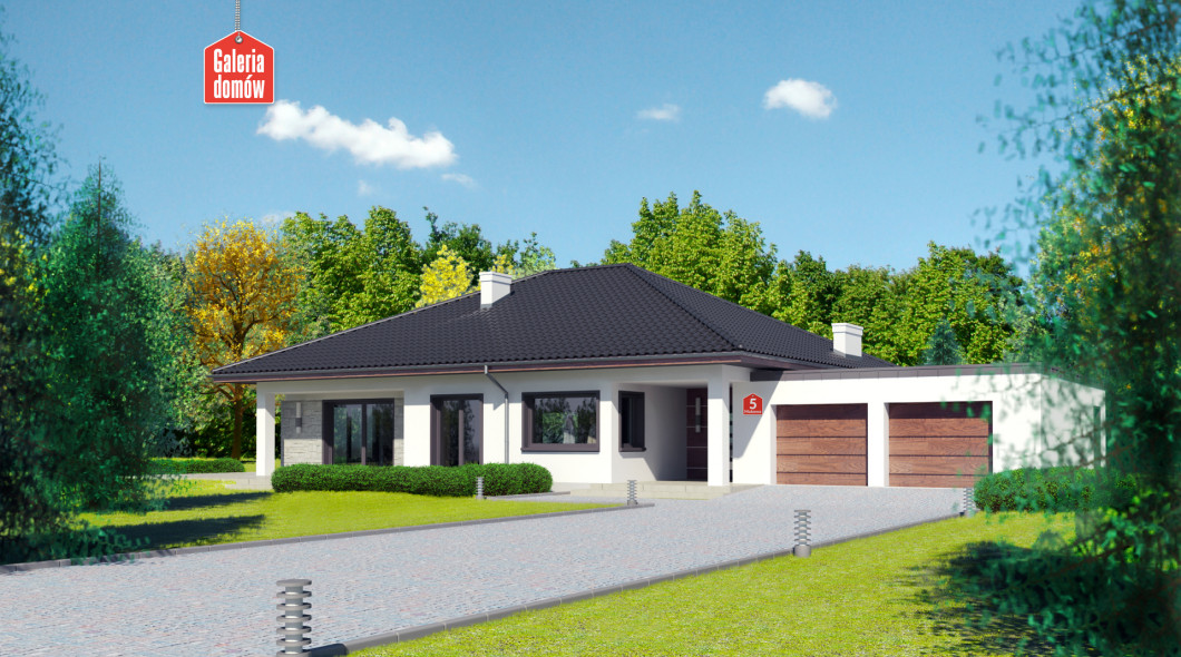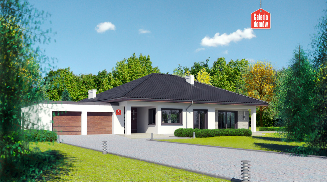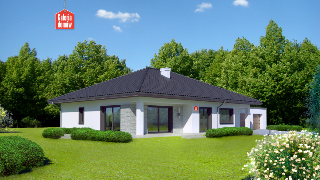 Duży, nowoczesny dom parterowy z dwustanowiskowym garażem. Najmodniejsza stylistyka, zaawansowane rozwiązania technologiczne i przemyślany układ funkcjonalny to wyznaczniki Makowej 5 bis. Na uwagę zasługuje szczególnie komfortowa sypialnia małżeńska z prywatną łazienką i garderobą oraz słoneczna, otwarta strefa pobytu dziennego. W projekcie przewidziano schody na poddasze, które przy kącie nachylenia dachu 30 stopni można śmiało zaadaptować na cele mieszkalne. Dom przy Makowej 5 bis posiada w standardzie wentylację mechaniczną z rekuperacją oraz projekt instalacji solarnej. Projekt należy do kategorii domów energooszczędnych. Doskonały wybór dla tych, którzy cenią, styl, jakość swobodę mieszkania i ducha nowoczesności.