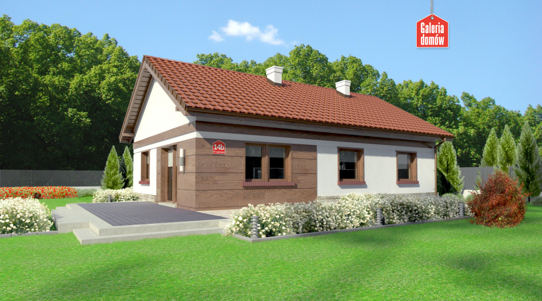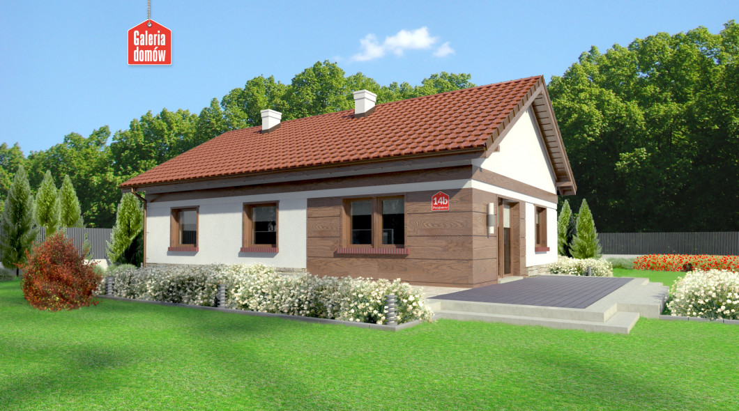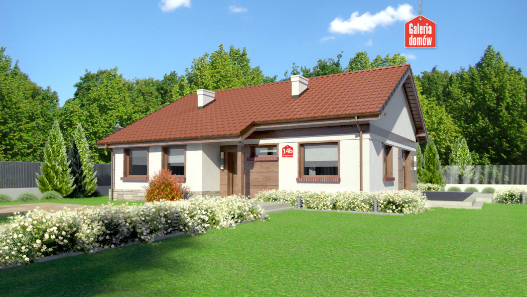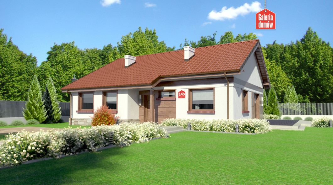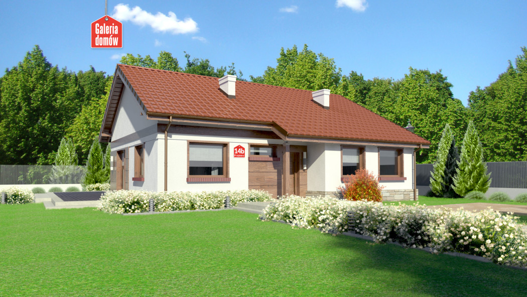 Rodzina projektów z serii Dom przy Przyjemnej powiększyła się o kolejny wariant parterowego projektu domu. Dom przy Przyjemnej 14 bis stylistycznie nawiązuje do Domu przy Przyjemnej 12 bis. Estetyka elewacji oparta jest o ten sam zestaw elementów architektonicznych oraz paletę barw. Zastosowany program funkcjonalny obejmuje układ pomieszczeń o wielkości proporcjonalnie dobranej do rozmiarów domu. Oprócz pomieszczeń przeznaczonych na strefę pobytu dziennego - pokoju dziennego, kuchni i hallu, w części nocnej znajdują się trzy sypialnie i wygodna łazienka z oknem. Pomieszczenie kotłowni w przypadku zastosowania ogrzewania gazowego będzie mogło funkcjonować także jako pralnia. Projekt nie posiada wbudowanego garażu.