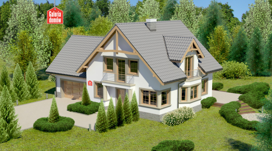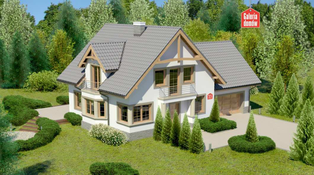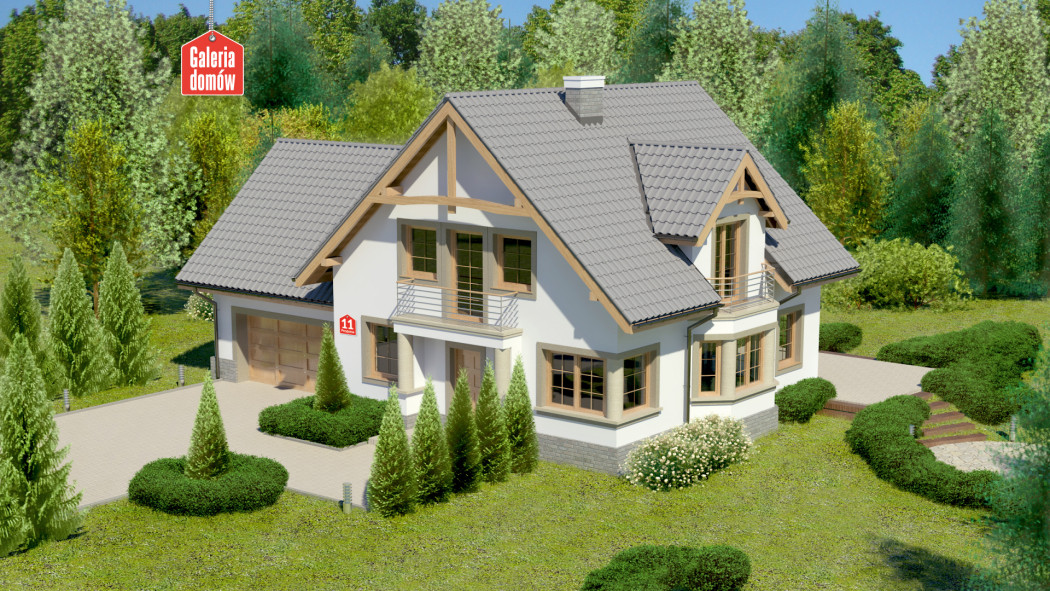 Dom przy Przyjaznej 11 jest podpiwniczonym wariantem projektu Dom przy Przyjaznej 8. Wprowadzenie podpiwniczenia wiąże się z uzyskaniem znacznej przestrzeni dodatkowej, która jest przeznaczona na kotłownię, pralnię z suszarnią oraz obszerne pomieszczenie gospodarcze. Zwiększa to w radykalny sposób możliwości związane z wykorzystaniem i przeznaczeniem dostępnych pomieszczeń. Zyskuje na tym wygoda i funkcjonalność kondygnacji nadziemnych. Projekt prezentowany jest w zmienionej, jasnej kolorystyce o wyraźnym rysunku elementów architektonicznych.