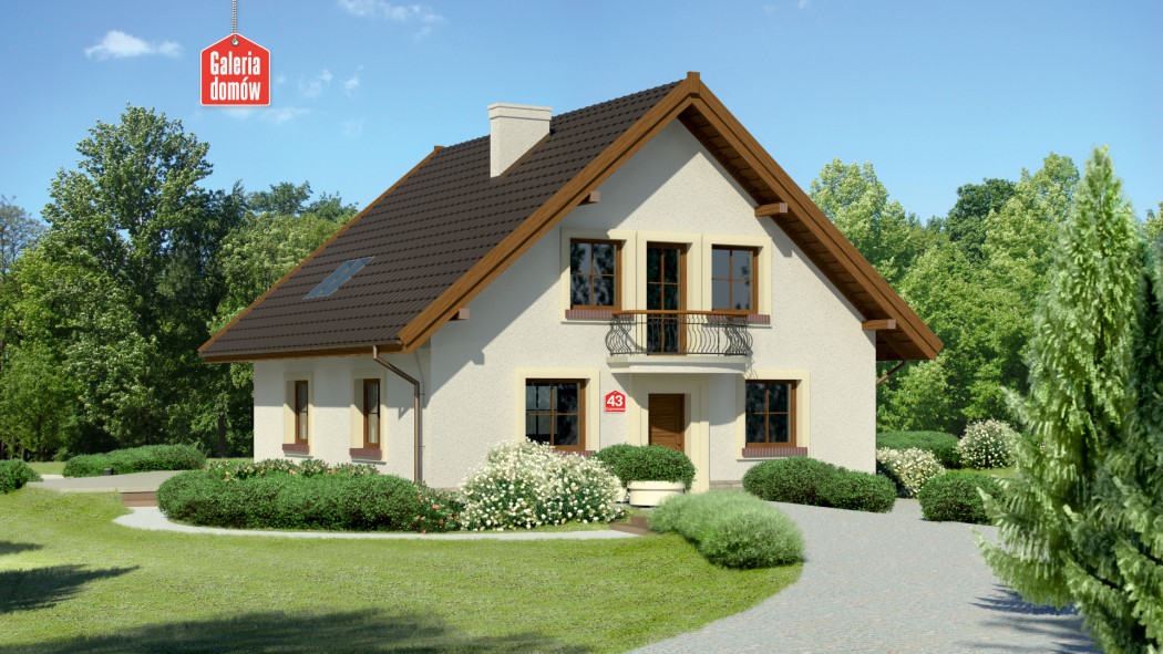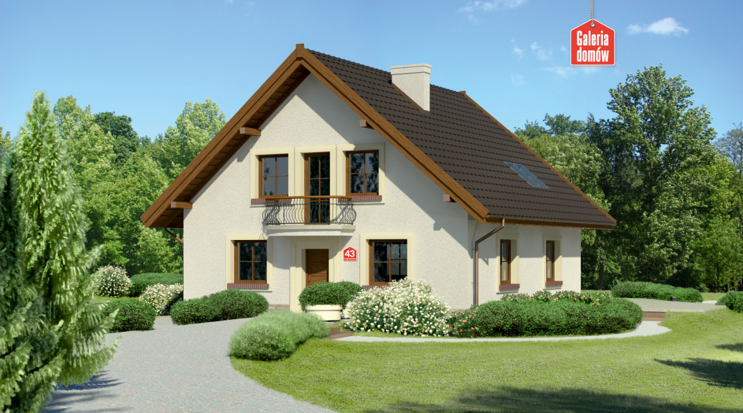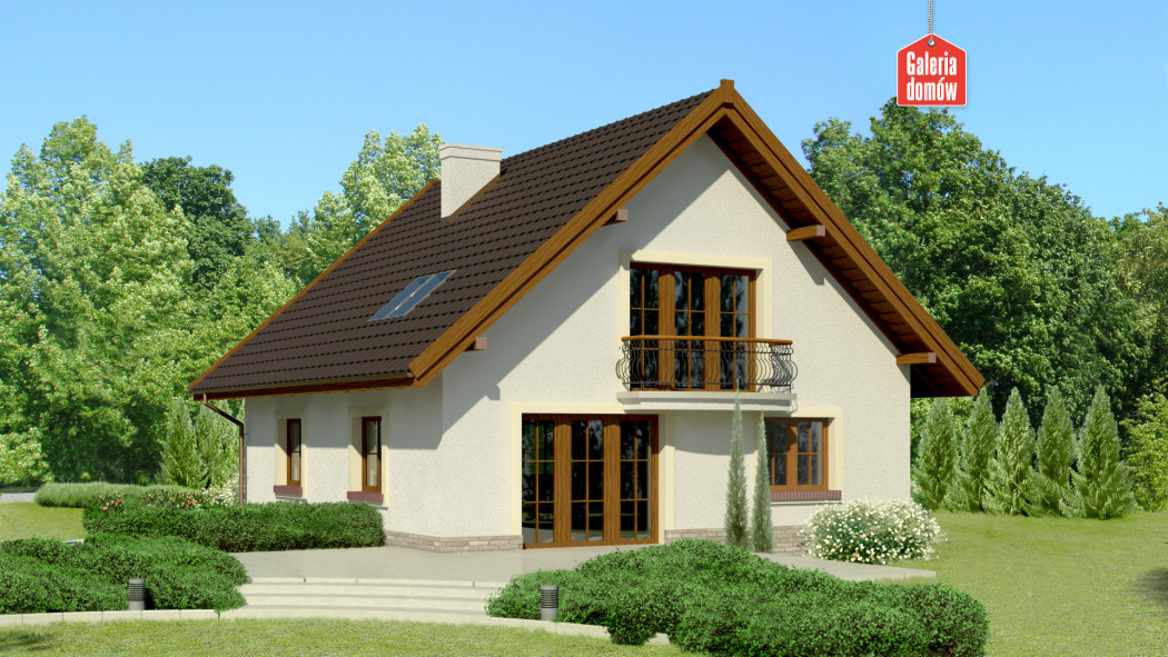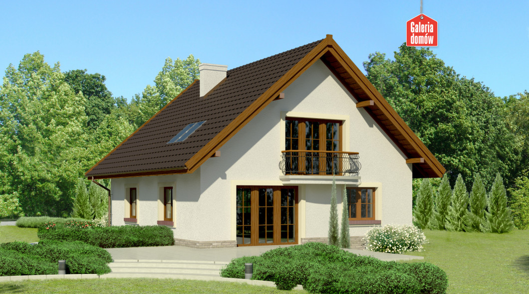 Jednoprzestrzenny parter, duże przeszklenia i ograniczona do minimum, funkcjonalna komunikacja. Dodatkowy pokój na parterze, któremu można nadać prawie dowolną funkcję. Przestronne trzy pokoje na poddaszu doświetlają duże okna balkonowe i mniejsze, umieszczone w połaci dachu. Ergonomiczny kształt domu - mimo jego sporego rozmiaru - ograniczy koszty budowy i użytkowania. Z zewnątrz prezentuje się nie tylko okazale, ale i solidnie. Uwagę zwracają kute poręcze balkonów, tradycyjny dobór kolorów (jasne ściany i ciemnobrązowy dach), drewniana, szlachetna stolarka okienna i eleganckie obramowanie okien.