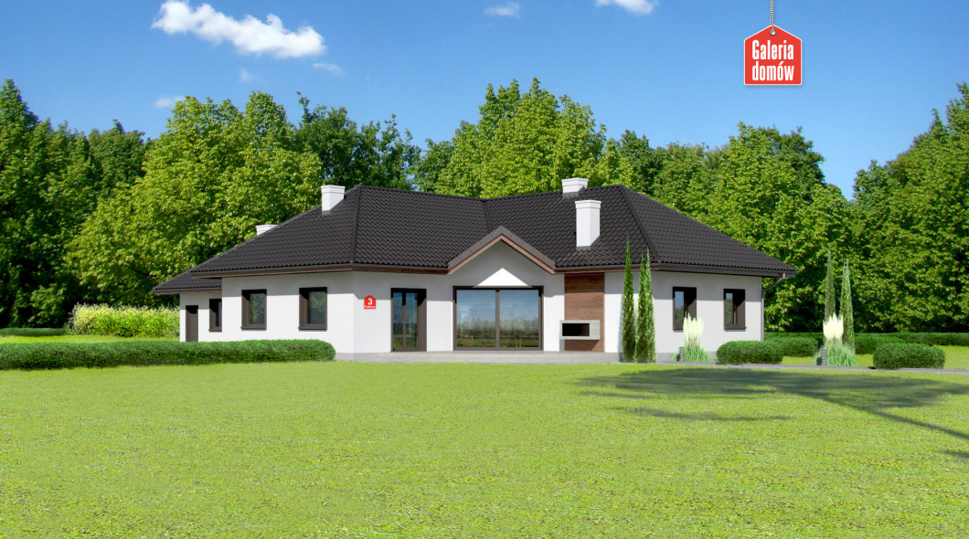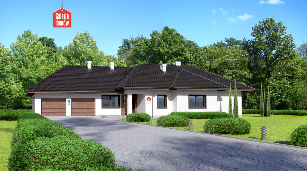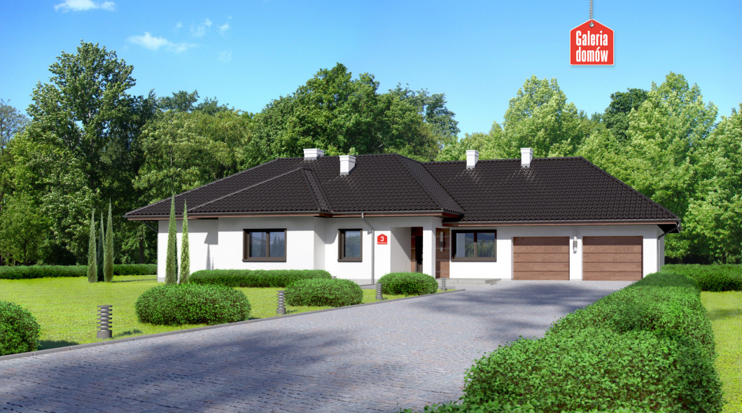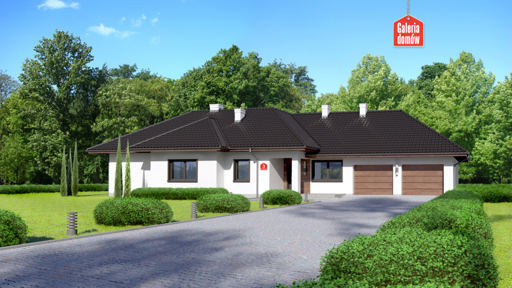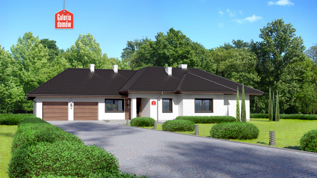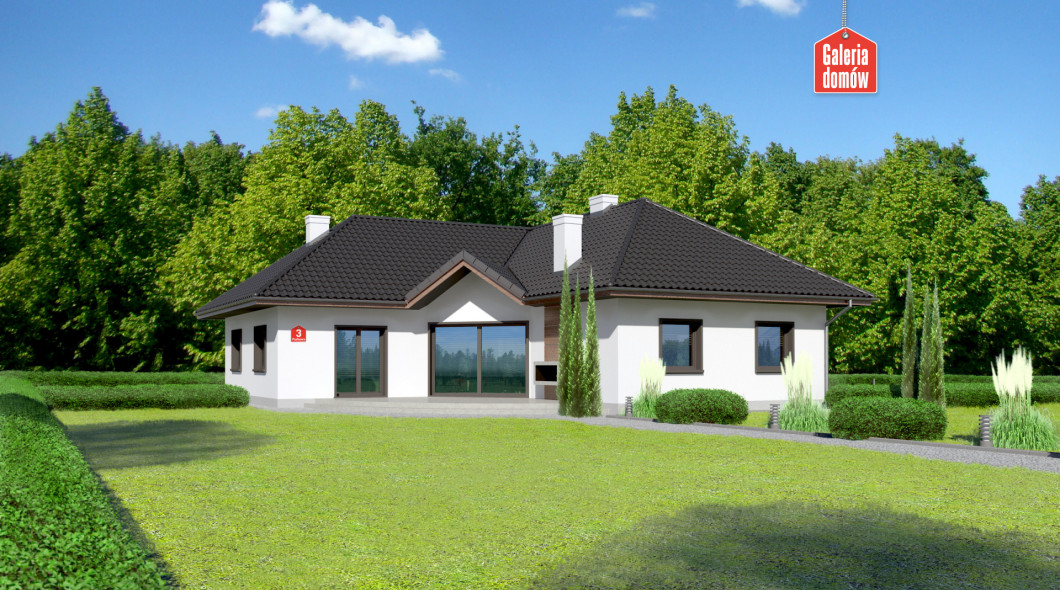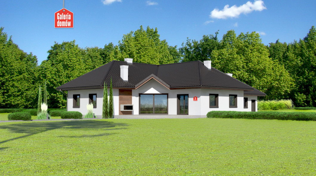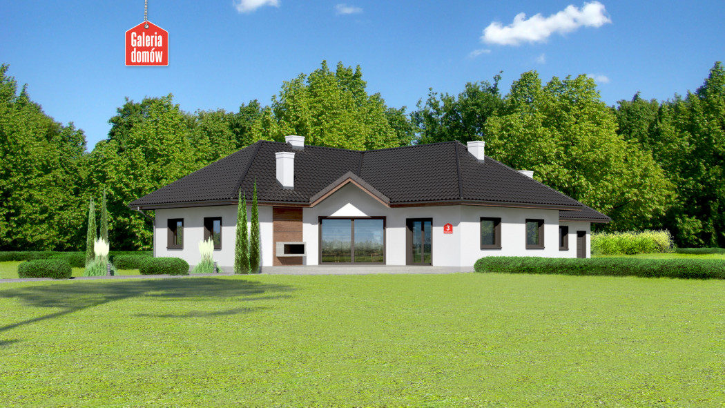 Parterowa willa rodzinna o powierzchni użytkowej 181,05 m². Układ funkcjonalny zawiera cztery niezależne pokoje, elegancki salon, ergonomiczną kuchnię i podwójny garaż. Projekt należy do grupy domów energooszczędnych. Dokumentacja zawiera schemat instalacji mechanicznej z rekuperacją oraz system solarny. Ogrzewanie gazowe sprawia, iż dom nie tylko dba o oszczędność energii, ale jest również ekologiczny. Rozkład pomieszczeń zaplanowano tak, aby każdy z domowników miał komfortowy dostęp zarówno do części wspólnych, jak i łazienki. Zaplecze gospodarcze tego okazałego domu stanowi duża kotłownia, pralnia, garderoba i podwójny garaż. Parkowa 3 posiada 2 tarasy oraz zewnętrzny grill barbecue. Na uwagę zasługuje tu apartament rodziców, z prywatną łazienką i garderobą. Ulokowany w zaciszu domu daje poczucie intymności, ale gwarantuje również doskonałą komunikację z całym domem. Stylistyka wykończenia zewnętrznego, oparta na połączeniu czerni i bieli nawiązuje do najnowszych trendów w projektowaniu. Idealna parterowa opcja dla 5-6 osobowej rodziny.